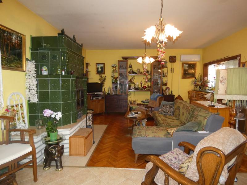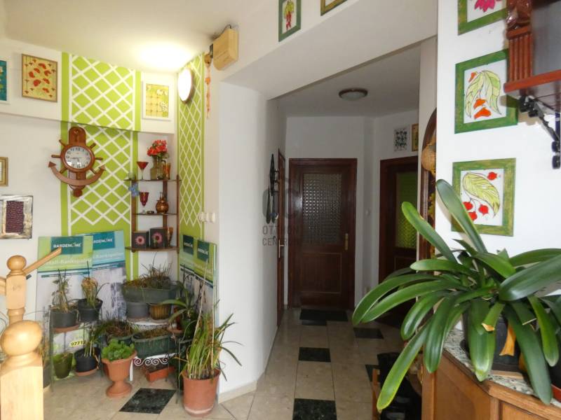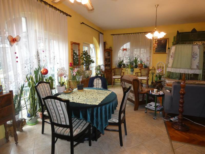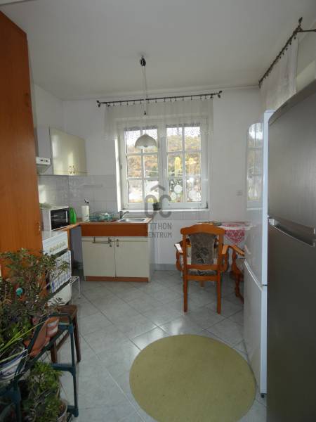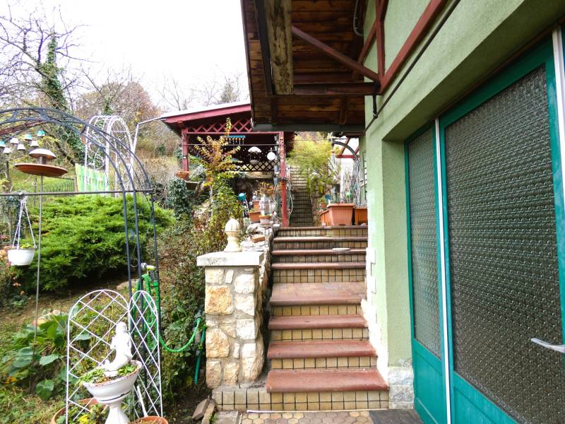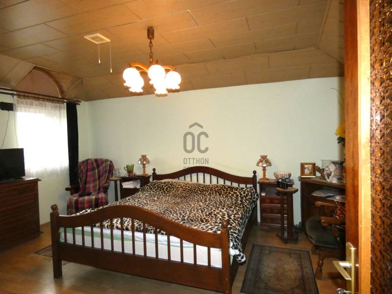 Pécs, ürögi rész elején eladó egy három szintes 2 generáció együttélésére alkalmas családi ház. A ház földszinti részén helyezkedik el a ház gépészeti berendezése, kamra, boltíves pince, egy beállásos garázs és egy vizes blokk zuhanyzóval. A felső szinten lévő lakások megközelíthetők a belső lépcsőházon keresztül vagy a külső lépcsősoron is. Az első szinten lévő lakás konyha, étkező kis nappali, hálószoba kialakítású. Itt kapott még helyet egy vendégszoba és két fürdőszoba és mosdó is. Mindkét szobához kapcsolódik terasz, amelyről szép kilátás nyílik a szembe lévő erdős részre. A közös előtérből egy lépcső vezet fel a 2. szinten lévő lakásba. Itt egy hatalmas nappaliba léphetünk be, amelynek benapozottságáról a nagy ablakok gondoskodnak. A nappaliban lévő kandalló nem csak hangulatot, de kellemes meleget is ad. A konyha átadó ablakon keresztül kapcsolódik az étkezőhöz. Félemeleti részen helyezkedik el a két hálószoba( egyik még befejezésre vár) gardrób, fürdőszoba és mosdó. A ház gépészete kiváló, fűtése gázcirkó, a hőleadás padló és falfűtéssel történik. 6 kw-os napelem, napkollektor, központi porszívó szolgálja a lakók kényelmét. A telken fúrt kút is található. A telek teraszos kialakítású, pergola - kiülő is található. A telek utcafronti részén több gépkocsi beállására is van lehetőség. |