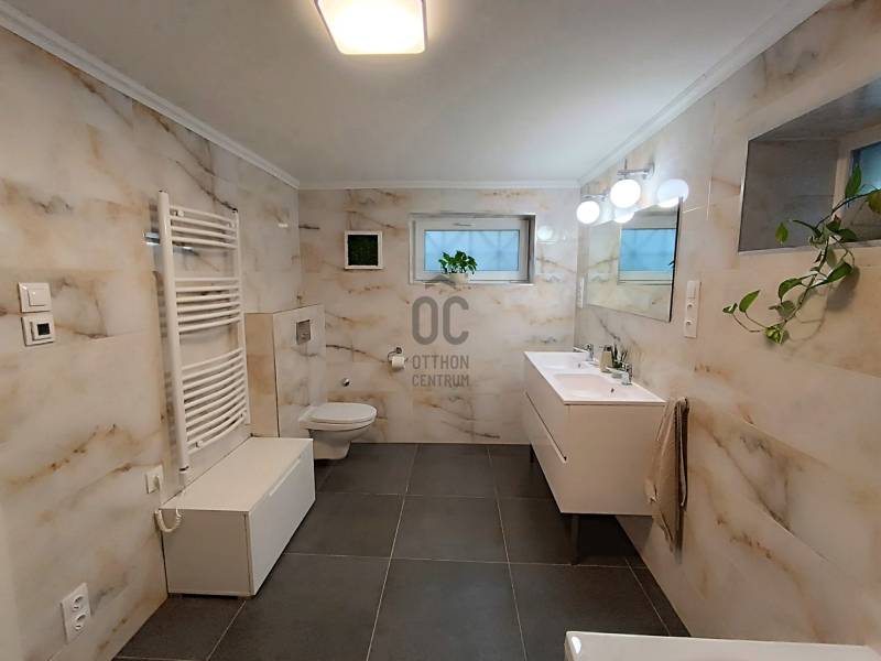 Ezt a gondosan karbantartott, felújított ingatlant látnod kell! Ha csendes, természetközeli környezetre vágysz, mégis Budapest közelében maradnál, akkor ez az ingatlan remek választás lehet.A telek és a külső tér:-769 m² gondozott kert rengeteg dísznövénnyel-Automata öntözőrendszer-15 m²-es, vörösfenyőből készült kerti kiülő-Elektromos kapu, fedett kocsibeálló-Tüzifatároló, fészer-Utcán ingyenes parkolásKözművek:-Villany: 3×20A-Víz: bekötve-Szennyvíz: emésztő-Csatorna az utca egy részén már rendelkezésre áll, bővítése folyamatbanAz épület és a műszaki állapot:-Homlokzat és padlástér szigetelt-Korszerű elektromos hőtárolós kályhák (éjszakai áramról)-Hűtő-fűtő klíma-Fürdőben padlófűtés + törölközőszárító-Konyhában és étkezőben elektromos panel + modern fatüzelésű hőtárolós kályha-2021-ben cserélt, 3 rétegű műanyag nyílászárók-Teljes gépészeti felújítás: új villanybojler, vezetékek, fűtésrendszer, klíma, beépített konyhai gépekKülönlegesség:Az emeleten található egy fűthető, hangulatos télikert, ahonnan gyönyörű panoráma tárul elénk!Helyiségek – 90 m² nettó lakótérFöldszint:-Fedett terasz (9 m²)-Konyha + étkező (18 m²)-Spájz (3,65 m²)-Folyosó + lépcső (8,35 m²)-Mosókonyha (3 m²)-Fürdő + WC (9,4 m²)Emelet:-Hálószoba (16,8 m²)-Nappali (12,8 m²)-Lépcsőforduló (5,5 m²)-Télikert (11,3 m²)Hívjon bizalommal a részletekért! |
