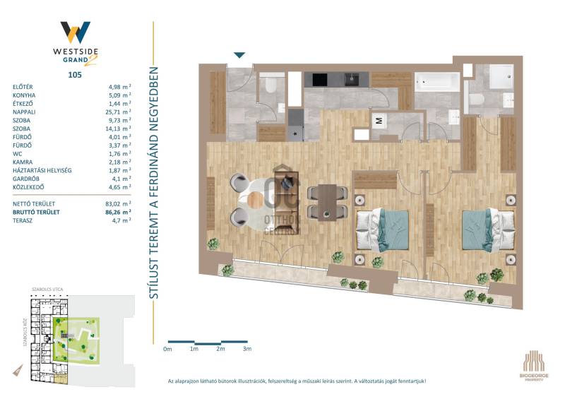 Projekt bemutatásaA projektrőlA Westside Grand I-II. a Biggeorge Property Westside fejlesztés sorozatának - a Westside Residence és a Westside Gardent követően - legújabb tagja.LokációBudapest egyik leggyorsabban fejlődő kerületének központi területén, a XIII. kerületben, a Városligettől és a megújuló Nyugati pályaudvartól sétatávolságra épül. A Nyugati pályaudvar környéke az elkövetkezendő években szinte teljesen megújul, a XIII. kerületben elhelyezkedő Szabolcs utcában, illetve közvetlen környezetében számos új építésű ingatlan épült, melyek jelentős értéknövekedést kínálnak a környéken ingatlant vásárlóknak. A több ütemben megvalósuló lakóingatlanfejlesztések hatalmas zöld parkot ölelnek körül, így a lakók akár az erkélyen ülve is élvezhetik a csendet, nyugalmat és zöld környezetet egy központi, belvárosi környezetben is. |