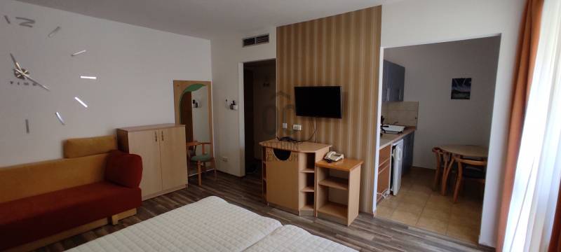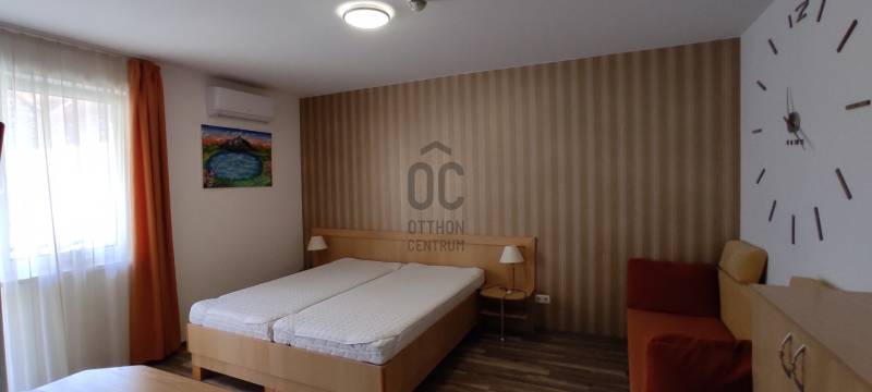 A Club MenDan Apartmanházban 2. emeleti 1 szobás klimatizált apartman eladó.A keleti fekvésű ingatlan a télen-nyáron használható medencetérre néző erkéllyel rendelkezik.A kényelmes méretű szoba akár 4 fő elhelyezését is lehetővé teszi. A wellness részleg nagyméretű fűtött medencéje (nyáron nyitott) és finn szaunája korlátlanul használható a tulajdonosok ill. vendégeik részére.A közös költség tartalmazza az ingatlan fűtését-hűtését, az internet szolgáltatást, 0-24 órás portaszolgálatot, lakásonként 1 db parkolóhelyet a sorompóval zárt udvaron, a wellness és a közös helyiségek takarítását és felújítási alapot.Az apartmanház abszolút központi elhelyezkedésű, 100 méteren belül minden szolgáltatás elérhető. (strandfürdő, Karos Korzó, posta, éttermek, kisbolt, buszpályaudvar)Az ingatlan akár saját nyaralónak, akár kiadásra is tökéletesen alkalmas, távolról is üzemeltethető.A zalakarosi gyógy és élményfürdő minden évszakban nagyszerű szórakozást, pihenést nyújt kicsiknek és nagyoknak egyaránt.Zalakaros ideális hely a környék felfedezésére, Keszthely, Hévíz, a Balaton 30 km-re, Nagykanizsa 16 km-re található.Zalakaroson rengeteg szórakoztató program elérhető a családok, párok részére.Hívjon bizalommal, egyeztetés alapján rugalmasan megtekinthető ez a remek ingatlan. |
