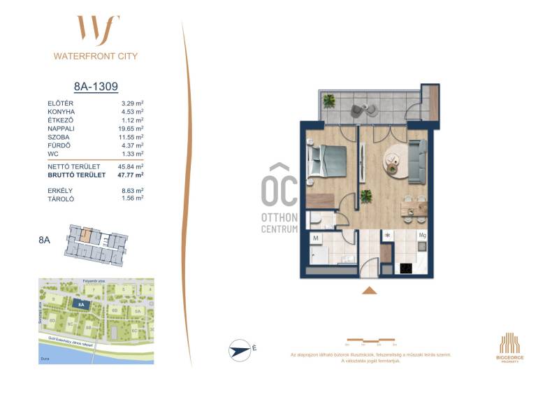 Projekt bemutatásaA projektrőlA Waterfront City egy új, modern városnegyed a 3. kerületben, ahol a természet közelsége és a városi kényelem tökéletes egyensúlyban van. A Duna-part közvetlen szomszédságában elhelyezkedő fejlesztés különleges atmoszférát kínál: a sétányt új épületek határolják, üzletekkel, kávézókkal és szolgáltatásokkal, amelyek élhető közösségi teret teremtenek.A 13 emeletes lakóépületből lenyűgöző örökpanoráma nyílik a budai hegyekre és a folyóra, a tágas teraszok pedig ideálisak a pihenéshez vagy a baráti összejövetelekhez. A zöldtetők, parkosított terek és fenntartható megoldások – mint az energiatakarékos rendszerek és okos otthon funkciók – mind hozzájárulnak a modern, környezettudatos életstílushoz.Látogass el értékesítési irodánkba, és tekintsd meg a városnegyed makettjét személyesen! Ismerd meg, milyen lesz az élet Budapest egyik legizgalmasabb új fejlesztésében!Óbuda szívébenKépzeld el, ahogy egy napsütéses délelőttön Óbuda szívében sétálsz, a Duna közelsége frissítően hat rád, miközben a Folyamőr utca, a Miklós tér és a Bogdáni út által határolt, öt hektáros területre érsz. A levegőben ott van a város történelme, mégis minden részletében a jövő hívogat.A 50 000 négyzetméteres területen egy hangulatos sétány vezet végig, amely egyenesen az óbudai Fő térre visz – mindössze 600 méterre. Ez a sétány nem csupán összeköt, hanem élményt nyújt: a Kolosy térről induló Óbudai Promenád részeként a város egyik legélhetőbb, legpezsgőbb szakaszán haladsz végig. És ha biciklivel érkeznél? A nemzetközi kerékpárút is itt halad el, Szentendre felé vezetve.Az 5. ütemben épülő 149 lakás mindegyike egyedi hangulatot kínál. Ahogy belépsz egy-egy otthonba, a hatalmas üvegfelületeken át beáradó fény és a tágas, szellős terek azonnal magukkal ragadnak. A kilátás? A Kaszap István park zöldje nyújt békét, míg a felsőbb emeletekről a Budai-hegység örökpanorámája tárul eléd – minden nap egy új festmény az ablakodban.A 6. ütemben 316 modern lakás épül, tágas teraszokkal és lenyűgöző kilátással a Dunára és a budai hegyekre. A lakók kényelmét őrszolgálat, kamerarendszer, mélygarázs, vendéglátóhelyek, belső park, játszótér és E-autó töltők szolgálják. Ez a projekt utolsó üteme, amely még közvetlen Duna-parti kapcsolattal rendelkezik.
