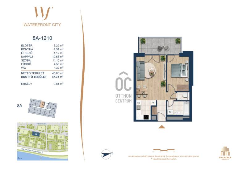 Projekt bemutatásaA projektrőlA Waterfront City egy új, modern városnegyed a 3. kerületben, ahol a természet közelsége és a városi kényelem tökéletes egyensúlyban van. A Duna-part közvetlen szomszédságában elhelyezkedő fejlesztés különleges atmoszférát kínál: a sétányt új épületek határolják, üzletekkel, kávézókkal és szolgáltatásokkal, amelyek élhető közösségi teret teremtenek.A 13 emeletes lakóépületből lenyűgöző örökpanoráma nyílik a budai hegyekre és a folyóra, a tágas teraszok pedig ideálisak a pihenéshez vagy a baráti összejövetelekhez. A zöldtetők, parkosított terek és fenntartható megoldások – mint az energiatakarékos rendszerek és okos otthon funkciók – mind hozzájárulnak a modern, környezettudatos életstílushoz.Látogass el értékesítési irodánkba, és tekintsd meg a városnegyed makettjét személyesen! Ismerd meg, milyen lesz az élet Budapest egyik legizgalmasabb új fejlesztésében!Óbuda szívébenKépzeld el, ahogy egy napsütéses délelőttön Óbuda szívében sétálsz, a Duna közelsége frissítően hat rád, miközben a Folyamőr utca, a Miklós tér és a Bogdáni út által határolt, öt hektáros területre érsz. A levegőben ott van a város történelme, mégis minden részletében a jövő hívogat.A 50 000 négyzetméteres területen egy hangulatos sétány vezet végig, amely egyenesen az óbudai Fő térre visz – mindössze 600 méterre. Ez a sétány nem csupán összeköt, hanem élményt nyújt: a Kolosy térről induló Óbudai Promenád részeként a város egyik legélhetőbb, legpezsgőbb szakaszán haladsz végig. És ha biciklivel érkeznél? A nemzetközi kerékpárút is itt halad el, Szentendre felé vezetve.Az 5. ütemben épülő 149 lakás mindegyike egyedi hangulatot kínál. Ahogy belépsz egy-egy otthonba, a hatalmas üvegfelületeken át beáradó fény és a tágas, szellős terek azonnal magukkal ragadnak. A kilátás? A Kaszap István park zöldje nyújt békét, míg a felsőbb emeletekről a Budai-hegység örökpanorámája tárul eléd – minden nap egy új festmény az ablakodban.A 6. ütemben 316 modern lakás épül, tágas teraszokkal és lenyűgöző kilátással a Dunára és a budai hegyekre. A lakók kényelmét őrszolgálat, kamerarendszer, mélygarázs, vendéglátóhelyek, belső park, játszótér és E-autó töltők szolgálják. Ez a projekt utolsó üteme, amely még közvetlen Duna-parti kapcsolattal rendelkezik.