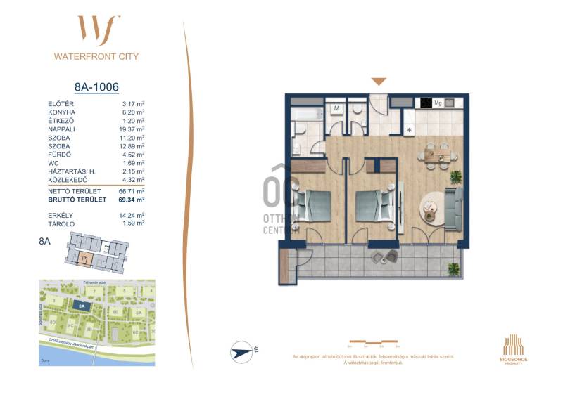 Projekt bemutatásaA projektrőlA Waterfront City egy új, modern városnegyed a 3. kerületben, ahol a természet közelsége és a városi kényelem tökéletes egyensúlyban van. A Duna-part közvetlen szomszédságában elhelyezkedő fejlesztés különleges atmoszférát kínál: a sétányt új épületek határolják, üzletekkel, kávézókkal és szolgáltatásokkal, amelyek élhető közösségi teret teremtenek.A 13 emeletes lakóépületből lenyűgöző örökpanoráma nyílik a budai hegyekre és a folyóra, a tágas teraszok pedig ideálisak a pihenéshez vagy a baráti összejövetelekhez. A zöldtetők, parkosított terek és fenntartható megoldások – mint az energiatakarékos rendszerek és okos otthon funkciók – mind hozzájárulnak a modern, környezettudatos életstílushoz.Látogass el értékesítési irodánkba, és tekintsd meg a városnegyed makettjét személyesen! Ismerd meg, milyen lesz az élet Budapest egyik legizgalmasabb új fejlesztésében!Óbuda szívébenKépzeld el, ahogy egy napsütéses délelőttön Óbuda szívében sétálsz, a Duna közelsége frissítően hat rád, miközben a Folyamőr utca, a Miklós tér és a Bogdáni út által határolt, öt hektáros területre érsz. A levegőben ott van a város történelme, mégis minden részletében a jövő hívogat.A 50 000 négyzetméteres területen egy hangulatos sétány vezet végig, amely egyenesen az óbudai Fő térre visz – mindössze 600 méterre. Ez a sétány nem csupán összeköt, hanem élményt nyújt: a Kolosy térről induló Óbudai Promenád részeként a város egyik legélhetőbb, legpezsgőbb szakaszán haladsz végig. És ha biciklivel érkeznél? A nemzetközi kerékpárút is itt halad el, Szentendre felé vezetve.Az 5. ütemben épülő 149 lakás mindegyike egyedi hangulatot kínál. Ahogy belépsz egy-egy otthonba, a hatalmas üvegfelületeken át beáradó fény és a tágas, szellős terek azonnal magukkal ragadnak. A kilátás? A Kaszap István park zöldje nyújt békét, míg a felsőbb emeletekről a Budai-hegység örökpanorámája tárul eléd – minden nap egy új festmény az ablakodban.A 6. ütemben 316 modern lakás épül, tágas teraszokkal és lenyűgöző kilátással a Dunára és a budai hegyekre. A lakók kényelmét őrszolgálat, kamerarendszer, mélygarázs, vendéglátóhelyek, belső park, játszótér és E-autó töltők szolgálják. Ez a projekt utolsó üteme, amely még közvetlen Duna-parti kapcsolattal rendelkezik.