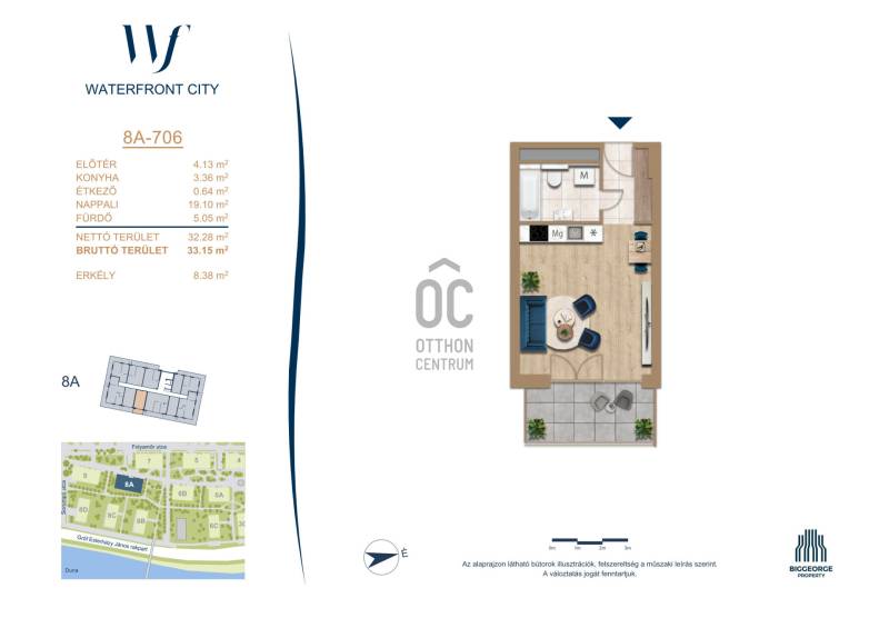 Projekt bemutatásaA projektrőlA Waterfront City egy új, modern városnegyed a 3. kerületben, ahol a természet közelsége és a városi kényelem tökéletes egyensúlyban van. A Duna-part közvetlen szomszédságában elhelyezkedő fejlesztés különleges atmoszférát kínál: a sétányt új épületek határolják, üzletekkel, kávézókkal és szolgáltatásokkal, amelyek élhető közösségi teret teremtenek.A 13 emeletes lakóépületből lenyűgöző örökpanoráma nyílik a budai hegyekre és a folyóra, a tágas teraszok pedig ideálisak a pihenéshez vagy a baráti összejövetelekhez. A zöldtetők, parkosított terek és fenntartható megoldások – mint az energiatakarékos rendszerek és okos otthon funkciók – mind hozzájárulnak a modern, környezettudatos életstílushoz.Látogass el értékesítési irodánkba, és tekintsd meg a városnegyed makettjét személyesen! Ismerd meg, milyen lesz az élet Budapest egyik legizgalmasabb új fejlesztésében!Óbuda szívébenKépzeld el, ahogy egy napsütéses délelőttön Óbuda szívében sétálsz, a Duna közelsége frissítően hat rád, miközben a Folyamőr utca, a Miklós tér és a Bogdáni út által határolt, öt hektáros területre érsz. A levegőben ott van a város történelme, mégis minden részletében a jövő hívogat.A 50 000 négyzetméteres területen egy hangulatos sétány vezet végig, amely egyenesen az óbudai Fő térre visz – mindössze 600 méterre. Ez a sétány nem csupán összeköt, hanem élményt nyújt: a Kolosy térről induló Óbudai Promenád részeként a város egyik legélhetőbb, legpezsgőbb szakaszán haladsz végig. És ha biciklivel érkeznél? A nemzetközi kerékpárút is itt halad el, Szentendre felé vezetve.Az 5. ütemben épülő 149 lakás mindegyike egyedi hangulatot kínál. Ahogy belépsz egy-egy otthonba, a hatalmas üvegfelületeken át beáradó fény és a tágas, szellős terek azonnal magukkal ragadnak. A kilátás? A Kaszap István park zöldje nyújt békét, míg a felsőbb emeletekről a Budai-hegység örökpanorámája tárul eléd – minden nap egy új festmény az ablakodban.A 6. ütemben 316 modern lakás épül, tágas teraszokkal és lenyűgöző kilátással a Dunára és a budai hegyekre. A lakók kényelmét őrszolgálat, kamerarendszer, mélygarázs, vendéglátóhelyek, belső park, játszótér és E-autó töltők szolgálják. Ez a projekt utolsó üteme, amely még közvetlen Duna-parti kapcsolattal rendelkezik.