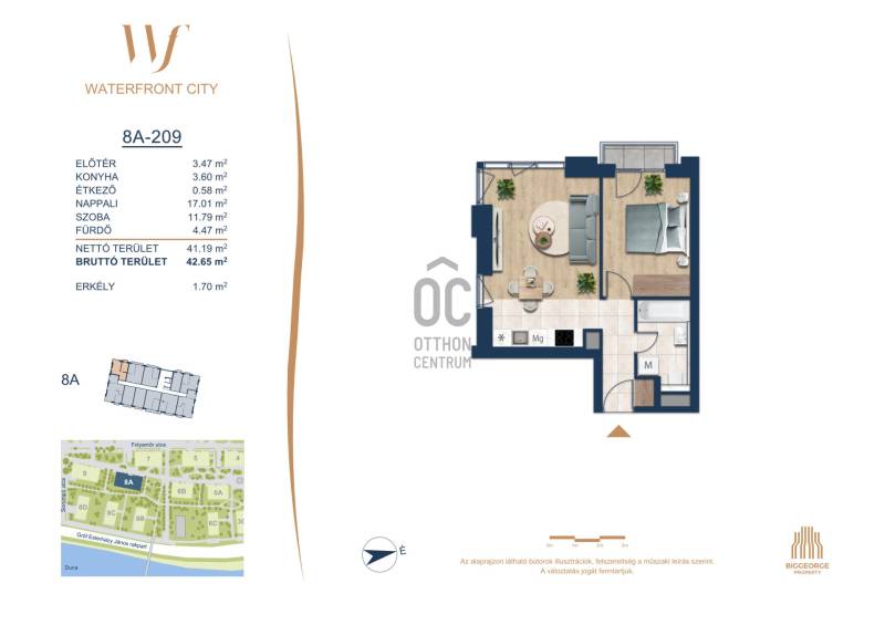 Projekt bemutatásaA projektrőlA Waterfront City egy új, modern városnegyed a 3. kerületben, ahol a természet közelsége és a városi kényelem tökéletes egyensúlyban van. A Duna-part közvetlen szomszédságában elhelyezkedő fejlesztés különleges atmoszférát kínál: a sétányt új épületek határolják, üzletekkel, kávézókkal és szolgáltatásokkal, amelyek élhető közösségi teret teremtenek.A 13 emeletes lakóépületből lenyűgöző örökpanoráma nyílik a budai hegyekre és a folyóra, a tágas teraszok pedig ideálisak a pihenéshez vagy a baráti összejövetelekhez. A zöldtetők, parkosított terek és fenntartható megoldások – mint az energiatakarékos rendszerek és okos otthon funkciók – mind hozzájárulnak a modern, környezettudatos életstílushoz.Látogass el értékesítési irodánkba, és tekintsd meg a városnegyed makettjét személyesen! Ismerd meg, milyen lesz az élet Budapest egyik legizgalmasabb új fejlesztésében!Óbuda szívébenKépzeld el, ahogy egy napsütéses délelőttön Óbuda szívében sétálsz, a Duna közelsége frissítően hat rád, miközben a Folyamőr utca, a Miklós tér és a Bogdáni út által határolt, öt hektáros területre érsz. A levegőben ott van a város történelme, mégis minden részletében a jövő hívogat.A 50 000 négyzetméteres területen egy hangulatos sétány vezet végig, amely egyenesen az óbudai Fő térre visz – mindössze 600 méterre. Ez a sétány nem csupán összeköt, hanem élményt nyújt: a Kolosy térről induló Óbudai Promenád részeként a város egyik legélhetőbb, legpezsgőbb szakaszán haladsz végig. És ha biciklivel érkeznél? A nemzetközi kerékpárút is itt halad el, Szentendre felé vezetve.Az 5. ütemben épülő 149 lakás mindegyike egyedi hangulatot kínál. Ahogy belépsz egy-egy otthonba, a hatalmas üvegfelületeken át beáradó fény és a tágas, szellős terek azonnal magukkal ragadnak. A kilátás? A Kaszap István park zöldje nyújt békét, míg a felsőbb emeletekről a Budai-hegység örökpanorámája tárul eléd – minden nap egy új festmény az ablakodban.A 6. ütemben 316 modern lakás épül, tágas teraszokkal és lenyűgöző kilátással a Dunára és a budai hegyekre. A lakók kényelmét őrszolgálat, kamerarendszer, mélygarázs, vendéglátóhelyek, belső park, játszótér és E-autó töltők szolgálják. Ez a projekt utolsó üteme, amely még közvetlen Duna-parti kapcsolattal rendelkezik.