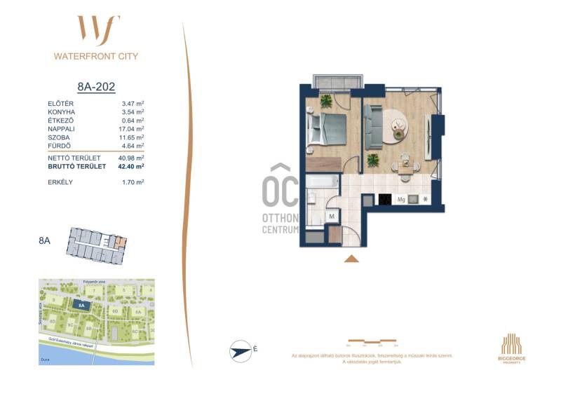 Projekt bemutatásaA projektrőlA Waterfront City egy új, modern városnegyed a 3. kerületben, ahol a természet közelsége és a városi kényelem tökéletes egyensúlyban van. A Duna-part közvetlen szomszédságában elhelyezkedő fejlesztés különleges atmoszférát kínál: a sétányt új épületek határolják, üzletekkel, kávézókkal és szolgáltatásokkal, amelyek élhető közösségi teret teremtenek.A 13 emeletes lakóépületből lenyűgöző örökpanoráma nyílik a budai hegyekre és a folyóra, a tágas teraszok pedig ideálisak a pihenéshez vagy a baráti összejövetelekhez. A zöldtetők, parkosított terek és fenntartható megoldások – mint az energiatakarékos rendszerek és okos otthon funkciók – mind hozzájárulnak a modern, környezettudatos életstílushoz.Látogass el értékesítési irodánkba, és tekintsd meg a városnegyed makettjét személyesen! Ismerd meg, milyen lesz az élet Budapest egyik legizgalmasabb új fejlesztésében!Óbuda szívébenKépzeld el, ahogy egy napsütéses délelőttön Óbuda szívében sétálsz, a Duna közelsége frissítően hat rád, miközben a Folyamőr utca, a Miklós tér és a Bogdáni út által határolt, öt hektáros területre érsz. A levegőben ott van a város történelme, mégis minden részletében a jövő hívogat.A 50 000 négyzetméteres területen egy hangulatos sétány vezet végig, amely egyenesen az óbudai Fő térre visz – mindössze 600 méterre. Ez a sétány nem csupán összeköt, hanem élményt nyújt: a Kolosy térről induló Óbudai Promenád részeként a város egyik legélhetőbb, legpezsgőbb szakaszán haladsz végig. És ha biciklivel érkeznél? A nemzetközi kerékpárút is itt halad el, Szentendre felé vezetve.Az 5. ütemben épülő 149 lakás mindegyike egyedi hangulatot kínál. Ahogy belépsz egy-egy otthonba, a hatalmas üvegfelületeken át beáradó fény és a tágas, szellős terek azonnal magukkal ragadnak. A kilátás? A Kaszap István park zöldje nyújt békét, míg a felsőbb emeletekről a Budai-hegység örökpanorámája tárul eléd – minden nap egy új festmény az ablakodban.A 6. ütemben 316 modern lakás épül, tágas teraszokkal és lenyűgöző kilátással a Dunára és a budai hegyekre. A lakók kényelmét őrszolgálat, kamerarendszer, mélygarázs, vendéglátóhelyek, belső park, játszótér és E-autó töltők szolgálják. Ez a projekt utolsó üteme, amely még közvetlen Duna-parti kapcsolattal rendelkezik.