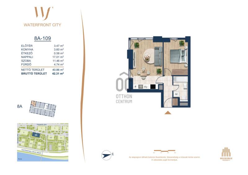 Projekt bemutatásaA projektrőlA Waterfront City egy új, modern városnegyed a 3. kerületben, ahol a természet közelsége és a városi kényelem tökéletes egyensúlyban van. A Duna-part közvetlen szomszédságában elhelyezkedő fejlesztés különleges atmoszférát kínál: a sétányt új épületek határolják, üzletekkel, kávézókkal és szolgáltatásokkal, amelyek élhető közösségi teret teremtenek.A 13 emeletes lakóépületből lenyűgöző örökpanoráma nyílik a budai hegyekre és a folyóra, a tágas teraszok pedig ideálisak a pihenéshez vagy a baráti összejövetelekhez. A zöldtetők, parkosított terek és fenntartható megoldások – mint az energiatakarékos rendszerek és okos otthon funkciók – mind hozzájárulnak a modern, környezettudatos életstílushoz.Látogass el értékesítési irodánkba, és tekintsd meg a városnegyed makettjét személyesen! Ismerd meg, milyen lesz az élet Budapest egyik legizgalmasabb új fejlesztésében!Óbuda szívébenKépzeld el, ahogy egy napsütéses délelőttön Óbuda szívében sétálsz, a Duna közelsége frissítően hat rád, miközben a Folyamőr utca, a Miklós tér és a Bogdáni út által határolt, öt hektáros területre érsz. A levegőben ott van a város történelme, mégis minden részletében a jövő hívogat.A 50 000 négyzetméteres területen egy hangulatos sétány vezet végig, amely egyenesen az óbudai Fő térre visz – mindössze 600 méterre. Ez a sétány nem csupán összeköt, hanem élményt nyújt: a Kolosy térről induló Óbudai Promenád részeként a város egyik legélhetőbb, legpezsgőbb szakaszán haladsz végig. És ha biciklivel érkeznél? A nemzetközi kerékpárút is itt halad el, Szentendre felé vezetve.Az 5. ütemben épülő 149 lakás mindegyike egyedi hangulatot kínál. Ahogy belépsz egy-egy otthonba, a hatalmas üvegfelületeken át beáradó fény és a tágas, szellős terek azonnal magukkal ragadnak. A kilátás? A Kaszap István park zöldje nyújt békét, míg a felsőbb emeletekről a Budai-hegység örökpanorámája tárul eléd – minden nap egy új festmény az ablakodban.A 6. ütemben 316 modern lakás épül, tágas teraszokkal és lenyűgöző kilátással a Dunára és a budai hegyekre. A lakók kényelmét őrszolgálat, kamerarendszer, mélygarázs, vendéglátóhelyek, belső park, játszótér és E-autó töltők szolgálják. Ez a projekt utolsó üteme, amely még közvetlen Duna-parti kapcsolattal rendelkezik.