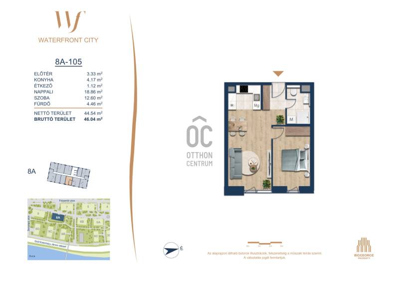 Projekt bemutatásaA projektrőlA Waterfront City egy új, modern városnegyed a 3. kerületben, ahol a természet közelsége és a városi kényelem tökéletes egyensúlyban van. A Duna-part közvetlen szomszédságában elhelyezkedő fejlesztés különleges atmoszférát kínál: a sétányt új épületek határolják, üzletekkel, kávézókkal és szolgáltatásokkal, amelyek élhető közösségi teret teremtenek.A 13 emeletes lakóépületből lenyűgöző örökpanoráma nyílik a budai hegyekre és a folyóra, a tágas teraszok pedig ideálisak a pihenéshez vagy a baráti összejövetelekhez. A zöldtetők, parkosított terek és fenntartható megoldások – mint az energiatakarékos rendszerek és okos otthon funkciók – mind hozzájárulnak a modern, környezettudatos életstílushoz.Látogass el értékesítési irodánkba, és tekintsd meg a városnegyed makettjét személyesen! Ismerd meg, milyen lesz az élet Budapest egyik legizgalmasabb új fejlesztésében!Óbuda szívébenKépzeld el, ahogy egy napsütéses délelőttön Óbuda szívében sétálsz, a Duna közelsége frissítően hat rád, miközben a Folyamőr utca, a Miklós tér és a Bogdáni út által határolt, öt hektáros területre érsz. A levegőben ott van a város történelme, mégis minden részletében a jövő hívogat.A 50 000 négyzetméteres területen egy hangulatos sétány vezet végig, amely egyenesen az óbudai Fő térre visz – mindössze 600 méterre. Ez a sétány nem csupán összeköt, hanem élményt nyújt: a Kolosy térről induló Óbudai Promenád részeként a város egyik legélhetőbb, legpezsgőbb szakaszán haladsz végig. És ha biciklivel érkeznél? A nemzetközi kerékpárút is itt halad el, Szentendre felé vezetve.Az 5. ütemben épülő 149 lakás mindegyike egyedi hangulatot kínál. Ahogy belépsz egy-egy otthonba, a hatalmas üvegfelületeken át beáradó fény és a tágas, szellős terek azonnal magukkal ragadnak. A kilátás? A Kaszap István park zöldje nyújt békét, míg a felsőbb emeletekről a Budai-hegység örökpanorámája tárul eléd – minden nap egy új festmény az ablakodban.A 6. ütemben 316 modern lakás épül, tágas teraszokkal és lenyűgöző kilátással a Dunára és a budai hegyekre. A lakók kényelmét őrszolgálat, kamerarendszer, mélygarázs, vendéglátóhelyek, belső park, játszótér és E-autó töltők szolgálják. Ez a projekt utolsó üteme, amely még közvetlen Duna-parti kapcsolattal rendelkezik.