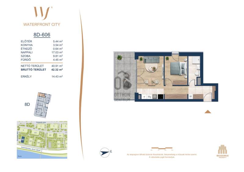 Projekt bemutatásaA projektrőlA Waterfront City egy új, modern városnegyed a 3. kerületben, ahol a természet közelsége és a városi kényelem tökéletes egyensúlyban van. A Duna-part közvetlen szomszédságában elhelyezkedő fejlesztés különleges atmoszférát kínál: a sétányt új épületek határolják, üzletekkel, kávézókkal és szolgáltatásokkal, amelyek élhető közösségi teret teremtenek.A 13 emeletes lakóépületből lenyűgöző örökpanoráma nyílik a budai hegyekre és a folyóra, a tágas teraszok pedig ideálisak a pihenéshez vagy a baráti összejövetelekhez. A zöldtetők, parkosított terek és fenntartható megoldások – mint az energiatakarékos rendszerek és okos otthon funkciók – mind hozzájárulnak a modern, környezettudatos életstílushoz.Látogass el értékesítési irodánkba, és tekintsd meg a városnegyed makettjét személyesen! Ismerd meg, milyen lesz az élet Budapest egyik legizgalmasabb új fejlesztésében!Óbuda szívébenKépzeld el, ahogy egy napsütéses délelőttön Óbuda szívében sétálsz, a Duna közelsége frissítően hat rád, miközben a Folyamőr utca, a Miklós tér és a Bogdáni út által határolt, öt hektáros területre érsz. A levegőben ott van a város történelme, mégis minden részletében a jövő hívogat.A 50 000 négyzetméteres területen egy hangulatos sétány vezet végig, amely egyenesen az óbudai Fő térre visz – mindössze 600 méterre. Ez a sétány nem csupán összeköt, hanem élményt nyújt: a Kolosy térről induló Óbudai Promenád részeként a város egyik legélhetőbb, legpezsgőbb szakaszán haladsz végig. És ha biciklivel érkeznél? A nemzetközi kerékpárút is itt halad el, Szentendre felé vezetve.Az 5. ütemben épülő 149 lakás mindegyike egyedi hangulatot kínál. Ahogy belépsz egy-egy otthonba, a hatalmas üvegfelületeken át beáradó fény és a tágas, szellős terek azonnal magukkal ragadnak. A kilátás? A Kaszap István park zöldje nyújt békét, míg a felsőbb emeletekről a Budai-hegység örökpanorámája tárul eléd – minden nap egy új festmény az ablakodban.A 6. ütemben 316 modern lakás épül, tágas teraszokkal és lenyűgöző kilátással a Dunára és a budai hegyekre. A lakók kényelmét őrszolgálat, kamerarendszer, mélygarázs, vendéglátóhelyek, belső park, játszótér és E-autó töltők szolgálják. Ez a projekt utolsó üteme, amely még közvetlen Duna-parti kapcsolattal rendelkezik.