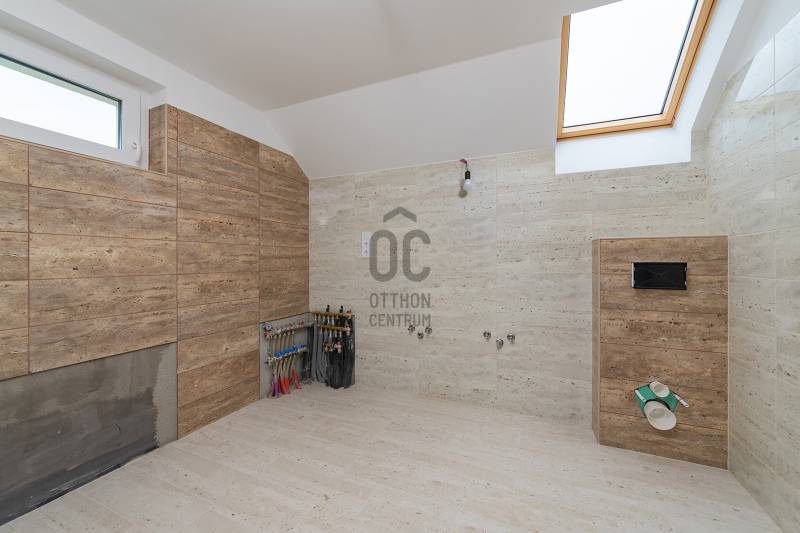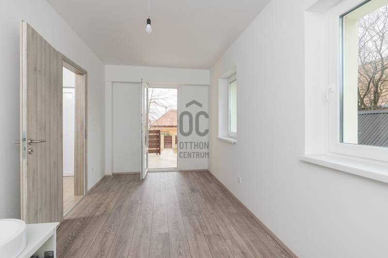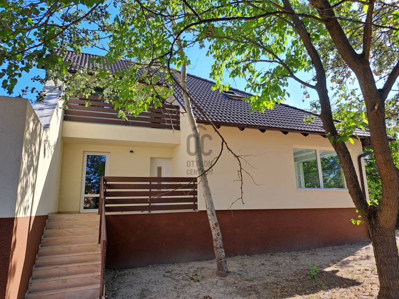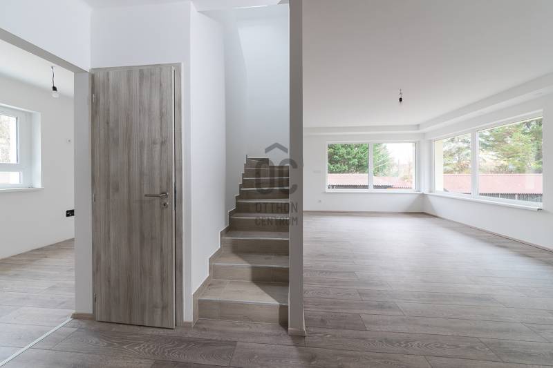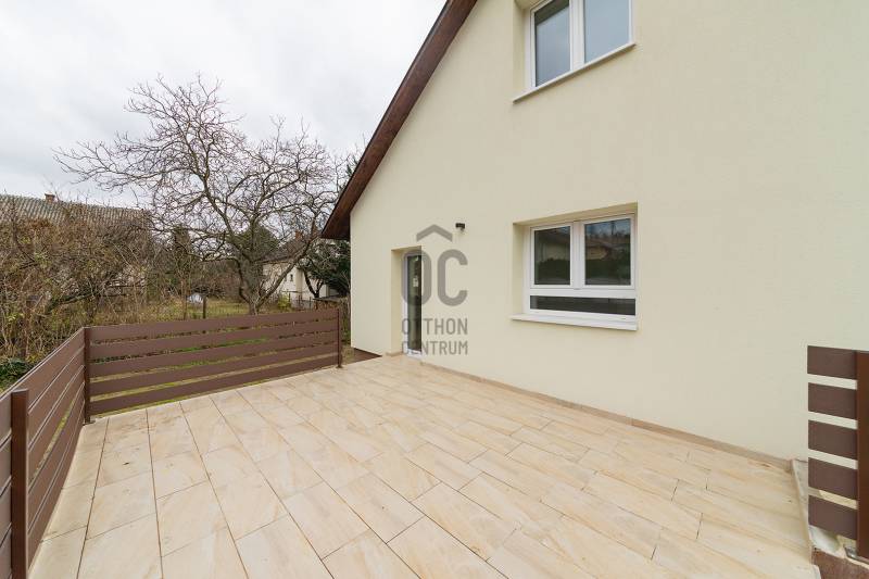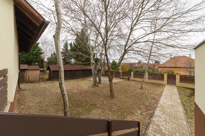 XVII. kerületben a Kucorgó tér környékén, csendes, rendezett környéken kínálunk megvásárlásra egy önálló családi házat 711 nm-es összközműves telekkel. A ház 1990-ben épült, de tavaly lett befejezve, gyakorlatilag egy újjáépített ingatlant vehet a következő tulajdonosa. Műszakilag és esztétikailag is teljes felújítás történt: tető, cserepek, ereszcsatorna, tető szigetelés, homlokzat szigetelés és színezés, a nyílászárók hőszigetelt üvegezésű műanyagra lettek cserélve, az elektromos hálózat, vízcsövek, fűtésrendszer is megújult. Korszerű hőszivattyú biztosítja a fűtést, a gáz telken belül van. A lakóház belső elosztása kiváló, nagyobb család számára is kényelmes otthont biztosít. A földszinten az előszobából nyílik egy szoba, mely akár iroda is lehet, hiszen a bejárati teraszról önállóan is megközelíthető. A földszinten kapott helyet a tágas nappali hatalmas ablakokkal, a kényelmes étkező, a nagy konyha a kertre és a hátsó teraszra néző ablakokkal, innen közvetlenül ki tudunk jutni a nagy teraszra ( 27 nm!) és a kertbe. A konyhából nyílik a kamra, továbbá egy tároló-gépészeti helyiség és egy mosdó-mellékhelyiség is kialakításra került. Az emeletre kényelmes, stabil lépcső vezet, ahol 3 szoba és két fürdőszoba található. Két szobának saját fürdőszobája van, az egyik szoba pedig erkélyes. A ház alatt van egy pince, itt lett elhelyezve a gépészet (fűtés, hőszivattyú), de mosókonyha is könnyedén kialakítható, tárolásra is kiválóan alkalmas. A kertben két autónak térkövezett autóbeálló lett kialakítva. A környék csendes, családi házakkal beépített, kifejezetten rendezett lakó környezet. Buszmegálló pár perc gyalog, orvos, gyógyszertár, iskola, óvoda, szintén rövid sétával elérhető. A vonathoz közlekedő kis busz megállója szintén a közelben van, így a rákoscsabai vonatállomást könnyedén elérhetjük, a Keleti pályaudvar 25 perc. Tehermentes ingatlan, akár azonnal birtokba vehető.Ez az ingatlan a \"Felező csomag\" megbízási portfólióhoz tartozik. Részletek az Otthon Centrum weboldalán. |