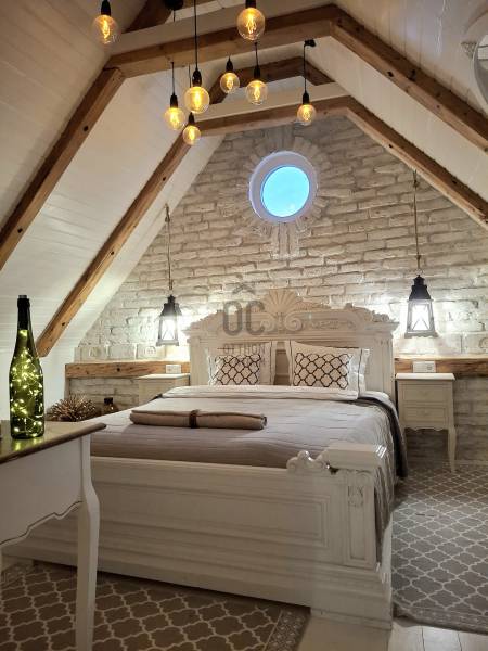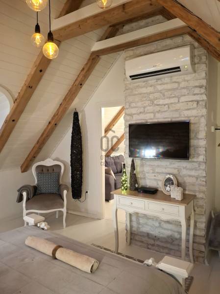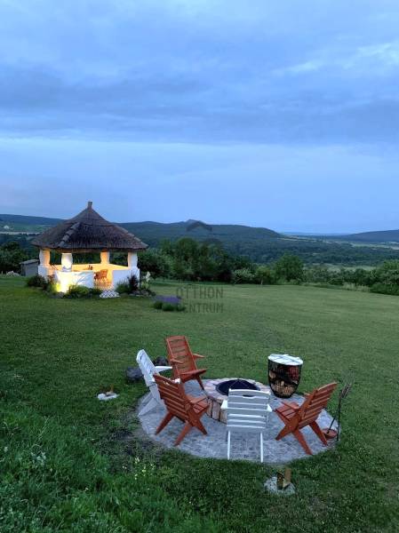 A Káli- medence közepén elhelyezkedő, az elmúlt években gasztronómiájáról ismertté vált Köveskál külterületén található \"beleszeretős\" vendégházat ajánlunk figyelmébe!Zavartalan pihenést biztosító környezetben, lenyűgöző panorámával a környező hegyekre, szőlődűlőkre, a Hegyestűre és Köveskálra.KIEMELT MEGBÍZÁS AZ OTTHON CENTRUM KÍNÁLATÁBAN!A régi PRÉSHÁZ 2016- ban teljes felújításon esett át! - a Balaton- felvidék építészeti jegyeinek megőrzésével épült újra (vakolatdíszek, kovácsoltvas spaletták, nád héjazat...) - az egyedileg készített bútorok és prémium mínőségű burkolatok eredménye egy otthonos, varázslatos belső tér - alapterületét tekintve a lakótér két szinten 90 m2 + 80 m2 pince - az alsó szinten a konyha - étkező mellett a fürdőszobát és a pincét találjuk, a tetőtérben kettő egymásból nyíló hálószoba került kialakításra - a fűtést lent Nobo panelek ( Wi- fi támogatással ), fent hűtő- fűtő klíma biztosítja - villany bevezetve, a vízellátást a pincében elhelyezett 6000 l-es hidroforos vízrendszer ( kamerával ) biztosítja - a 3 m belmagasságú pince további bővítési lehetőséget nyújt, akár egy külön apartman vagy wellnes részleg megvalósításáraA 3508 m2-es panorámás telek nagyrészt füvesített, az út melletti telekhatárt levendulák és mandulafák szegélyezik.Egy nádtetős szaletli és egy sütögető biztosítja a kinti pihenést, családi és baráti összejövetelek helyszíne lehet.Nyaralónak és vendégháznak ( 7 éve működik, bejáratott vendégkör) is tökéletes választás lehet.Besorolása művelés alól kivett zártkert, azonnal birtokba vehető, nem kell kifüggeszteni.A vételár tartalmazza a teljes bútorzatot és berendezést!KÁLI- MEDENCE A Balaton- felvidék lenyűgöző természeti- tájképi világának egyik koronaékszere ez a romantikus, békés, idilli táj.Egyedülálló tájképi értékei mellett kőzettani, növény- és állattani kincsei is kimagaslók .Számos túraútvonala mellett a Balaton közelsége is fontos szerepet játszik.Ha felkeltettem érdeklődését, kérdése merült fel vagy szeretne időpontot egyeztetni, várom megtisztelő hívását a megadott elérhetőségeken! |