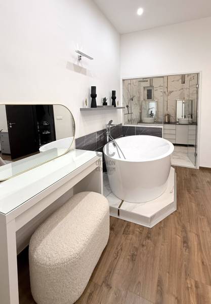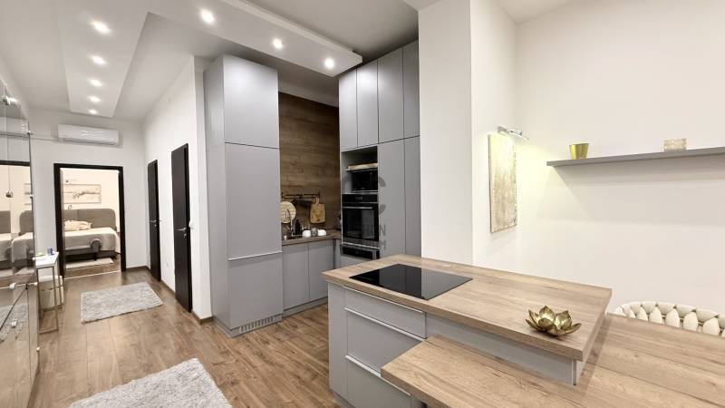 Luxus szinten felújított lakás a XIII. kerületben – Lehel utcaEladó egy 69 m²-es, teljeskörűen prémium minőségben felújított lakás a Lehel utcában.A tágas, DK-i tájolású nappali gyönyörű LED-es álmennyezettel, modern konyhával és elegáns dekorral várja új tulajdonosát.Teljes körűen felújított, magas minőségű anyagokkal és bútorokkal felszerelt, csendes és világos, 2 szobás lakás. A modern, skandináv–luxus hangulatú otthon tökéletes választás akár pároknak, akár egyedülállóknak, de befektetésnek is kimagasló – azonnal kiadható állapotban van. A háló és a nappali és a közlekedő is hűtő-fűtő klímával felszerelt, télen elegendően melegít, nyáron elegendően hűt. Igény szerint fűtő panelek felszerelhetőek, de eddig nem volt rá igény. H-tarifa igényelhető , így fűtése kedvező lehet . Télen eddig (20-30 ezer forint volt maximum) ✨ Főbb jellemzőkAlapterület:69 m² Helyiségek: nappali-konyha-étkező, hálószoba, fürdőszoba, külön WC -kézmosó, gardrób, előszobaÁllapot: nemrégiben felújítottKözös költség: 32.000 FtNyílászárók: műanyag, jó állapotbanFűtés: elektromos (hűtő-fűtő klíma )-Nappali – a lakás szíveA tágas, elegáns nappali modern szürke sarokkanapéval, hangulatvilágítással és nagyméretű ablakokkal rendelkezik. -Modern prémium konyhaA konyha teljesen új, beépített gépekkel (sütő, mikrohullámú, indukciós főzőlap, tárolófal).Letisztult szürke frontok, fa hatású hátfal és rengeteg pakolóhely teszi igazán praktikussá.A konyha–étkező rész egy elegáns pulttal egészül ki, különleges fonott bárszékekkel.-Fürdő és külön WCA lakás különlegessége a szabadon álló designkád, a walk-in zuhany.-Gardrób – álom tárolóhelyiségA hatalmas, beépített gardróbszoba minden nő álma:rengeteg polc, akasztórúd, felső szekrények és egy külön mosókonyharész került kialakításra.-HálószobaCsendes, udvarra néző, letisztult stílusú, tökéletes pihenőhely.Elhelyezkedés és környékA környék csendes, rendezett, jó infrastruktúrával, gyors közlekedéssel.Minden fontos szolgáltatás pár percre elérhető.Tökéletes választás igényes vevőknek vagy befektetőknek – azonnal kiadható, magas hozammal. |