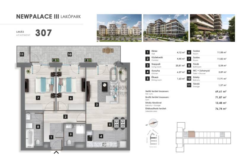 Modern, világos, energiatakarékos lakás eladó a Duna Plaza közvetlen közelében!XIII. kerület – New Palace Lakópark III. ütem3. emelet | 69,61 m² | 11,91m² erkély | 3 szoba |2026 év végén költözhető | 5% ÁFA visszaigényelhető a vételár egy részébőlModern, világos, energiatakarékos lakás eladó a Duna Plaza közvetlen közelében, dél-keleti fekvéssel, belső kertre néző erkéllyel, Prémium nyílászárókkal, mennyezeti hűtés-fűtéssel, alacsony rezsivel, Nyugodt környezetben, mégis minden karnyújtásnyira van: bevásárlás, sport, parkok, Váci úti irodafolyosóKözlekedés kiváló:M3-as metró, buszjáratok, Újpest vasútállomás, gyors kijutás az M3-as autópályára.Kötelező teremgarázshely vásárlás: 7,19 M Ft.Ideális első otthonnak vagy befektetésnek a XIII. kerület legdinamikusabban fejlődő részén! |