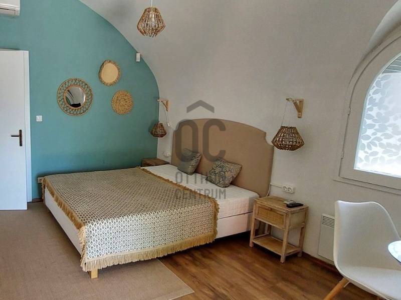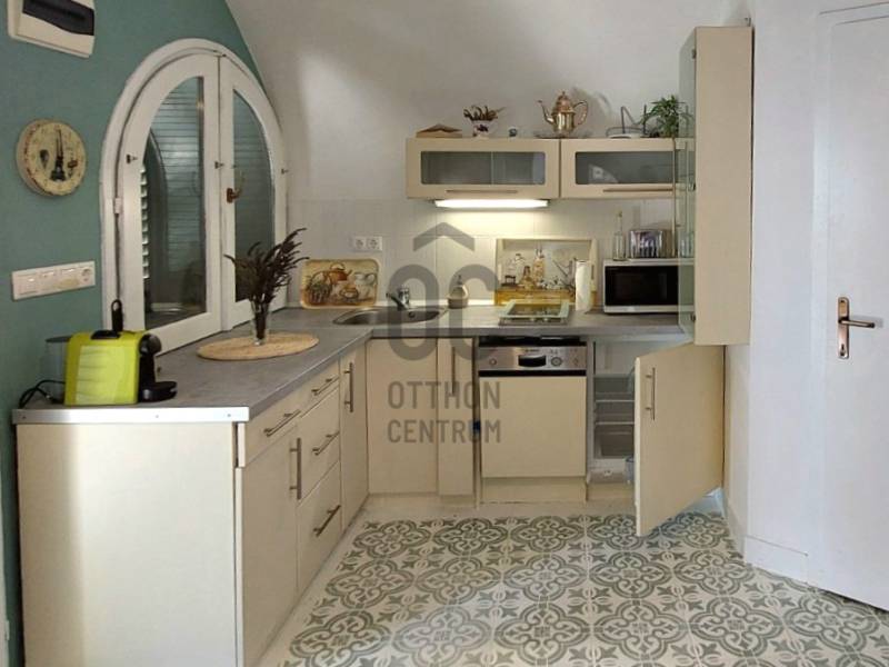 A Kisfaludy útról nyíló zsákutcában jó megközelíthetőséggel rendelkező felújított apartmant közel 50 nm terasszal ajánljuk figyelmébe. Az ingatlan főbb jellemzői: - A ház jelenleg használt 22 nm-es lakrészén a konyha-étkező-háló mellett egy fürdőszoba került kialakításra. - A ház hátsó részében található 14 nm-es borfeldolgozó átépítésével a lakótér növelhető. - Az épület oldalánál kialakított téli kert mozgatható elemekkel igény szerint nyitható-zárható. - A lakótér fűtését az elektromos panelek mellett fatüzelésű kandalló is biztosítja. - A felszerelt hűtő-fűtő klíma télen-nyáron gondoskodik a megfelelő hőmérsékletről. - Vezetékes víz – ami a hegyen kincs, és nem mindenhol elérhető rendelkezésre áll.- A 839 nm-es területen lépcsőzetes kialakítású, bazaltkő támfallal tagolt fűszerkert található- A 25 nm-es fém üvegházban szinte minden megtermelhető- Az autó tárolásra és beállásra fedett autótároló készült, melyet elektromos kapu nyit.- Az épület riasztó rendszerrel rendelkezik- Az épület előtti bazaltkővel kirakott terasz jó időben tökéletes helyszín a pihenésre, és a szabadtéri étkezésre lenyűgöző panorámával a Balatonra és a környező településekre.Ha kisméretű, könnyen karbantartható nyaralót keres, vagy szálláskiadásban gondolkodik, úgy tökéletes választás a meghirdetett ingatlan!Amennyiben felkeltettem érdeklődését, úgy várom hívását! |