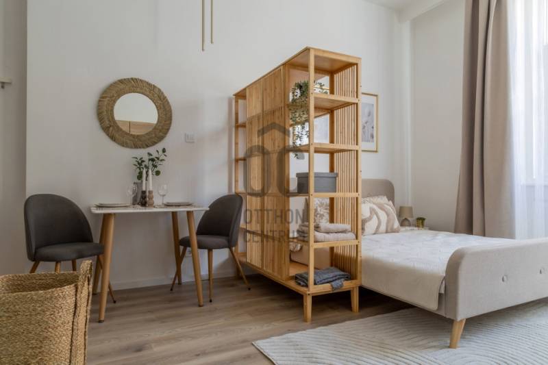 Kiadó egy 4. emeleti, 2 m2-es, teljes körű felújításon átesett stúdió lakás Budapest VII. kerületében, az Erzsébet körúttól egy ugrásra az Almássy térnél.A ház rendezett és tiszta, elhelyezkedése kiváló, hiszen pár perc az 1-es metró (Vörösmarty utca), a 2-es metró (Blaha Lujza tér), a 4-6-os villamos, valamint több busz és troli.Leginkább fiatal egyedülállóknak, esetleg pároknak kitűnő megoldás, a legtöbb egyetem/főiskola, színházak, egyéb szórakozási lehetőség könnyedén elérhetők.A lakás praktikus és világos, nagyon kellemes élettér, egy négyes lakóegység egyik eleme.A rendelkezésre álló tér kihasználását igényes és minőségi bútorozás segíti.A lakás rövid határidővel birtokba vehető.A szerződéskötéshez 1 havi bérleti díjjal és 2 havi kaucióval kell rendelkezni, valamint szükség lesz közjegyzői kiköltözési nyilatkozatra.A minimum bérleti idő 12 hónap, kisállatot hozni és a lakáson belül dohányozni nem lehet.További információkért keressen akár hétvégén is!Az időpont egyeztetése minimum 1-2 nappal korábban szükséges. |