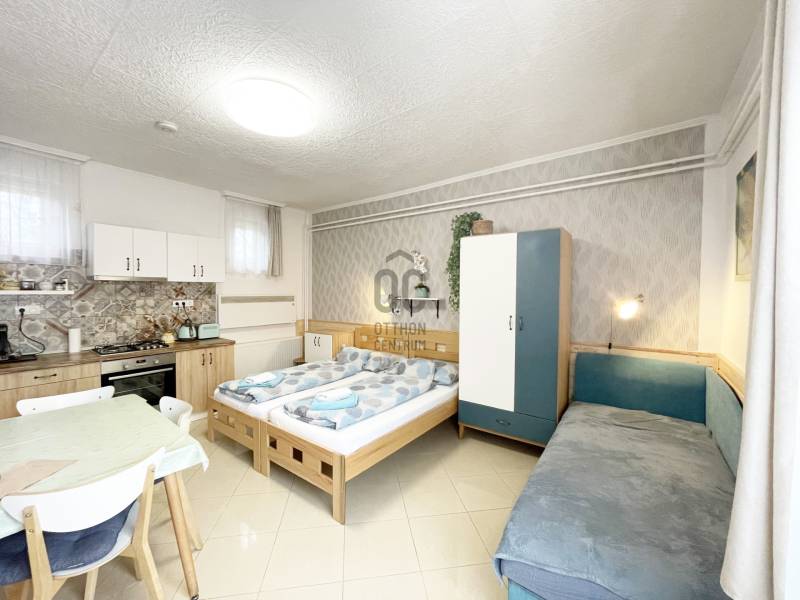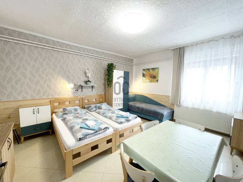 Nagyatád kedvező adottságokkal rendelkezik a turizmus fejlesztéséhez. A termálvíz hasznosítása a gyógyászatban és a rekreációs szolgáltatások körében egyes területeken évszázados tapasztalatokkal szolgált. A parkos, virágos kisváros folyamatosan gyarapodik kulturális és turisztikai attrakciókban, szolgáltatásokban. Az évente megrendezésre kerülő sportrendezvény az eXtremeMan számos ide látogatót vonz.Az ingatlan egy közel fél hektáros területen helyezkedik el, jól megközelíthető helyen.Elsősorban olyan befektetőknek ajánlom, akik munkásszállásban gondolkodnak, de idősek otthonának is kiválóan alkalmas.Amit az ingatlanról tudni érdemes:-2012-ben a tetőszerkezet teljesen átépítésre került- 6db apartman (5 működő, +1 kialakítható)- magánlakrész, amely szintén 2 külön apartmanná alakítható- 30-40fő elszállásolására alkalmas- kényelmes zárt udvar kamionok, nagyobb teherautók számára is- 15 személyautó számára kialakított parkolóhely- telephely engedéllyel rendelkező terület- udvaron kikapcsolódási lehetőség nyári sütés-főzésre- kamerarendszer- 3*25A áramellátás- 2db 25kw-os turbó gázkazán; hűtő-fűtő klímák; vízteres látványkandalló adják a fűtési lehetőséget- 17kw napelemrendszer (70db panel)A területen jelenleg egy asztalosműhely is üzemel, amely szintén kiváló befektetési lehetőséget kínál. - teljes géppark- 144m2-es könnyűszerkezetes csarnok- zsilipajtókA település 20p autóútra van a Horvát határtólAz alaprajz és a négyzetméterek tájékoztató jellegűekTovábbi információért hívjon bizalommal |