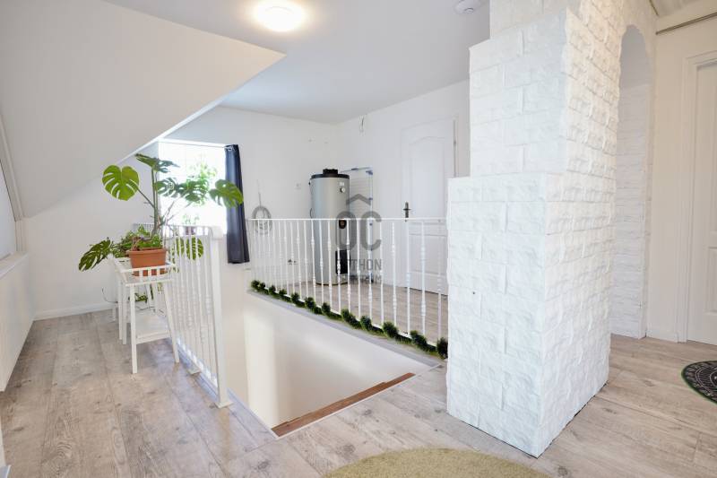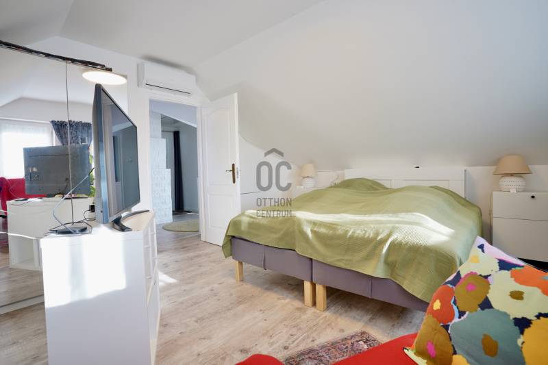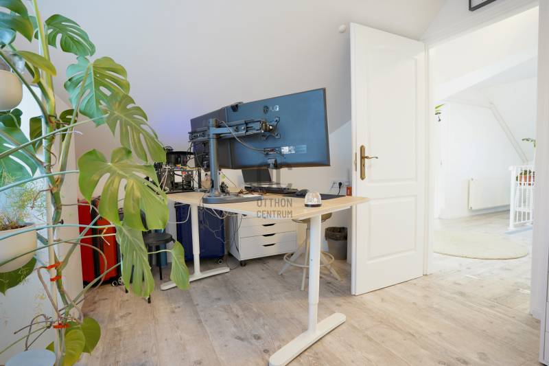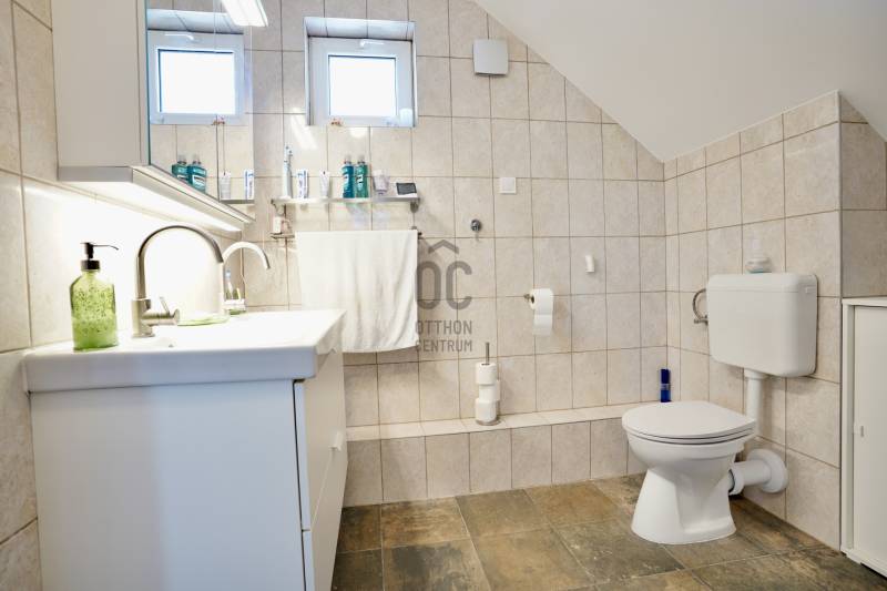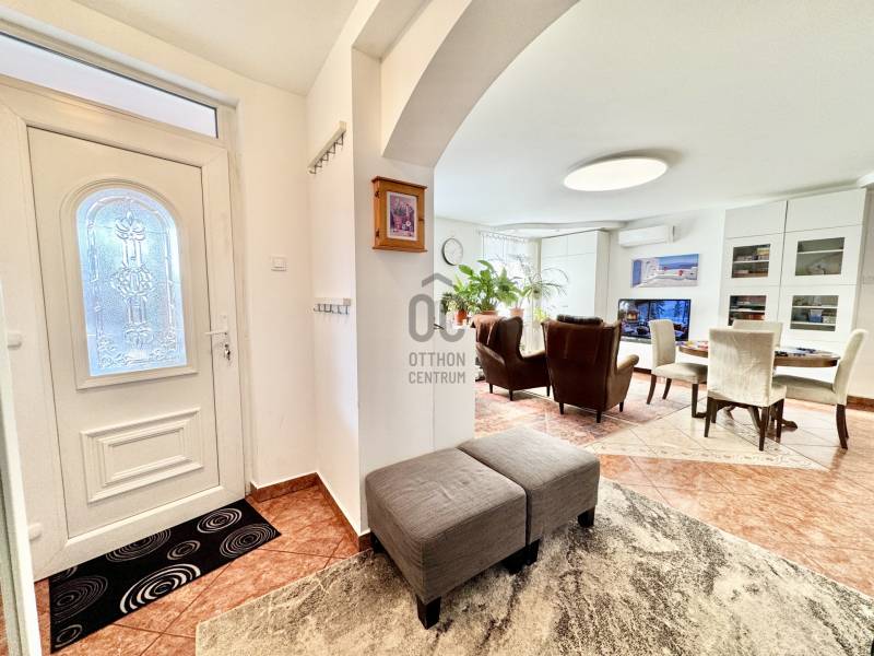 Családbarát, felújított otthon Vácon – nyugalom, tér és modern komfort egy helyen, A+++-os energetikai besorolással!Vác csendes, kertvárosi környezetében eladó egy világos, tágas, igényesen felújított családi ház, amely ideális választás gyermekes családok számára, mindössze 20 percre Budapesttől. Az amerikai konyhás nappalival és négy különálló hálószobával kialakított ingatlan kiváló térszervezésének köszönhetően hosszú távon is kényelmes otthont biztosít, akár több generáció együttélésére is.A 2005-ben épült, masszív Porotherm téglaház 2022 óta folyamatos korszerűsítésen esett át. A 255 cm-es belmagasság és a jó tájolás világos, barátságos belső tereket eredményez. A mindennapi komfortot tovább növeli, hogy minden hálószoba, valamint a nappali is klimatizált, így az év minden szakában kellemes hőmérséklet biztosított.Az energiatakarékos üzemeltetésről 10 kW-os, szaldós elszámolású napelemes rendszer, automata pelletkazán szobatermosztáttal, radiátoros központi fűtés, valamint a földszinten padlófűtés gondoskodik. A melegvízellátást 200 literes Hajdu indirekt tárolós bojler biztosítja, az elektromos hálózat korszerűsített. Az ásott kútról működő öntözőrendszer alacsony fenntartási költségek mellett teszi gondozhatóvá a kertet.A földszinten egy tágas nappali–étkező–amerikai konyha alkotja a családi élet központját, továbbá egy külön hálószoba saját fürdőszobával, amely ideális lehet nagyszülőnek, vendégnek vagy otthoni irodának. Előszoba, kamra és külön WC egészíti ki a szintet. Az emeleten három jól bútorozható hálószoba, fürdőszoba és közlekedő található, míg az alagsor tárolóként és kazánházként funkcionál.A sík, körbekerített kert biztonságos játszóteret kínál gyermekeknek, miközben gyümölcsfák, bogyós növények és szőlő teremtik meg a természetközeli életérzést. A fedett (13 m²) és a tágas, nyitott (35 m²) terasz ideális helyszín családi és baráti összejövetelekhez. Az udvaron 8 m²-es tároló, egy 3,5×7 méteres gépkocsibeálló, valamint további parkolási lehetőség áll rendelkezésre.Az M2-es autóút mindössze 2 percre található, így Budapest gyorsan elérhető, miközben a környék nyugodt, rendezett, kifejezetten családbarát. Iskola, óvoda, bevásárlási lehetőségek rövid időn belül elérhetők, így ez az ingatlan valóban ideális választás azoknak, akik hosszú távra keresnek biztonságos, szerethető otthont.A ház megvásárlásához a megfelelő önerővel „már rendelkező”, de ezenfelül akár ***banki hitelfelvétellel, akár *** CSOK+ , akár ***lakáskassza megtakarítással és akár a ***babaváró program keretében felvehető / felhasználható pénzösszegből vásárló személyek megkeresését is szeretettel várom!Ha a leírtak és a látottak alapján felkeltettem az érdeklődését, keressen bizalommal akár hétvégén is!***Az igénylési / felhasználási feltételekkel kapcsolatban, valamint ezek ügyintézésben is, az Otthon Centrum hitelközvetítő munkatársával együtt, készséggel állok az Ön szíves rendelkezésére! |