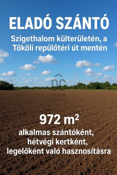 Eladó szántó Szigethalom külterületén – kiváló elhelyezkedéssel a Tököli repülőtéri út mentén!Szigethalom csendes, mégis könnyen megközelíthető külterületén kínálom megvételre ezt a 972 m²-es, szántó besorolású területet, amely számos lehetőséget rejt magában.A terület ideális választás:szántóként, kisebb mezőgazdasági tevékenységre,hétvégi kertként, kikapcsolódásra, hobbikertészkedésre,legelőként, állattartáshoz.A jó megközelíthetőség és a rendezett környezet miatt kiváló befektetési lehetőség is lehet azok számára, akik hosszú távon gondolkodnak.Csend, természet, sokféle felhasználási mód – mindez elérhető áron.Érdeklődés esetén szívesen adok további információt vagy időpontot a megtekintéshez!