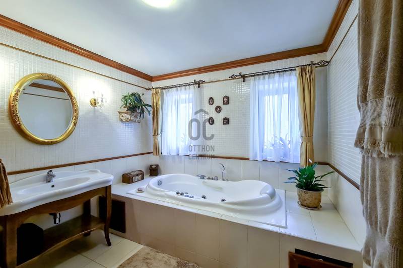 Egyedi családi házat keres, prémium környezetben? Nézzen rá ajánlatunkra!Gyönyörű, EXKLUZÍV KÖRNYEZETben, a város talán legszebb részén, Sopron, Felső-Lőverek csendes utcájában, a belvárostól mindössze 1,5 km-re, eladó egy a századfordulón épült és 1999-ben és 2008-ban teljeskörűen felújított, 3 szintes, bruttó 352 nm-es, exkluzív VILLA.A most meghirdetett villa - magán az épület egyediségén kívül- azért is tekinthető unikálisnak, mert a városnak ezen a prémium részén nagyon ritkán kerülnek piacra ingatlanok.Egy kis történelem:Vannak épületek, amelyek megvásárlásával nemcsak egy ingatlan birtokába jutunk, hanem egy kicsit a történelemnek is részesei leszünk . Ez a gyönyörű szecessziós villa kívülről és belülről is hordozza és megmutatja nekünk a múlt századforduló eleganciáját és semmivel össze nem hasonlítható stílusát. Az épületet az a híres soproni építész - Schármár Károly- tervezte 1909-ben, akiről Sopronban utcát is neveztek el, és a nevéhez Sopronban nagyon sok ma is álló épület köthető. Ilyenek például:- a Széchenyi téri Posta palota - a Deák téri, mai Eötvös gimnázium - a lővereki Szent Margit kápolna, nevéhez fűződik a soproniak által csak Pum háznak nevezett Újteleki u 52. alatti szecessziós épület, valamint részt vett többek között a Villa sor építésében is.A VILLA először 1999-ben került teljes felújításra, a szintén neves soproni építész dinasztia egyik tagja - Kubinszky András- tervei alapján, majd 2008-ban már a mostani tulajdonosok által, egy neves belsőépítész munkájának köszönhetően nyerte el ma is látható formáját.Jellemzői:- Telek: 1664 nm- Mérete: bruttó 352 nm, 302 nm lakóterület (1 - 2 szint) + 20 nm pinceszint, + 30 nm garázs- 7 szoba- 40 nm déli tájolású terasz- 2 autóbeállós garázs - gáz cirkó fűtés, kombi gázkazán- klíma a felső szinten- infraszauna- riasztórendszer- külső medence- grill terasz (minőségi grillezővel, sörcsappal)Az egész házról első pillantásra lerí az időtálló minőség és igényesség.Ha további információra lenne szüksége, kérem keressen a lenti elérhetőségeken!Hitelre van szüksége??Az Otthon Centrum az ország egyik legnagyobb és legmegbízhatóbb hitelközvetítőjeként, teljes körű és díjmentes hitelügyintézéssel, biztosításkötéssel áll rendelkezésére!Kérje személyre szabott ajánlatunkat Kollégáinktól! |