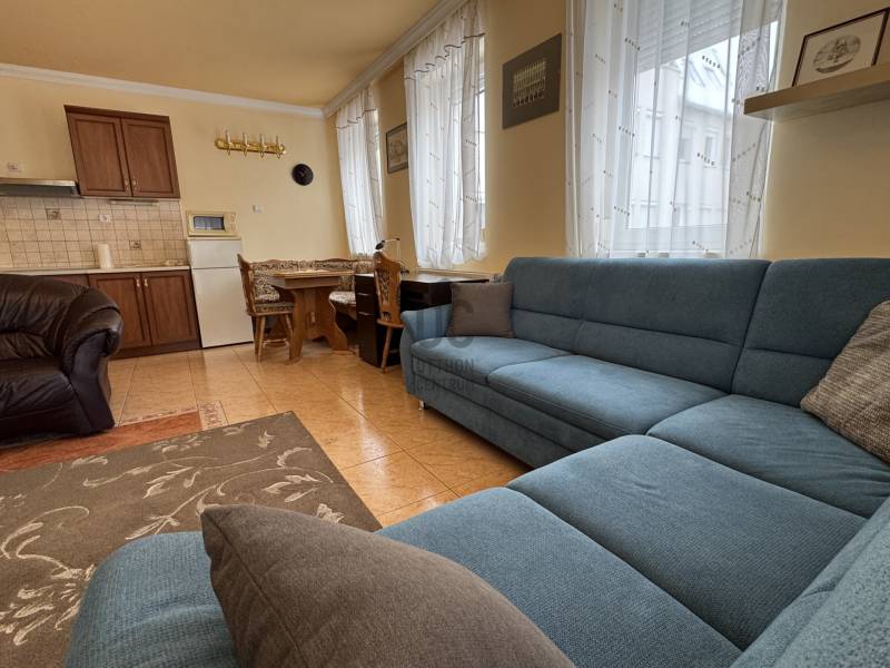 A belváros szívében, egy percre a Sétáló utcától, első emeleti lakás kiadó!-Tágas, világos, amerikai konyha-nappali-étkező egyben, külön hálószoba, fürdőszoba, mellékhelyiség, kamra, tágas előszoba.-A hatalmas teraszra egyaránt a nappaliból és hálószobából is kijuthatunk, mely a belső udvarra néz.-Redőnnyel felszerelt műanyag ablakok, mért távhő, klíma.-Bútorozott, műszaki kis- és nagy gépekkel felszerelt (mosógép, szárítógép, elektromos főzőlap,sütő, szagelszívó, hűtőszekrény, mikró, kávéfőző ).-A közös költség 10.100ft /hó-A belső udvarban parkolóhely biztosított,további 15.000 Ft/hó áron.Kizárólag megbízható, leinformálható, nem dohányzó bérlőnek kiadó!Bérleti díja két havi kaució, egy havi bérleti díj, illetve a közvetítési díj egy havi bérleti díj 50 %-a. |