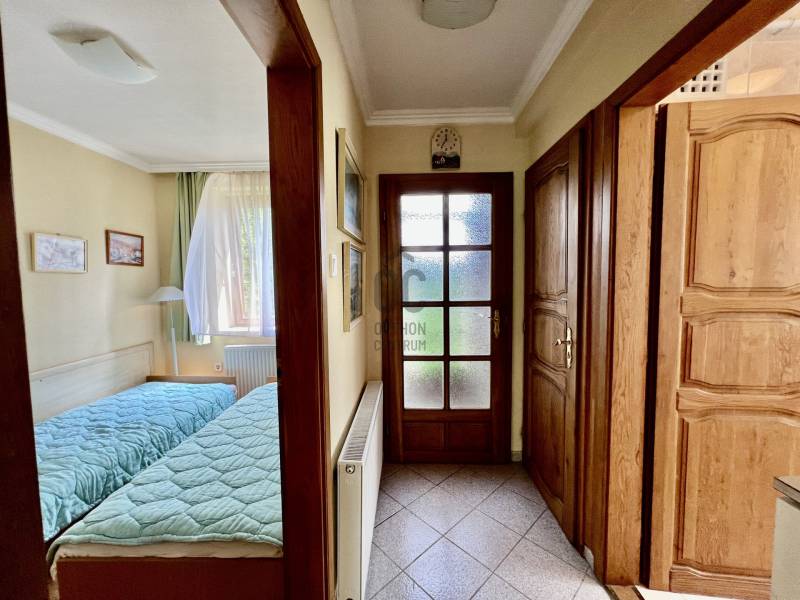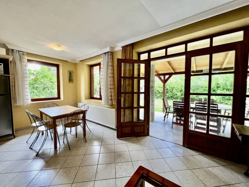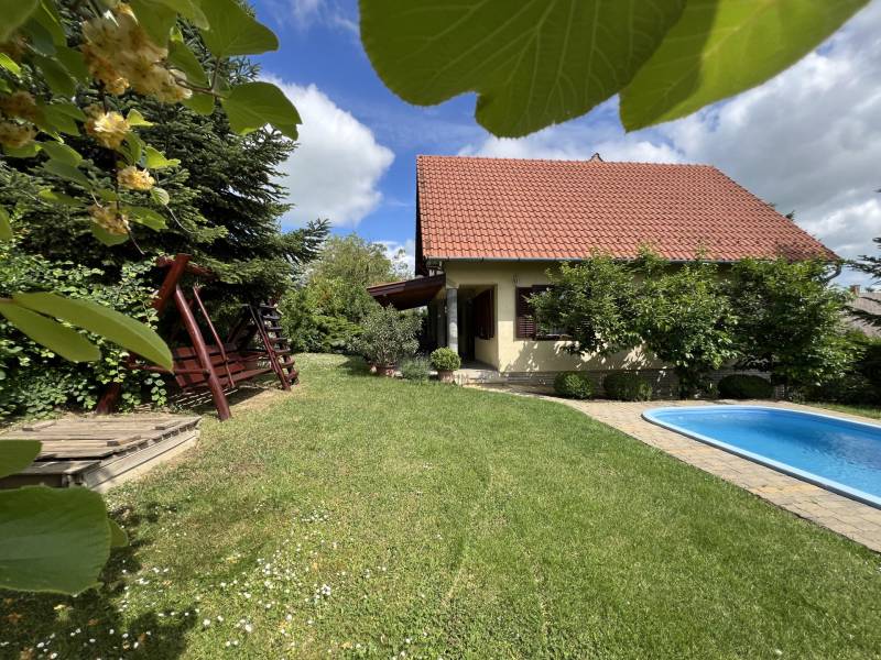A Balatontól mindössze 1500 méterre, Balatonföldvár nyugodt, ritkán beépített részén kínálunk megvételre egy valóban különleges adottságú, gondosan karbantartott, medencés családi házat. Az ingatlan jelenleg is jól működő vendégházként üzemel, ugyanakkor tökéletes választás lehet családi nyaralónak vagy akár állandó otthonnak is.Az ingatlan főbb paraméterei:Telek: 469 m², 23 méter széles utcafronttal, igényesen kialakított, gondozott kerttelFöldszint: 74 m² lakótér + 28 m² fedett terasz3 hálószobafürdőszoba WC-velvilágos, napfényes amerikai konyhás nappaliTetőtér: 64 m² (ca. 80%-os készültségi szint)3 hálószobanappalifürdőszoba, külön WC, közlekedőTájolás: délnyugati – egész nap világos, napfényes terekMűszaki és kényelmi felszereltség:Kerti medence, sütögető és külön szerszámtárolóKétrétegű fa nyílászárók, szúnyoghálóval felszerelveFűtés gázcirkó kazánnalIvóvíz közműről, valamint saját, bevizsgált fúrt kút ivóvíz-minőségű vízzel – ideális locsoláshoz és a medence üzemeltetéséhezElektromos hálózat földkábelen bevezetveMiért jó döntés ez az ingatlan? A ház ideális választás mindazok számára, akik csendes, természetközeli környezetben szeretnének pihenni vagy élni, mégis elérhető távolságban maradnának a Balatontól. A már bejáratott vendégházi működésnek köszönhetően az ingatlan akár azonnali bevételt is biztosíthat új tulajdonosának.A tágas, fedett terasz kiváló helyszíne baráti és családi összejöveteleknek, a gondozott kert és a medence pedig valódi nyaralóhangulatot teremt a mindennapokban.Ne szalassza el a lehetőséget!Tekintse meg személyesen, és tapasztalja meg, milyen érzés hazatérni ebbe a barátságos, sokoldalúan hasznosítható balatoni otthonba. |