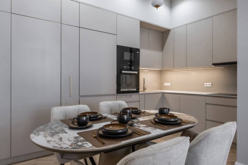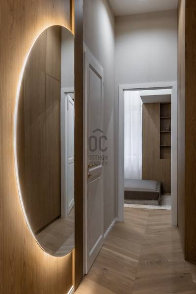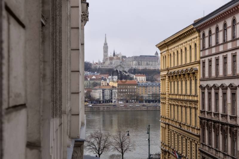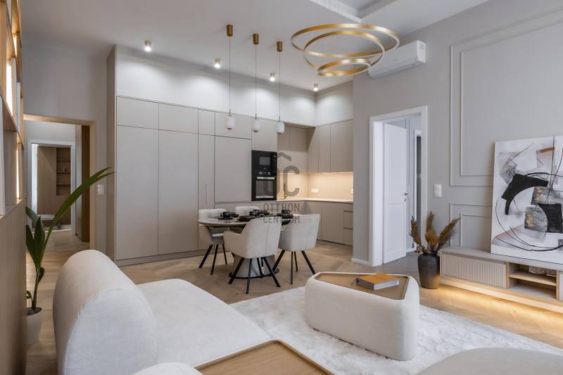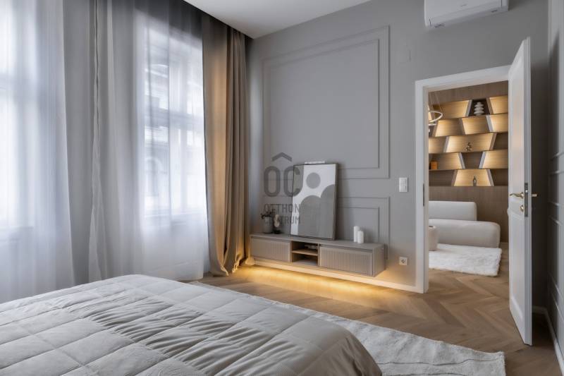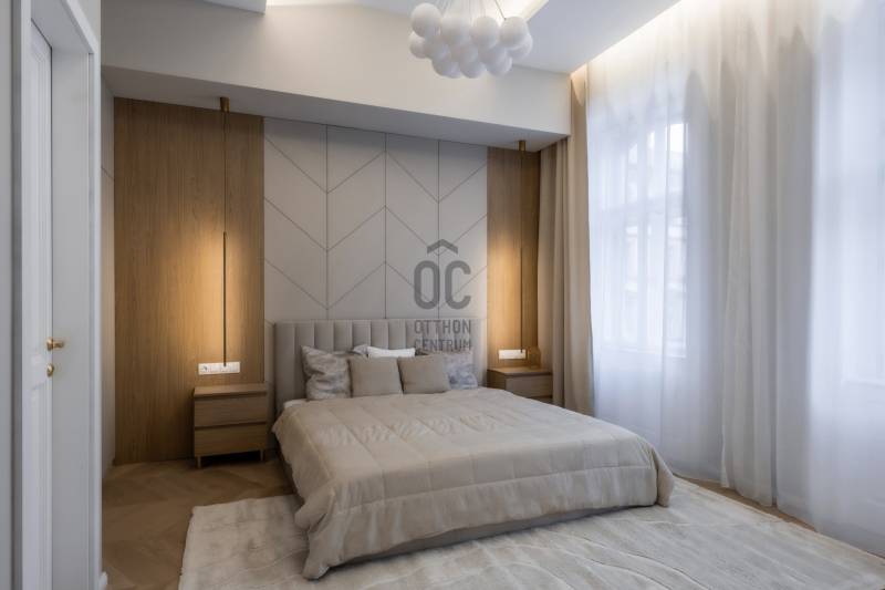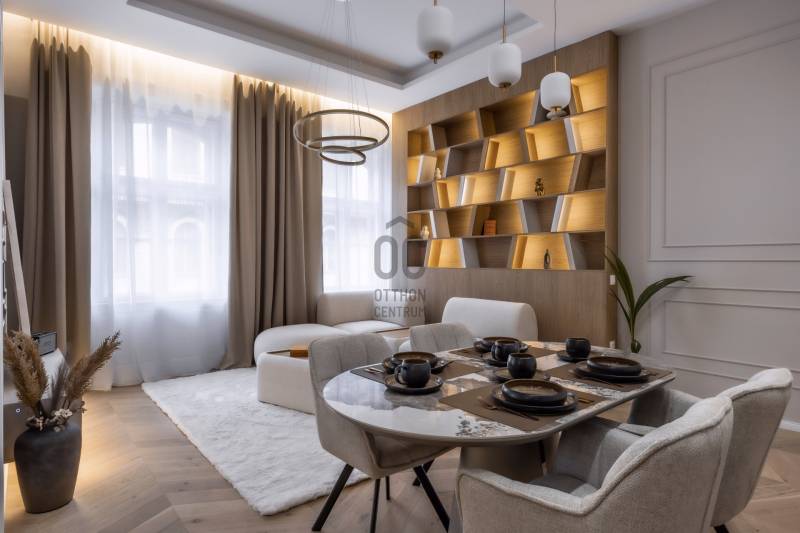 Exkluzív luxuslakás a Széchenyi utcábanÜDV ITTHON!RÖVID ÖSSZEFOGLALÓBudapest egyik legkiemelkedőbb lokációjában, az V. kerület szívében kínáljuk ezt a 69 négyzetméteres, teljeskörűen, prémium minőségben felújított és berendezett lakást. A liftes társasházban található ingatlan a 3. emeleten helyezkedik el, zárt lépcsőházból megközelíthető. A bejárat az Akadémia utcából nyílik, de a lakás ablakai a Széchenyi utcára néznek, ahonnan a Parlament ikonikus épülete tárul elénk. Két hálószobát, két fürdőszobát, amerikai konyhás nappalit és világos, jól használható tereket kínál a lakás, modern műszaki megoldásokkal kiegészítve. Az ingatlan egy karbantartott, karakteres saroképületben található, Lipótváros egyik legnívósabb részén.LOKÁCIÓ – INFRASTRUKTÚRA ÉS VÁROSI KULTÚRALipótváros ezen részén az infrastruktúra és a kulturális élet természetes egységet alkotnak. Historikus bérházak, rendezett utcák és jól működő városi struktúra jellemzi a környéket. A lakás közvetlen környezetében találhatóak a Parlament és a Kossuth Lajos tér, a Szabadság tér zöldfelületei, valamint a Duna-parti rakpart sétánya. Számtalan lehetőség van a kulturális kikapcsolódásra, a Vígszínház, az Operettszínház, a Thália Színház és a Nagymező utca színházi világa mind könnyen elérhetőek. A Szent István Bazilika környékét kávézók, éttermek, üzletek és találkozóhelyek teszik élővé, míg a közeli koncert- és zenei helyszínek tovább erősítik a városrész értelmiségi, művészeti hangulatát.Közlekedési szempontból a környék kiváló adottságokkal rendelkezik: elérhető az M2-es és M3-as metró, illetve számos buszjárat, amelyek gyors összeköttetést biztosítanak Pest és Buda irányába egyaránt. Ez az ingatlan nemcsak élhető teret, de stabil értéket képvisel – akár saját otthonként, akár befektetésként.ÉPÜLETKarakteres megjelenésű, klasszikus lipótvárosi sarokház, világos, visszafogottan elegáns tónusú, kőszínű homlokzattal. Az alsó szintek robusztusabb kőburkolata stabil alapot ad, míg a felsőbb szinteken a részletgazdag ablakkeretezés és párkányrendszer könnyedebb megjelenést biztosít. A kőkonzolokra ültetett erkélyek, az íves záródású nyílászárók és a finoman tagolt homlokzat nem hivalkodó, hanem csendes presztízst sugároz. Ez az a típusú épület, amely nem trendeket követ, hanem egy meghatározó korszak időtálló arányérzékét hordozza. A Széchenyi utca végén feltáruló parlamenti panoráma különleges városképi hátteret ad: ritka, ikonikus budapesti látvány, amely a mindennapok természetes részévé válik.LAKÁSA lakás belső kialakítását átgondolt alaprajz és logikus térkapcsolatok jellemzik. Nappali plusz két hálószobás elrendezésének köszönhetően világosan elkülönülnek a közösségi és a privát funkciók, miközben egységes, jól működő rendszert alkotnak. A nappali a lakás központi tere, amelyhez természetes módon kapcsolódik az étkező és az amerikai konyha. A nagyméretű nyílászárók és a lakás tájolása révén a tér egész nap világos, miközben a városi környezet is jelen van. Belső stílusát tekintve a lakás modern klasszikus, soft luxury irányba hangolva. A lakás egészében egységes, letisztult, visszafogott színvilág jelenik meg; törtfehér és világos bézs falfelületek, melyeket meleg tónusú, természetes fa elemek, valamint fekete és sötétbronz részletek tesznek különlegessé. Chevron mintás, 14 mm vastag fa halszálka parketta vezet végig a nappali–étkező–konyha hármas egységén, amely egyszerre klasszikus és kortárs, és melyhez jól passzol a modern, letisztult enteriőr. A nappali berendezése egyszerre nyújtja az otthonosság és kényelem, valamint a prémium minőség érzetét: a világos, neutrális alapszínekhez puha tapintású textilek és strukturált kárpitok társulnak. Az egyedileg készíttetett Ramaro – Piave típusú kanapé karakteres, központi elem a nappali térben. Ezzel egy légtérben találjuk az asztalos által gyártott, matt frontokkal, beépített Miele gépekkel ellátott, letisztult stílusú konyhát, amely összhangban van és harmonikus egységet képez a nappali egészével. HÁLÓSZOBÁK ÉS FÜRDŐKA két hálószoba méretében és funkciójában is jól elkülönül, így a lakás alkalmas családi használatra, de akár vendégek fogadására vagy reprezentatív városi otthonként is. Kifejezetten otthonos, nyugodt hangulatú helyiségek biztosítják a pihenést; a belső terekben bézs, homokszín, világos fa és visszafogott textilek dominálnak. A nagyobb hálószoba saját fürdőszobával rendelkezik, ami kényelmes használatot biztosít a mindennapokban. Mindkét fürdőszobában elegáns walk-in zuhanyzó található. A természetes kőhatású burkolatok, az egyedi asztalos bútorok és a gondosan megtervezett világítás időtálló, nyugodt atmoszférát teremtenek.MŰSZAKI TARTALOM ÉS ÖSSZKÉPTeljes körű felújításon esett át a lakás, melynek során a hangsúly a korszerű műszaki megoldásokon és az időtálló belső kialakításon volt. A lakás teljes területén padlófűtés gondoskodik az egyenletes hőérzetről, melyet minden helyiségben elérhető légkondicionálás egészít ki.Ez az otthon nem trendekre épít, hanem arányokra, anyagokra és hosszú távon is jól működő térszervezésre. Olyan belvárosi lakás, ahol a város közelsége inspiráló, a belső terek pedig valódi nyugalmat adnak. Ha olyan ingatlant keres, ahol az elhelyezkedés, az épület minősége és a belső terek harmóniája hosszú távon is értéket képvisel, érdemes személyesen is megtekintenie ezt a lakást.Összegzés & kapcsolatfelvételEz az ingatlan nem csupán egy felújított lakás, hanem egy 