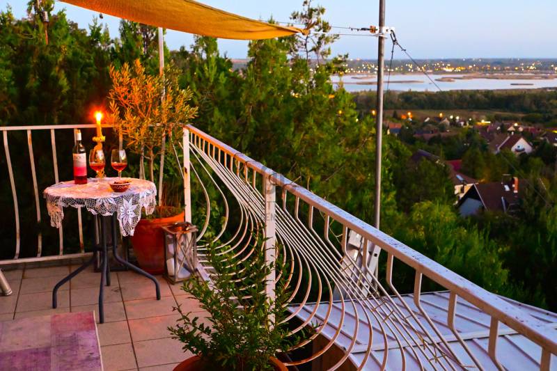 Panorámás ház óriási terasszal és mediterrán kerttel - Velencén, a Bence-hegyen, egy lakás áráért.Télen bekuckózni, nyáron a teraszon élni, egész évben csend, szemet-lelket nyugtató 180 fokos panoráma.A Velencei-tó közvetlen közelében, a festői Bence-hegyen kínálunk eladásra egy gyöngyszemet, második tulajdonostól. Építész család építette magának 1995-ben, majd 8 éve teljes felújítás-átalakítás történt, így nyerte el az ingatlan mai, egyedi formáját. Egész éves lakhatásra alkalmas, fűthető. Összközműves.A ház parádés kilátással rendelkezik a Velencei-tóra és a Velence-Sukoró közti völgy minden szegletére. A teraszon állva elmélázhatunk, hogy az egyes házakban milyen lehet élni, a kertjeikben milyen szép fák vannak, a szőlősorok hú, mennyi munkát adhatnak a művelőjüknek, vagy szemünket nyugtathatjuk a képet szegélyező erdősávon. Látjuk, de mégis diszkrét, érezzük, hogy távol vagyunk, fent, a magasban. És a tó... a csillanó vízzel, a nádszigetekkel, a vitorlásokkal...Az amerikai konyhás nappalihoz egy tágas terasz tartozik, mely nyári estéken a pihenést, felüdülést szolgálja, a többi évszakban pedig napfényes, kellemesen meleg a déli lejtőnek köszönhetően - még napozni is lehet télen!A felső lakószinten a hálószoba kapott helyet és egy kádas fürdőszoba. A szobához egy loggia kapcsolódik, ami csak fokozza a látványt, sőt, az ide tett szófán aludni olyasmi élmény lehet, amit a sziklamászók meg a szirti sasok élhetnek meg - természetesen teljes biztonságban, a legurulás veszélye nélkül.Az ingatlan főbb jellemzői címszavakban:- az utcaszinten fedett kocsibeálló- lefelé 66 lépcsőfok (felfelé is... fitten tart!)- mediterrán kert: levendula, rozmaring, fenyő... olajfa, leander, citromfa... és hozzá a kabócák éneke- két szintes lakótér- panoráma az ágyból is (nem túlzás!)- intim terek és teraszok belátás nélkül- belmagasság: 230 cm- legalul egy tároló- tervezett kert: pihenő- és nyugizóhelyek- rézsűs teraszosított telek tavaszi hagymásokkal, mediterrán növényzettel- elvonulásra alkalmas kerti terek jógázni, relaxálni, felhőt nézni- látkép a Velence és Sukoró közti völgyre, családi házas telkekre, balra a Velencei-tóra, jobbra a beépítési határ felett ívelő erdőre- autópálya kapcsolat: 7 percre (1,5 km)- csendesKözművek:- vezetékes víz- áram- gáz- csatorna (átemelővel a terep miatt, a szomszédos telekkel közös csatornavezetés szolgalmi joggal)További információkért és megtekintési időpontért hívjon bizalommal a hét bármely napján!Ha ingatlant szeretne eladni, abban is együttműködöm Önnel.Amennyiben hitelre van szüksége, az Otthon Centrum az ország egyik legnagyobb és legmegbízhatóbb hitelközvetítőjeként, teljes körű és díjmentes hitel ügyintézéssel áll rendelkezésére.Kérje személyre szabott ajánlatunkat!iVelence, panoráma, mediterrán, ház, csend, eladóEz az ingatlan a \"Felező csomag\" megbízási portfólióhoz tartozik. Részletek az Otthon Centrum weboldalán. |