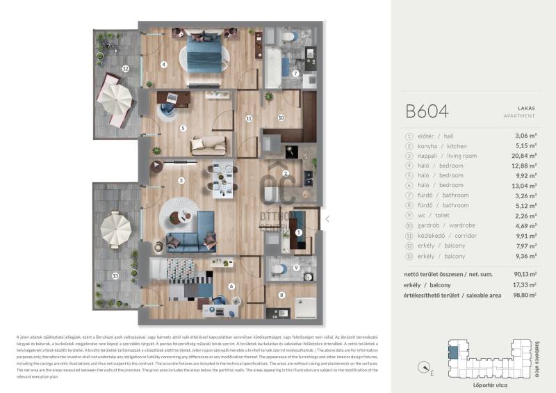 Projekt bemutatásaA kiváló elhelyezkedésű WestGate 4 lakópark a Dózsa György úttól és a Lehel úttól pár lépésre található, így a Belváros könnyedén megközelíthető autóval és tömegközlekedéssel egyaránt. A 4 ütemben épülő lakóparkban összesen közel 1000 lakás kerül megépítésre, melyből az első három ütem elkészültével több mint 700 lakás átadása már megtörtént.2-3-4 szobás lakástípusok elérhetőek, a csendes belső kertre néző családi otthontól a kisvárosias utcára néző lakáson keresztül az indusztriális-városi panorámát kedvelőkig mindenki megtalálhatja a hozzá illő ingatlant.A jelenleg legkorszerűbb hőszivattyús rendszer lehetővé teszi az otthonok energiatakarékos fenntarthatóságát. Lakásonként hőmennyiségméréssel ellátott felület fűtés-hűtés kerül kialakításra, interneten keresztül távolról elérhető és programozható, valamint kézi hőmérsékletállítási lehetőséggel,rejtett gépészeti vezetékekkel.A lakásokba okosotthon rendszer kerül beépítésre. Az okosotthon rendszer biztosítja a lakások magasabb szintű és hatékony üzemeltetését. A Vevőneklehetősége van három, különböző típusú okosotthon rendszer (alapcsomag) közül választani, amelyek egyike sem eredményezi a lakások vételárának növekedését.Igény esetén felár ellenében lehetőség van beépített bútorok megrendelésére is.A lakásokhoz mélygarázsban biztosított parkoló vásárolható, illetve emeleti tárolók is leköthetők.Extrák az épületben: közösségi nappali, könyvtár, közösségi autó, fészer és csomagpont valamint az összes lakás okosotthon-rendszerrel allátva kerül átadásra.Rohamosan fejlődő környék, remek befektetés!Fizetési ütemezés:10% - szerződéskötéskor90% - átadáskor (használatbavételi engedélyt követően)Várható átadás: 2027.12.31.