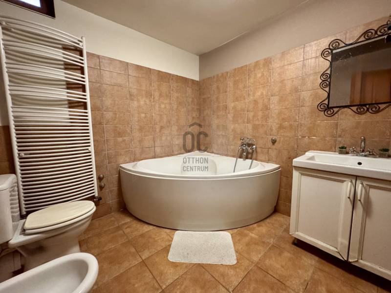 Őrbottyán rohamosan fejlődő, falusias bájú település az északi agglomerációban, Fővárosunktól mindössze 30 km-re a Gödöllői dombság vonulatában.Kiváló közlekedése, jó levegője és infrastruktúrája vonzza a kertbe vágyó családokat, mégsem építették túl, így megmaradt csendes kertvárosnak, ahol érdemes családot alapítani, hiszen a környezet gyönyörű, a hétköznapokból szabadulva a nyugalom szigete várja a hazatérőket. Horgásztavak, zöld lankák, mezőgazdasági területek és erdők ölelik körbe a bűbájos települést, így Mindenkinek tud olyat nyújtani, amire igazán vágyik amikor az otthonára gondol.Itt, az egyik legkedveltebb részen, a panoráma szerelmeseinek utcájában került eladósorba egy UNIKÁLIS CSALÁDI HÁZ.Csendes, átmenőforgalomtól mentes kis utcában, tulipános előkertek és útrahajló gyümölcsfák szomszédságában kapott helyet, Az épület fiatal, 2008-as építésű, Tulajdonosai EGYEDI TERVEK ALAPJÁN SAJÁT RÉSZRE ÉPÍTETTÉK, így magas minőségbeli elvárásaikból, kényelmes és egyedi Otthon született..Az épület nem hivalkodó, csak kerten belülről sejlik fel a robosztus terméskővel fedett homlokzat, és a teraszra érve látszik a Hármashatár-hegyig nyíló zavartalan örökpanoráma.Egyedi formavilága tökéletesen követi a telek adottságait, észrevétlenül simul a zöldbe és önti páratlan köntösbe a funkciót.2 generációs kialakítású, így a szintek külön is használhatóak, de belső lépcsőház is rendelkezésre áll, így ideális nagycsaládos otthon. -1.szint: konyha-étkező, közlekedőfolyosó, zuhanyzó+WC, nagy fürdőszoba káddal, WC+bidével, gépház/háztartási helyiség, 3 hálószoba, nagy fedett terasz-2.szint: tároló, kényelmes előszoba, kádas fürdőszoba +WC, konyha-étkező, tágas nappali, hálószoba, fedett terasz Kényelmes, tágas terek, igényes burkolatok, teljesértékű hálószobák (mindegyik teraszkapcsolatos!) és rendkívül kellemes élettér jellemzi a házat, az ablakok hatalmasak és az egészséges beállt növényzetnek köszönhetően az érzet olyan, mintha a zöld körbeölelné a bent lakót!Műszakilag is korszerű, 38pth homlokzati falak 10cm dryvit palástba bújtatva , cserépfedett tető, szigetelt födém (20cm), egyedileg gyártatott thermoüveges fa nyílászárók, 3éves kondenzációs kazán biztosítja a hőszabályozást, klímaegység 3.6kW, 3fázis, kiépített riasztórendszer.NAPELEM: Éves szaldós elszámolás, 14db panel, 17.25kW tökéletesen ellátja a háztartást, bővíteni is lehet és elektromos autótöltővel kiegészíteni!Fenntartási költsége elenyésző az alapterületre vetítve, a TELJES REZSIKÖLTSÉG TÉLI IDŐSZAKBAN SEM HALADJA MEG A 40e Ft-OT!1326m2-es egészséges méretű kertje kényelmes elosztású, szekciókra osztva használja ki a teleklejtést, így pihenésre és kikapcsolódásra ugyanúgy jut hely, mint konyhakert telepítésre, grillterasz létesítésre és még mindig marad terület kerti játszótérnek, medencének. A ház elé terebélyesedő tekintélyes ősfenyők bástyaként védik a házat és keretezik a panorámát.Jöjjön el, ha valami különlegesre vágyik, ha egyedi Otthont álmodott Családjának egy tüneményes agglomerációs településen a Főváros közelében! Ideális választás nagycsaládosoknak, nagyszülővel vagy felnőtt korú gyermekkel költözőknek és azoknak akiknek fontos a ZÖLD KÖRNYEZET, a jó méretű kert és mindaz a csend és nyugalom mely ezekkel jár!-ALALPRAJZ FELTÖLTÉSE FOLYAMATBAN-- |