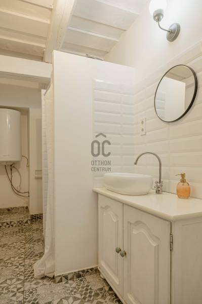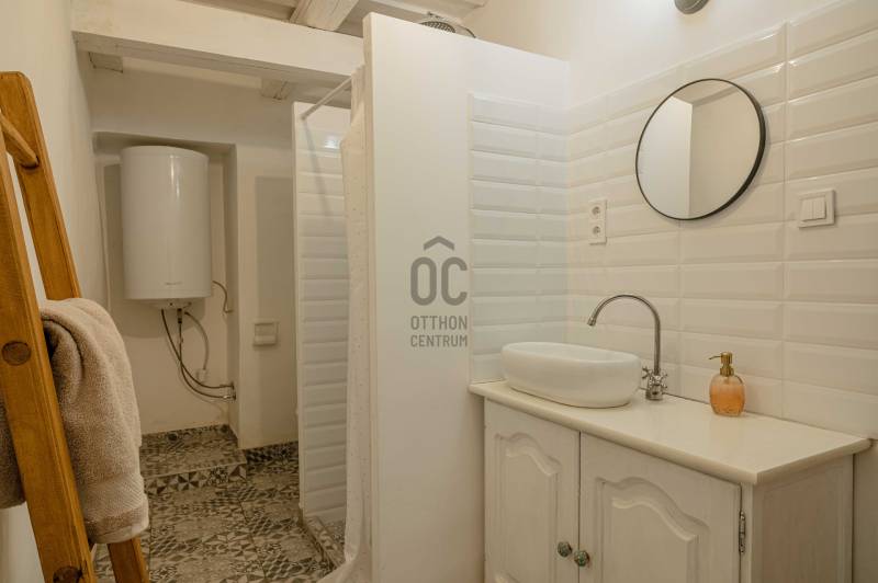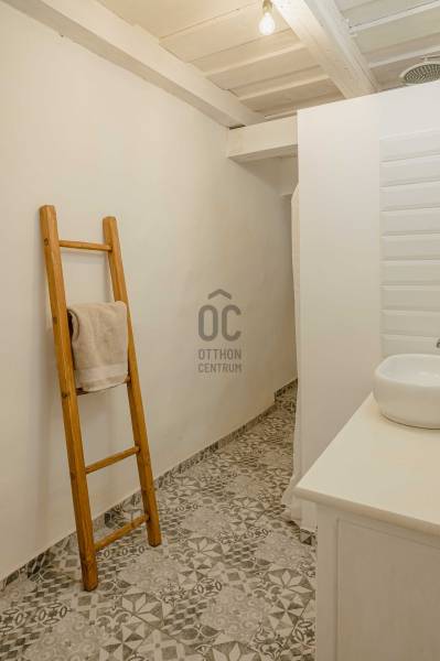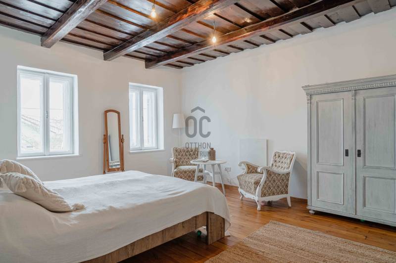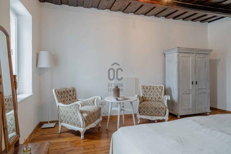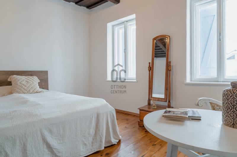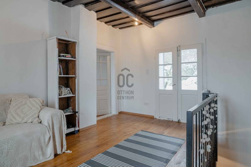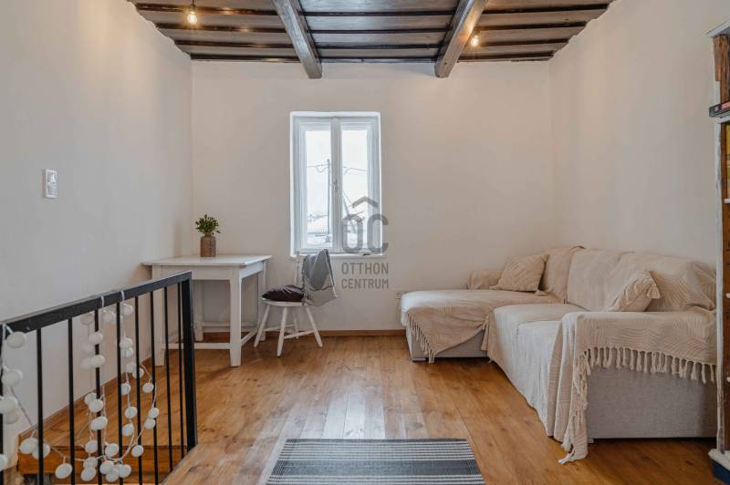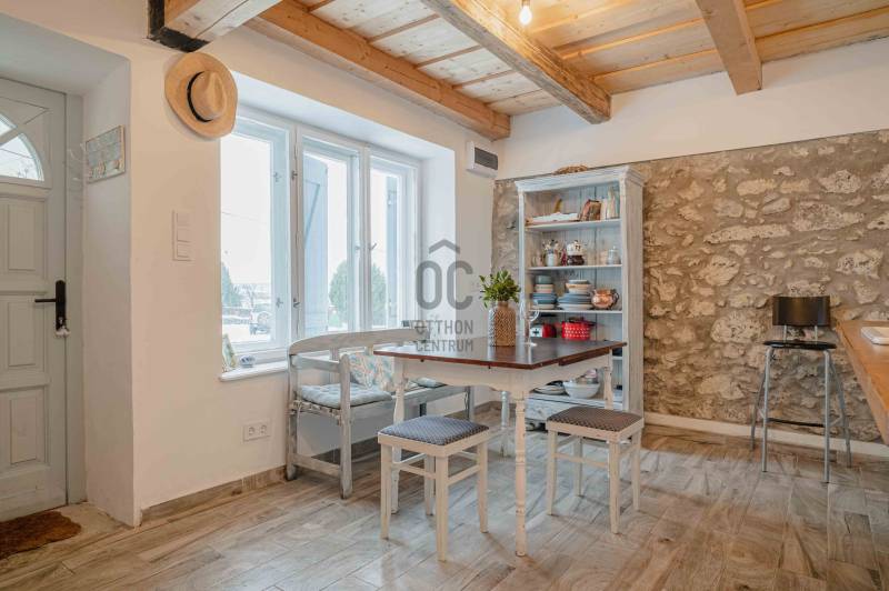 A Balaton-felvidék egyik legbájosabb, dombokkal ölelt településén, a Művészetek Völgyének közvetlen közelében, kínálunk megvételre egy különleges hangulatú, emeletes kőházat, amely a vidéki nyugalmat és a modern komfortot tökéletes harmóniában ötvözi.Az ingatlan állami támogatású 3% Otthon Start hitelre és falusi CSOK -ra is alkalmas! A részletekért keressen telefonon! Főbb jellemzők:- Hasznos alapterület: 75 m²- Telek mérete: 804 m²Helyiségek: - 3 szoba - konyha–étkező - nappali kandallóval - modern, hangulatos fürdőszoba tusolóval - 2 kényelmes hálószoba az emeletenMűszaki állapot:Az ingatlan teljes körű belső felújításon esett át:- megújult tetőszerkezet- új fagerendás födém- felújított víz- és elektromos hálózat- igényes burkolatok, világos, letisztult belső terek- fűtése kandallóval és infra fűtőpanelekkel megoldott (gázfűtés kialakítható)- a melegvizet villanybojler biztosítjaA külső nyílászárók eredeti fa ablakok, amelyek megőrizték a ház autentikus karakterét (nem hőszigeteltek).Kert és környezet:A 805 m²-es, gondozott telek gyümölcsfákkal beültetett, kiválóan alkalmas pihenésre, kertészkedésre vagy vendégek fogadására.Hátsó kijárat az emeletről a kertbe és a pihenő teraszra. A ház központi elhelyezkedésű, bolt és buszmegálló néhány perc sétára elérhető.Lokáció:- a Balaton-felvidék második vonalában, csendes, hangulatos faluban- a Művészetek Völgye rendezvényei és kulturális élete karnyújtásnyira- ideális választás nyaralónak, állandó lakhatásra vagy vendégház működtetésére (engedéllyel rendelkezik).Ez az ingatlan nem csupán egy ház, hanem egy életérzés – tökéletes választás mindazoknak, akik a természet közelségét, a vidéki eleganciát és a befektetési lehetőséget egyszerre keresik.Amennyiben bármi kérdése van az ingatlannal kapcsolatban vagy szeretné megtekinteni keressen az alábbi elérhetőségek egyikén. Az alaprajz tájékoztató jellegű.Ez az ingatlan a \"Felező csomag\" megbízási portfólióhoz tartozik. Részletek az Otthon Centrum weboldalán. |