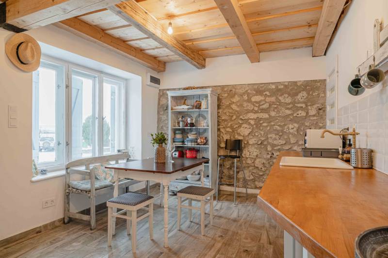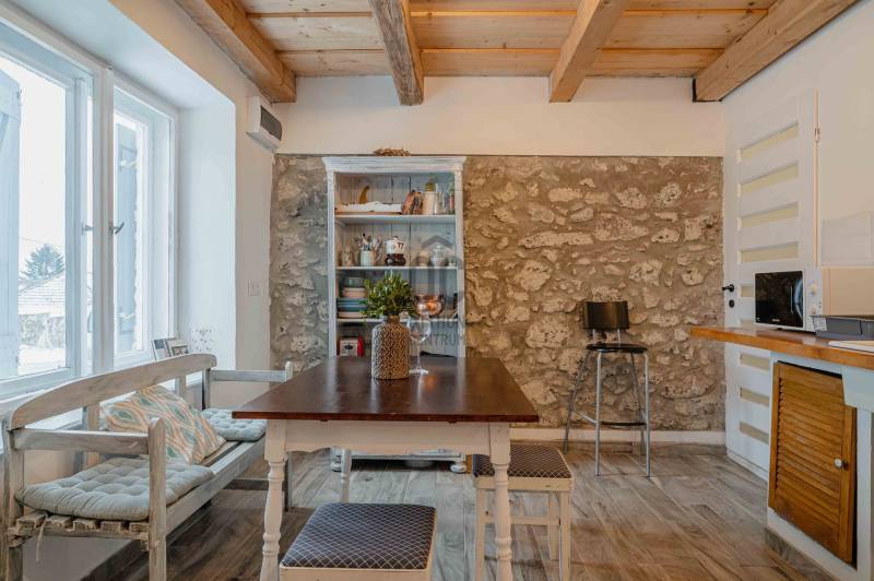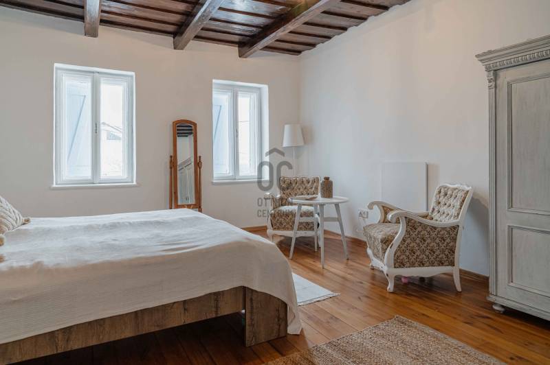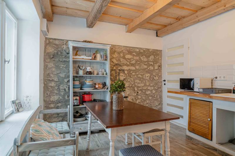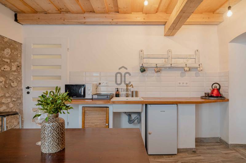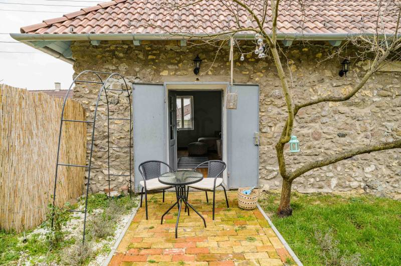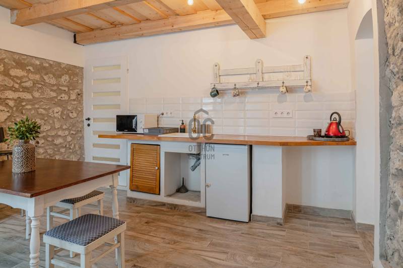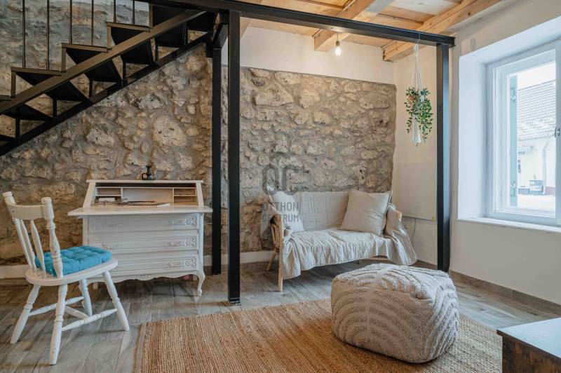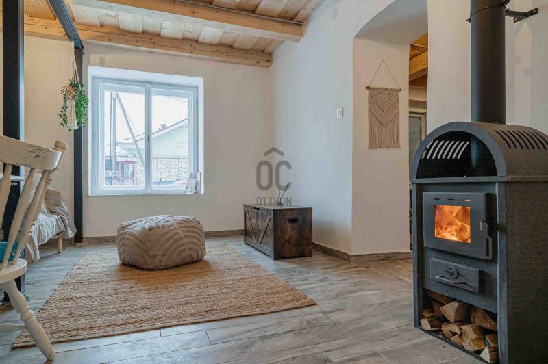 A Balaton-felvidék egyik legbájosabb, dombokkal ölelt településén, a Művészetek Völgyének közvetlen közelében, kínálunk megvételre egy különleges hangulatú, emeletes kőházat, amely a vidéki nyugalmat és a modern komfortot tökéletes harmóniában ötvözi.Az ingatlan állami támogatású 3% Otthon Start hitelre és falusi CSOK -ra is alkalmas! A részletekért keressen telefonon! Főbb jellemzők:- Hasznos alapterület: 75 m²- Telek mérete: 804 m²Helyiségek: - 3 szoba - konyha–étkező - nappali kandallóval - modern, hangulatos fürdőszoba tusolóval - 2 kényelmes hálószoba az emeletenMűszaki állapot:Az ingatlan teljes körű belső felújításon esett át:- megújult tetőszerkezet- új fagerendás födém- felújított víz- és elektromos hálózat- igényes burkolatok, világos, letisztult belső terek- fűtése kandallóval és infra fűtőpanelekkel megoldott (gázfűtés kialakítható)- a melegvizet villanybojler biztosítjaA külső nyílászárók eredeti fa ablakok, amelyek megőrizték a ház autentikus karakterét (nem hőszigeteltek).Kert és környezet:A 805 m²-es, gondozott telek gyümölcsfákkal beültetett, kiválóan alkalmas pihenésre, kertészkedésre vagy vendégek fogadására.Hátsó kijárat az emeletről a kertbe és a pihenő teraszra. A ház központi elhelyezkedésű, bolt és buszmegálló néhány perc sétára elérhető.Lokáció:- a Balaton-felvidék második vonalában, csendes, hangulatos faluban- a Művészetek Völgye rendezvényei és kulturális élete karnyújtásnyira- ideális választás nyaralónak, állandó lakhatásra vagy vendégház működtetésére (engedéllyel rendelkezik).Ez az ingatlan nem csupán egy ház, hanem egy életérzés – tökéletes választás mindazoknak, akik a természet közelségét, a vidéki eleganciát és a befektetési lehetőséget egyszerre keresik.Amennyiben bármi kérdése van az ingatlannal kapcsolatban vagy szeretné megtekinteni keressen az alábbi elérhetőségek egyikén. Az alaprajz tájékoztató jellegű.Ez az ingatlan a \"Felező csomag\" megbízási portfólióhoz tartozik. Részletek az Otthon Centrum weboldalán. |