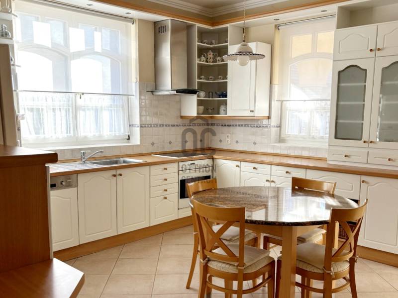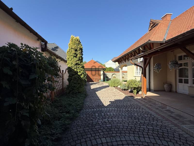 Baján, rendezett, családi házas övezetben, a város főterétől mindössze pár percnyi sétára kínálunk megvételre egy 543 nm-es telken, 1997-ben, saját részre épült, magas műszaki tartalommal és kimagasló minőségben kivitelezett családi házat.Az ingatlan Ytong falazattal, betongerendás, béléstestes födémmel, valamint hódfarkú cserépfedéssel épült. A külső és belső nyílászárók egyedi tervezésűek: a homlokzati fa ablakok kétrétegű üvegezéssel, a belső ajtók pedig tömör fából, ólomüvegezéssel készültek.A 188 nm-es lakótér rendkívül jól átgondolt elrendezésű:három külön nyíló hálószoba, intarziás parkettával burkolt nappali, étkező, teraszkapcsolatos konyha, bútorozott kamra, mosókonyha kényelmes padlásfeljáróval, valamint egy tágas fürdőszoba (zuhanyzóval, masszázsfunkciós sarokkáddal, WC-vel és bidével), továbbá egy külön WC–kézmosó kapott helyet.A fűtést kombi gázkazán biztosítja padlófűtéssel és lapradiátorokkal, kiegészítve egy fatüzelésű cserépkályhával. A hálószobák radiátoros fűtésűek és padlószőnyeggel burkoltak, a többi helyiség kerámialapos, padlófűtéses. A meleg vizet két villanybojler, a komfortot pedig nagy teljesítményű klímaberendezés és riasztórendszer szolgálja. Az ingatlan összközműves, 3×20 A elektromos kapacitással rendelkezik.A ház alatt egy 90 nm-es, angolaknás, szigetelt pince található, több tárolóval és külön konyhával – kiváló lehetőség hobby-, vendég- vagy akár vállalkozási célokra is.A gondozott kertben fedett autóbeálló és garázs (külön-külön egy autó számára), pázsitos udvar, díszkert, hangulatvilágítás, kerti csap, bográcsozó, és a kikapcsolódáshoz két fedett terasz került kialakításra.A környék rendezett, ingyenes parkolással és kiváló megközelíthetőséggel. A környéken minden fontos intézmény és szolgáltatás rövid sétatávolságon belül elérhető: üzletek, hivatalok, iskola, orvosi rendelő, patika, éttermek, kávézók...Az ingatlan tehermentes, térképészetileg rendezett és rövid határidővel birtokba vehető.A bútorzat külön megállapodás tárgyát képezheti.Ez az otthon ideális választás mindazok számára, akik minőségi kivitelezésű, időtálló, belvárosközeli családi házat keresnek nyugodt környezetben.Megtekintésért és további információért keressen bizalommal! |
