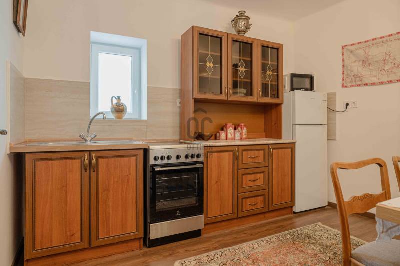 Van egy ház Monostorapátiban, amelynek falai már az 1920-as évek óta őrzik a vidéki élet nyugalmát. Vastag kőfalai, terméskő alapja és a parasztgerendás, stukatúros mennyezet alatt generációk történetei suttognak – ma pedig egy igényesen, teljes körűen felújított, modern komfortot nyújtó otthonként, illetve kiváló befektetési lehetőségként született újjá.Két önálló lakóegység – rugalmas hasznosítás!Az összesen 144 m² hasznos alapterületű ingatlan két, külön bejáratú és külön is hasznosítható lakórészt kínál:Lakóház (73,4 m², egy szinten): - 2 tágas szoba, konyha-étkező, fürdőszoba, külön WC és háztartási helyiségMelléképületből kialakított lakóegység (70,7 m², két szinten): - Alsó szinten konyha-étkező és fürdő-WC, a tetőtérben pedig egy panorámás, világos nappali, amely tökéletes élettér vagy vendégtérTelek mérete: 1125m2Ez az elrendezés ideálissá teszi állandó lakhatásra, nyaralónak, többgenerációs otthonnak vagy apartmanos hasznosításra is.2025-ös teljes körű felújítás – kompromisszumok nélkülA felújítás során nemcsak a látható, hanem a műszaki tartalom is megújult:- Teljes víz-, csatorna- és villanyhálózat csere (3×16A)- Új nyílászárók (ablakok és ajtók)- Betonig visszabontott aljzat, padlopon, minden helyiség egy szintben- Minőségi, magas kopásállóságú padlóburkolatok- Új fürdőszobák, épített zuhanyzók, új szaniterek- A lakóházban 2 db mobil cserépkályha és 1db vaskályha, a melléképület tetőterében klíma előkészítés- Épületenként új villanybojler a meleg vízhez- Külső vízszigetelés dörken lemezzel, friss nemesvakolat- Hőszigetelt, cserépfedéses tetőszerkezet a melléképület felettA végeredmény: hagyományos megjelenés, modern műszaki színvonal, hosszú távra tervezve.Udvar, kert, élhető terekAz egykori pajta udvar felé nyitott része ma hangulatos, fedett térként szolgálhat – ideális kerti grillezésekhez, Jacuzzinak, szaunának, baráti estékhez vagy vendégfogadáshoz.Az ingatlan mellett 2 autó számára térkövezett, zárható parkoló került kialakításra.A széles, enyhén lejtős kertben egy impozáns körtefa áll, az utca felőli részt pedig több mint 30 m³ földdel töltötték fel, így egy gondozott, élhető kert könnyedén kialakítható.Monostorapáti – befektetési aranybánya a Művészetek VölgyébenMonostorapáti a Művészetek Völgye egyik meghatározó települése, ahol minden nyáron több ezer látogató fordul meg. A kulturális rendezvénysorozat évről évre növeli a rövid távú szálláshelyek iránti keresletet, miközben a falu megőrzi nyugalmát és autentikus hangulatát.Ez az ingatlan azonnal hasznosítható vendégházként vagy apartmanként, kiváló hozampotenciállal – mindezt kiemelkedően jó ár-érték arány mellett.ÖsszegzésEz nem csupán egy felújított parasztház, hanem egy történettel bíró, jövő biztos befektetés a Balaton-felvidék egyik legkeresettebb kulturális térségében.Ha olyan ingatlant keres, ahol a múlt értékei és a jelen igényei harmonikusan találkoznak, Monostorapátiban megtalálta.Az alaprajz tájékoztató jellegű. |