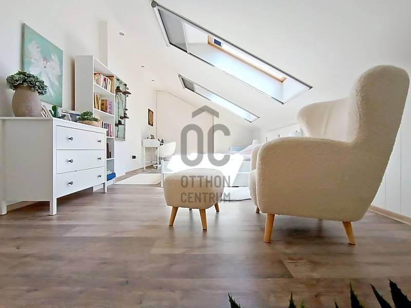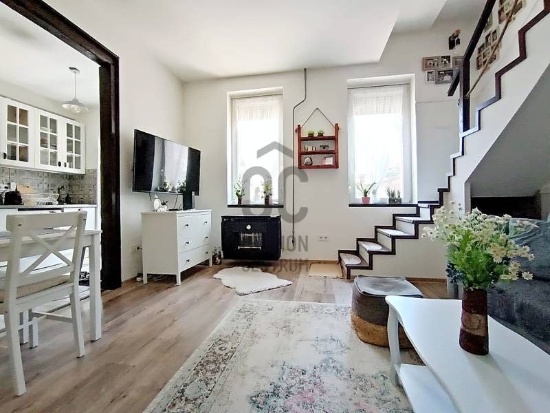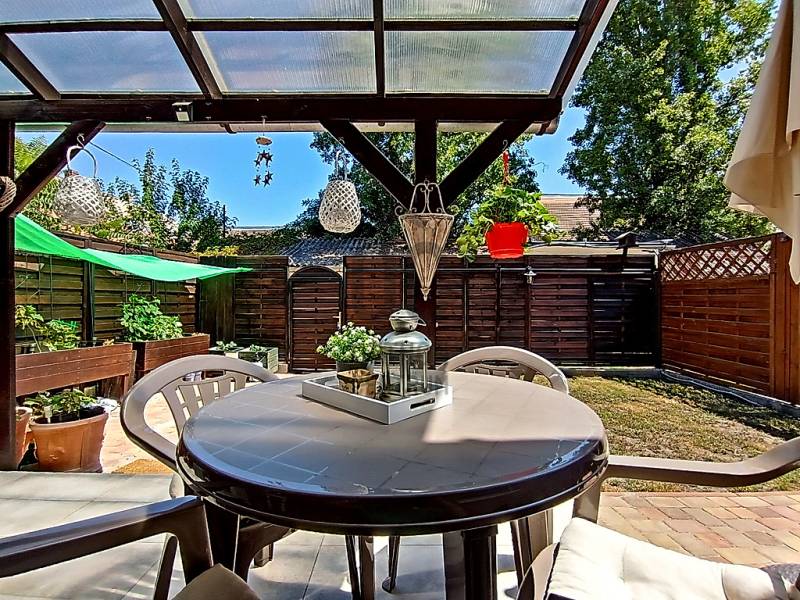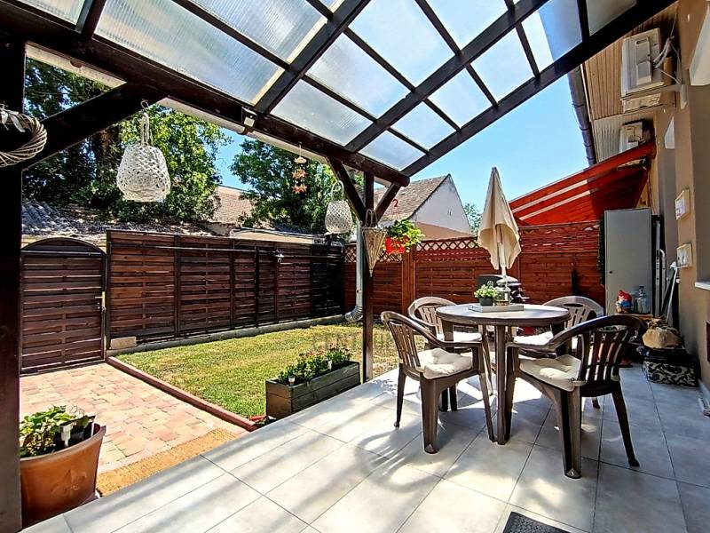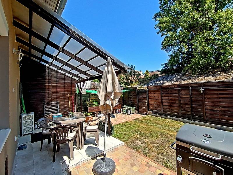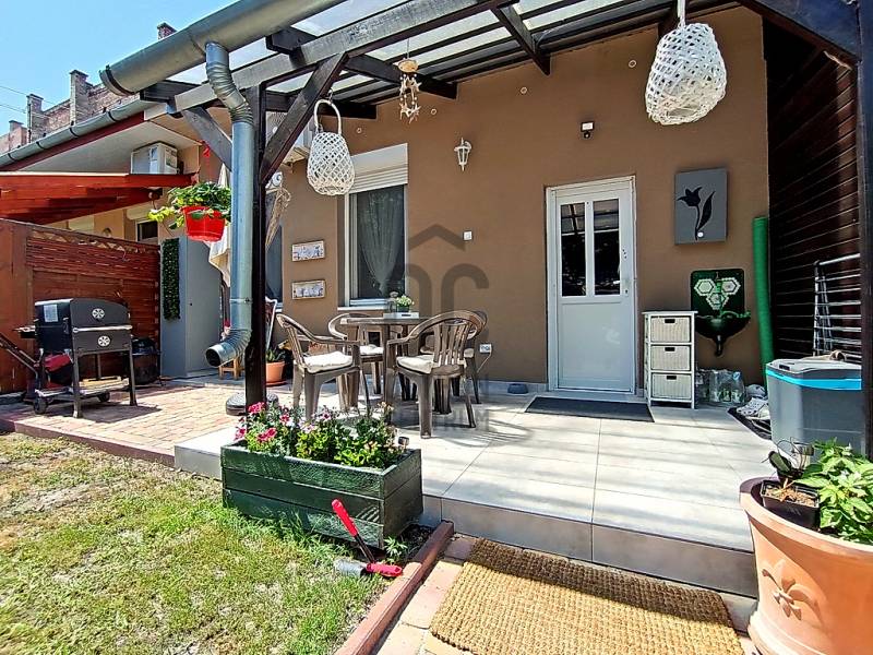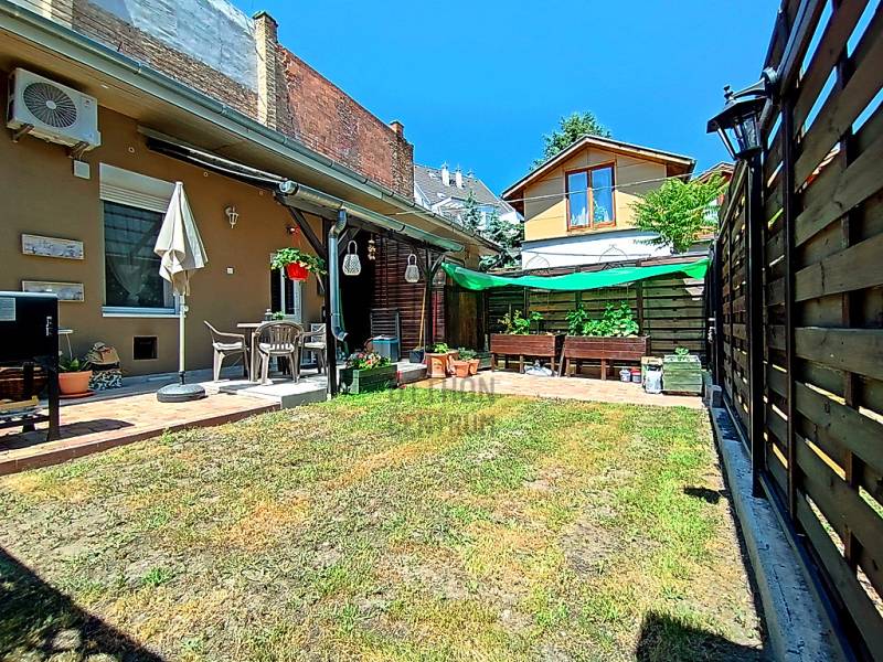 EGY REGGELI KÁVÉZÁS / EGY KELLEMES EBÉD / EGY KIS DÉLUTÁNI SZIESZTA / EGY MEGHITT, GYERTYAFÉNYES VACSORA / EGY SÜTÖGETŐS GRILL PARTY A CSALÁDDAL, BARÁTOKKAL A TERASZON…??? VAGY ESETLEG EGY KIS PIHENÉS / NAPOZÁS / MEDENCÉZÉS / KERTÉSZKEDÉS A TELJESEN LEVÁLASZTOTT, KIZÁRÓLAGOS HASZNÁLATÚ SAJÁT UDVARON ??? ÉS MIND EZ EGY CSENDES, NYUGODT KERTVÁROSI KÖRNYEZETBEN LÉVŐ, KÍVÜL-BELÜL ESZTÉTIKAILAG ÉS MŰSZAKILAG IS TELJES KÖRŰEN FELÚJÍTOTT / ÚJJÁVARÁZSOLT - A VÉTELÁRBAN BENNE LÉVŐ (!!!) VINTAGE STÍLUSBAN GYÖNYÖRŰEN ÉS LUXUS SZÍNVONALON TELJES KÖRŰEN LAKBERENDEZETT ÉS BEGÉPESÍTETT - BELSŐ KÉTSZINTES (DUPLEX) TÁRSASHÁZI LAKÁSSAL A HÁTTÉRBEN... HIGGYE EL, HOGY EZ EGYÁLTALÁN NEM LEHETETLEN !!! :) HA MINDIG IS ERRE AZ ÉLETÉRZÉSRE VÁGYOTT, AKKOR NE IS KERESGÉLJEN / NÉZELŐDJÖN TOVÁBB, MERT SZERINTEM BIZTOS, HOGY MEGTALÁLTA !!! :) IV., Újpest kertvárosi részén - a városközponttól is mindösszesen csak 2-3 perc sétatávolságra - a Lőrinc utcában kínálok eladásra egy kis létszámú, kulturált (csendes, barátságos, segítőkész) lakóközösséggel büszkélkedő, tégla építésű társasházban lévő, a mai kor minden igényét és kényelmét maximálisan szem előtt tartva kialakított, luxus színvonalon lakberendezett (bútorozott és gépesített), 10 cm vastagságú külső (dryvit) hőszigeteléssel és egy nagyon energiatakarékos hűtő-fűtő klímaberendezéssel is tovább komfortosított / rezsicsökkentett, nagyon minőségi anyagokkal és nagyon extra kivitelezéssel, esztétikailag és műszakilag is teljes körűen, 2021-ben felújított és azóta is újszerű / kifogástalan állapotban lévő, keleti tájolású, közvetlen napsütötte (rendkívül világos), az előtte lévő 14 m2 nagyságú, részben - fényáteresztő, UV szűrős polikarbonát tetővel – fedett, fagyálló járólappal burkolt teraszára és a további kb. 40-45 m2 nagyságú, saját, kizárólagos használatú, teljes mértékben elszeparált zöld kertjére / térkövezett járdás udvarára panorámás - a földhivatali bejegyzés / tulajdoni lap szerint 34 m2 alapterülettel - de az ingatlan belső kétszintessé történő átépítésének / átalakításának, a tetőtér teljes körű beépítéséből kifolyólag kapott plusz 26 m2-nyi lakóterületnek köszönhetően, a valóságban és használhatóságában is már 60 m2-es (!!!) alapterülettel büszkélkedő, kiváló helyiség elosztással rendelkező, az alsó (34 m2-es) lakószinten, a lakás központi szerepét betöltő - teljesen bútorozott és begépesített (munkalapba épített 4 zónás gázfőzőlap + külön beépített elektromos sütő, mikrohullámú sütő, kürtős pára-, és szagelszívó berendezés, beépített mosogatógép és automata mosógép, fagyasztós hűtőszekrény) amerikai konyhás - 4-6 személy számára egy kényelmes étkezőt és a felső lakószintre felvezető lépcsőházat is magába foglaló - nappalinak, a bejáratnál praktikusan kialakított előszobának és nem utolsósorban egy nagyon esztétikus / megfelelő méretű - a WC-t is magában foglaló - épített zuhanyzós fürdőszobának, valamint a felső (26 m2-es) „tetőtéri” lakószinten pedig egy légtérben kialakított, hihetetlenül tágas / kényelmes és hatalmas hálószobának / dolgozószobának / olvasósaroknak / pihenőrésznek is otthont adó öröklakást, amelyhez még egy önálló, zárható, porszáraz, kb. 5-6 m2 alapterületű, téglaépítésű udvari tároló is hozzá tartozik !!! :)Az ingatlant mind műszaki, mind esztétikai, valamint belső építészeti szempontból is a lehető legmodernebb és legmagasabb minőségű anyagokat és megoldásokat tartalmazza (csak a teljesség igénye nélkül...)- a bukó-nyíló, hőszigeteléssel és több légkamrás üvegezéssel ellátott, nagy méretű ablakai műanyag redőnnyel felszereltek,- a biztonsági zárral és üvegbetétekkel gazdagon ellátott (nagyon fényáteresztő), esztétikus és modern, időjárás álló, műanyag külső burkolattal védett, de belül acélbetétes megoldással bíró bejárati ajtót építettek be,- az egész ingatlanban lévő fűtést 1 darab - a nappali egyik ablaka alá szerelt - parapet kivezetéses, FÉG Zeusz típusú “látványkandallós kivitelezésű\" modern, nagy hatásfokú gázkonvektor biztosítja - amely maximális hatékonysággal, minimális fogyasztás mellett biztosítja a kellemes hőérzetet, így téve szinte láthatatlanná a téli napok fűtésköltségét :)- a forró nyári napok ellensúlyozására, a tetőtéri lakószint plusz hűtésére és egyben fűtésére is szolgáló, valamint a lakás komfortfokozatának a tovább növelésének érdekében is, a tetőtéri lakószintre felvezető „lépcsőházi részen” egy nagyon energiatakarékos klímaberendezés került felszerelésre,- a lakás különleges és egyedi melegségét / otthonosságát meghatározó belső-, és a hangulatvilágításokat is a legmodernebb, főleg meleg színhőmérsékletű (sárga fényű) LED izzószálas (energiatakarékos), dízájn lámpatestekkel oldották meg,- a szoba és a tetőtéri lakószint padlóját magas minőségű és kopásállóságú laminált parkettával, a lakás többi helyiségének padlóját pedig, szintén nagy kopás állóságú és magas minőségű járólappal burkolták,- a gondosan kiválasztott fali burkolatoknak sikerült otthonossá tennie / tovább emelnie a lakás hangulatát,- a minőségi konyhabútort egy munkalapba épített 4 zónás gázfőzőlappal, egy külön beépített elektromos sütővel, egy kürtős (külső kivezetésű) pára-, és szagelszívó berendezéssel és egy a konyhai vízrendszerbe bekötött mosogatógéppel, valamint (a fürdőszobai helymegtakarítás érdekében pedig…) egy automata mosógéppel varázsoltak teljes értékűvé,- a kellemesen haszná