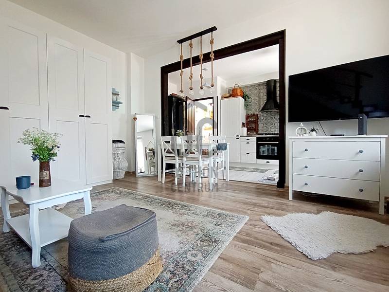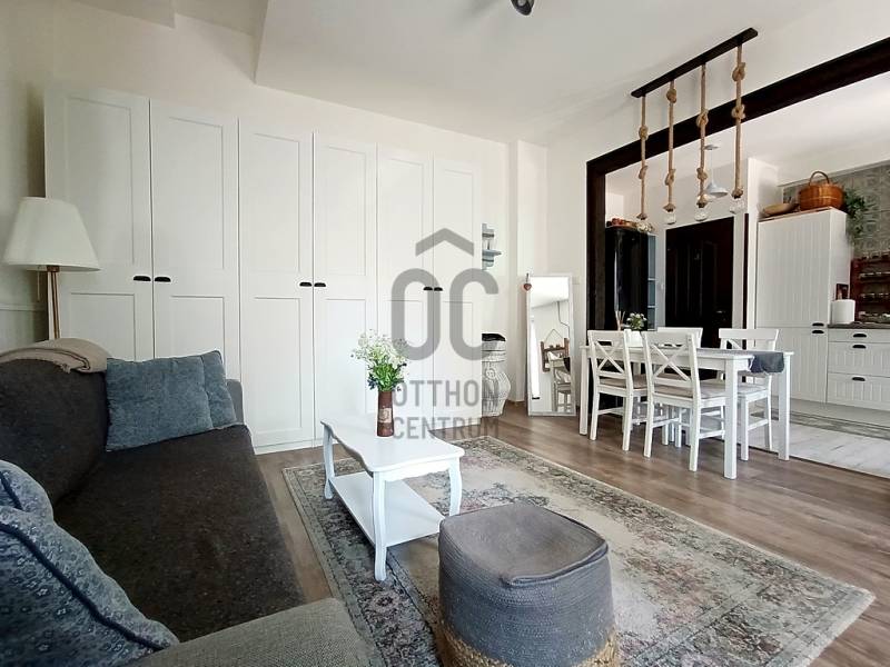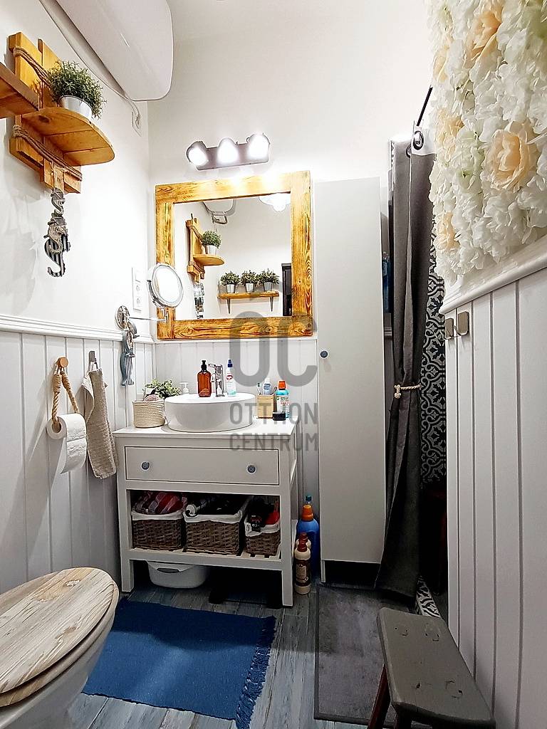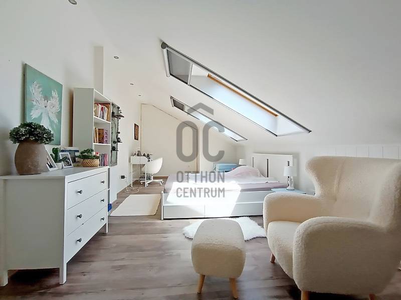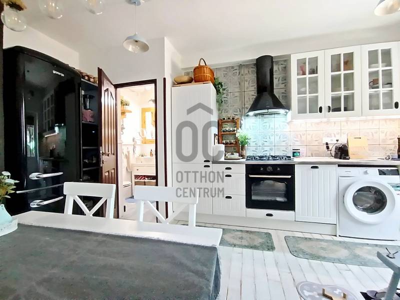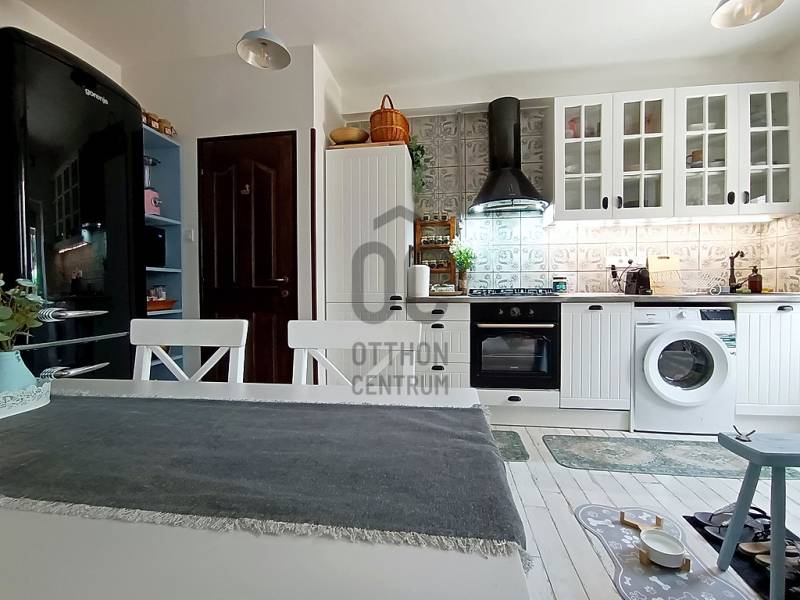 EGY REGGELI KÁVÉZÁS / EGY KELLEMES EBÉD / EGY KIS DÉLUTÁNI SZIESZTA / EGY MEGHITT, GYERTYAFÉNYES VACSORA / EGY SÜTÖGETŐS GRILL PARTY A CSALÁDDAL, BARÁTOKKAL A TERASZON…??? VAGY ESETLEG EGY KIS PIHENÉS / NAPOZÁS / MEDENCÉZÉS / KERTÉSZKEDÉS A TELJESEN LEVÁLASZTOTT, KIZÁRÓLAGOS HASZNÁLATÚ SAJÁT UDVARON ??? ÉS MIND EZ EGY CSENDES, NYUGODT KERTVÁROSI KÖRNYEZETBEN LÉVŐ, KÍVÜL-BELÜL ESZTÉTIKAILAG ÉS MŰSZAKILAG IS TELJES KÖRŰEN FELÚJÍTOTT / ÚJJÁVARÁZSOLT - A VÉTELÁRBAN BENNE LÉVŐ (!!!) VINTAGE STÍLUSBAN GYÖNYÖRŰEN ÉS LUXUS SZÍNVONALON TELJES KÖRŰEN LAKBERENDEZETT ÉS BEGÉPESÍTETT - BELSŐ KÉTSZINTES (DUPLEX) TÁRSASHÁZI LAKÁSSAL A HÁTTÉRBEN... HIGGYE EL, HOGY EZ EGYÁLTALÁN NEM LEHETETLEN !!! :) HA MINDIG IS ERRE AZ ÉLETÉRZÉSRE VÁGYOTT, AKKOR NE IS KERESGÉLJEN / NÉZELŐDJÖN TOVÁBB, MERT SZERINTEM BIZTOS, HOGY MEGTALÁLTA !!! :) IV., Újpest kertvárosi részén - a városközponttól is mindösszesen csak 2-3 perc sétatávolságra - a Lőrinc utcában kínálok eladásra egy kis létszámú, kulturált (csendes, barátságos, segítőkész) lakóközösséggel büszkélkedő, tégla építésű társasházban lévő, a mai kor minden igényét és kényelmét maximálisan szem előtt tartva kialakított, luxus színvonalon lakberendezett (bútorozott és gépesített), 10 cm vastagságú külső (dryvit) hőszigeteléssel és egy nagyon energiatakarékos hűtő-fűtő klímaberendezéssel is tovább komfortosított / rezsicsökkentett, nagyon minőségi anyagokkal és nagyon extra kivitelezéssel, esztétikailag és műszakilag is teljes körűen, 2021-ben felújított és azóta is újszerű / kifogástalan állapotban lévő, keleti tájolású, közvetlen napsütötte (rendkívül világos), az előtte lévő 14 m2 nagyságú, részben - fényáteresztő, UV szűrős polikarbonát tetővel – fedett, fagyálló járólappal burkolt teraszára és a további kb. 40-45 m2 nagyságú, saját, kizárólagos használatú, teljes mértékben elszeparált zöld kertjére / térkövezett járdás udvarára panorámás - a földhivatali bejegyzés / tulajdoni lap szerint 34 m2 alapterülettel - de az ingatlan belső kétszintessé történő átépítésének / átalakításának, a tetőtér teljes körű beépítéséből kifolyólag kapott plusz 26 m2-nyi lakóterületnek köszönhetően, a valóságban és használhatóságában is már 60 m2-es (!!!) alapterülettel büszkélkedő, kiváló helyiség elosztással rendelkező, az alsó (34 m2-es) lakószinten, a lakás központi szerepét betöltő - teljesen bútorozott és begépesített (munkalapba épített 4 zónás gázfőzőlap + külön beépített elektromos sütő, mikrohullámú sütő, kürtős pára-, és szagelszívó berendezés, beépített mosogatógép és automata mosógép, fagyasztós hűtőszekrény) amerikai konyhás - 4-6 személy számára egy kényelmes étkezőt és a felső lakószintre felvezető lépcsőházat is magába foglaló - nappalinak, a bejáratnál praktikusan kialakított előszobának és nem utolsósorban egy nagyon esztétikus / megfelelő méretű - a WC-t is magában foglaló - épített zuhanyzós fürdőszobának, valamint a felső (26 m2-es) „tetőtéri” lakószinten pedig egy légtérben kialakított, hihetetlenül tágas / kényelmes és hatalmas hálószobának / dolgozószobának / olvasósaroknak / pihenőrésznek is otthont adó öröklakást, amelyhez még egy önálló, zárható, porszáraz, kb. 5-6 m2 alapterületű, téglaépítésű udvari tároló is hozzá tartozik !!! :)Az ingatlant mind műszaki, mind esztétikai, valamint belső építészeti szempontból is a lehető legmodernebb és legmagasabb minőségű anyagokat és megoldásokat tartalmazza (csak a teljesség igénye nélkül...)- a bukó-nyíló, hőszigeteléssel és több légkamrás üvegezéssel ellátott, nagy méretű ablakai műanyag redőnnyel felszereltek,- a biztonsági zárral és üvegbetétekkel gazdagon ellátott (nagyon fényáteresztő), esztétikus és modern, időjárás álló, műanyag külső burkolattal védett, de belül acélbetétes megoldással bíró bejárati ajtót építettek be,- az egész ingatlanban lévő fűtést 1 darab - a nappali egyik ablaka alá szerelt - parapet kivezetéses, FÉG Zeusz típusú “látványkandallós kivitelezésű\" modern, nagy hatásfokú gázkonvektor biztosítja - amely maximális hatékonysággal, minimális fogyasztás mellett biztosítja a kellemes hőérzetet, így téve szinte láthatatlanná a téli napok fűtésköltségét :)- a forró nyári napok ellensúlyozására, a tetőtéri lakószint plusz hűtésére és egyben fűtésére is szolgáló, valamint a lakás komfortfokozatának a tovább növelésének érdekében is, a tetőtéri lakószintre felvezető „lépcsőházi részen” egy nagyon energiatakarékos klímaberendezés került felszerelésre,- a lakás különleges és egyedi melegségét / otthonosságát meghatározó belső-, és a hangulatvilágításokat is a legmodernebb, főleg meleg színhőmérsékletű (sárga fényű) LED izzószálas (energiatakarékos), dízájn lámpatestekkel oldották meg,- a szoba és a tetőtéri lakószint padlóját magas minőségű és kopásállóságú laminált parkettával, a lakás többi helyiségének padlóját pedig, szintén nagy kopás állóságú és magas minőségű járólappal burkolták,- a gondosan kiválasztott fali burkolatoknak sikerült otthonossá tennie / tovább emelnie a lakás hangulatát,- a minőségi konyhabútort egy munkalapba épített 4 zónás gázfőzőlappal, egy külön beépített elektromos sütővel, egy kürtős (külső kivezetésű) pára-, és szagelszívó berendezéssel és egy a konyhai vízrendszerbe bekötött mosogatógéppel, valamint (a fürdőszobai helymegtakarítás érdekében pedig…) egy automata mosógéppel varázsoltak teljes értékűvé,- a kellemesen haszná