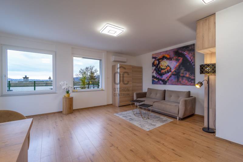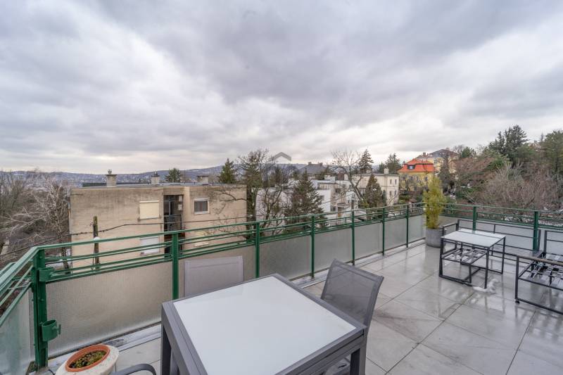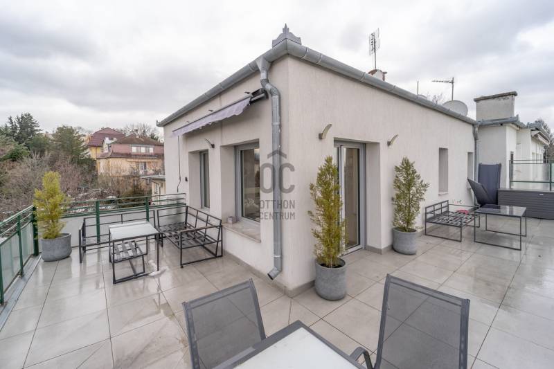 Rózsadombon kínálunk eladásra egy különleges adottságú lakást, amelyhez egy valóban privát tetőterasz és ikonikus budapesti panoráma tartozik. A tér és a kilátás együttese nyugalmat, szabadságot és azt a magától értetődő exkluzív budai életérzést adja, amely egyszerre van a város felett, mégis szervesen benne.A lakás a társasház csendes felső szintjén helyezkedik el, ahonnan páratlan kilátás nyílik a Gellért-hegyre, a Budai Várra, a Parlamentre, a Halászbástyára és Budapest ikonikus városképére. A 48 m²-es tetőterasz ritka panorámás adottság: tökéletes helyszín pihenéshez, barátok fogadásához, esti beszélgetésekhez, naplementékhez – igazi városi menedék a város felett.Az ingatlan prémium kivitelben, tudatos tervezéssel került felújításra, megőrizve a patinás, Bauhaus jellegű épület karakterét, miközben minden részletében a mai kor igényeire reflektáló modern műszaki tartalommal rendelkezik. Magas minőségű Internorm nyílászárók kerültek beépítésre alumínium külső borítással és háromrétegű üvegezéssel, alumínium rolóval és szúnyoghálóval. A teljes terasz üvegfelülete megújult, napellenző került felszerelésre, valamint háromfázisú áram áll rendelkezésre, kültéri szauna előkészítéssel.A lakás fűtése korszerű elektromos padlófűtéssel megoldott, amely tovább erősíti a letisztult, komfortos életteret. A konyha magasfényű, osztrák gyártású bútorzattal készült, beépített AEG és Bosch gépekkel; a konyhasziget a mindennapok természetes középpontja, ahol a design és a funkcionalitás magától értetődően találkozik.A kis lakásszámú társasház, a presztízs környezet és a gyors belvárosi elérés együttese olyan városi életteret hoz létre, amely egyszerre reprezentatív és élhető, nyugodt és inspiráló. Ez a lakás nem alkalmazkodni akar, hanem hangulatot és életstílust kínál.Ez az ingatlan nem versenyez másokkal – elhelyezkedése és panorámája nem reprodukálható.Itt a minőség alapérzés. A tér, a panoráma és a környezet együtt hozzák létre azt az exkluzív budai életérzést, amely nem hasonlítható, nem ismételhető – egyszerűen csak jelen van. |