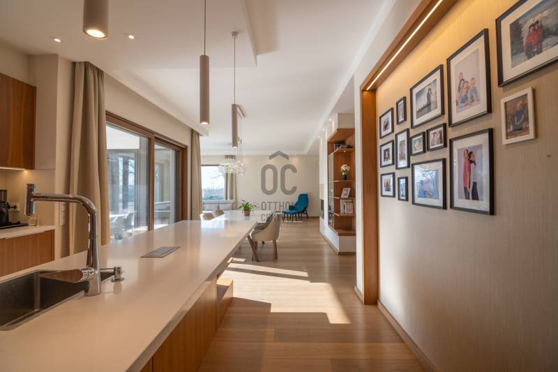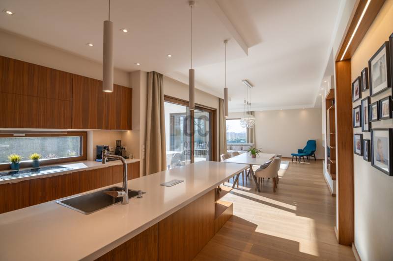 Prémium modern családi ház 2 nappalival, 7 szobával, szaunával – Madárhegy legszebb részén, örök panorámávalBudapest XI. kerületének egyik legkeresettebb, exkluzív lakóövezetében, Madárhegy csendes, rendezett utcájában kínálunk megvételre egy valóban különleges, modern minimál stílusú családi házat. Az ingatlan ritka értéke a teljes intimitás, a természet közelsége és az a nyugalom, amely hosszú távon is stabil értéket és élhető mindennapokat biztosít.Ez az otthon nemcsak méreteiben, hanem gondolkodásmódjában is prémium: két tágas nappalival, hét különálló szobával, szaunával és energiatudatos, alacsony fenntartású műszaki megoldásokkal készült – mindazzal, amire egy modern, családközpontú élethez szükség van.Főbb méretek, alapadatokTeljes lakóterület: 323 nmTerasz: 61 nmErkély: 37 nmKert: kb. 1400 nmTelek mérete: 1661 nmGarázs: 2 autó részére, zártFöldszint – a közös élmények tereA földszint szíve a nagyvonalúan megnyitott nappali–étkező–konyha egység, ahol a háromrétegű, nagyméretű üvegfelületek természetes fényt és közvetlen kapcsolatot biztosítanak a terasszal és a kerttel. Ezek a nyitott terek ideálisak a család számára: közös étkezésekhez, beszélgetésekhez, ünnepekhez vagy akár baráti összejövetelekhez.Földszint:Előtér: 9,15 nmNappali: 32 nmÉtkező: 17,6 nmKonyha: 13,7 nmWC: 3,3 nmDolgozószoba / vendégszoba: 14 nmSportszoba / spórolásra is alkalmas multifunkciós szoba: 18 nmGarázs: 37 nmA földszinti sportszoba igény szerint alakítható edzőtérnek, hobbihelyiségnek vagy akár energiatakarékos tároló- és gépészeti kiegészítő térnek, így a ház működése hosszú távon is gazdaságos marad.Emelet – privát terek és nyugalomAz emeleten kapott helyet a második nappali, amely tökéletes családi pihenőtér, gyerekeknek kialakított lounge vagy csendes esti kikapcsolódás helyszíne lehet. A szint elrendezése ideális nagycsalád számára is: minden hálószoba világos, jól bútorozható és funkcionálisan elkülönül.Közlekedő: 12,4 nmFürdőszoba: 7,7 nmSzobák: 13,5 nm | 13,6 nm | 13,5 nm | 21 nmSzülői háló: 17 nm – teraszkapcsolattal és panorámávalVendégszoba: 9,2 nmSzülői fürdő: 13,2 nmA szülői háló saját, prémium felszereltségű fürdővel és közvetlen teraszkapcsolattal rendelkezik, ahonnan zavartalan kilátás nyílik a zöld környezetre. A földszinten kialakított szauna a mindennapok részévé teszi a pihenést és a regenerálódást.A magas minőségben kialakított konyhát egyedileg gyártott, praktikus beépített bútorok, AEG háztartási gépek és indukciós főzőlap teszik teljessé, míg a bárszékek kellemes teret biztosítanak a kötetlen konyhai beszélgetésekhez. A mindennapi komfortot vízlágyító rendszer és padlófűtés biztosítja.Az enteriőr hangulatát gondosan megtervezett világítás, dizájner lámpák és igényesen kiválasztott burkolatok határozzák meg, amelyek minden részletükben az esztétikumot és a minőséget képviselik. A háztartási helyiség beépített szekrényekkel és praktikus pakolófelületekkel segíti a mosó- és szárítógép melletti házimunkát.Az ingatlan teljes bútorzattal kerül értékesítésre, mivel a berendezések jelentős része egyedileg gyártott, kifejezetten ehhez az otthonhoz tervezett darab.Környezet és elhelyezkedésMadárhegy egyik legnagyobb értéke az egységes utcakép, az alacsony beépítettség és a zöld környezet. A házat utcafronti növényfal védi, így a kert és a terasz teljes privát szférát biztosít.Rövid időn belül elérhetők:több óvoda és bölcsődekiváló állami és magániskolák, valamint nemzetközi intézmények Újbudánbevásárlási lehetőségek, sport- és kirándulóhelyekA környék presztízse folyamatosan növekszik, ami az ingatlant nemcsak szerethető otthonná, hanem biztos hosszú távú befektetéssé is teszi.Műszaki tartalom – energiatudatos prémiumDaikin 11 kW-os hőszivattyú – mennyezethűtés-fűtés és padlófűtésHelios hővisszanyerős szellőztető rendszerLoxone okosotthon rendszer – fűtés, hűtés, árnyékolás telefonról vezérelhetőSchneider ipari kategóriás elektromos elosztó9,5 kW-os napelemes rendszer 8 kW-os Huawei inverterrel.Szaldó elszámolás 2030-igÁtlagos villanyszámla: kb. 5.000 Ft/hóTeljeskörű medence-előkészítés a kertbenEz az ingatlan azoknak készült, akik nem kompromisszumot keresnek, hanem minőséget, tágas közös tereket, családi élményeket és hosszú távon fenntartható megoldásokat Budapest egyik legjobb részén.Vegye fel velem a kapcsolatot, és egyeztessünk egy személyes megtekintést – ez az otthon élőben mutatja meg igazán, miért lehet könnyű beleszeretni. |