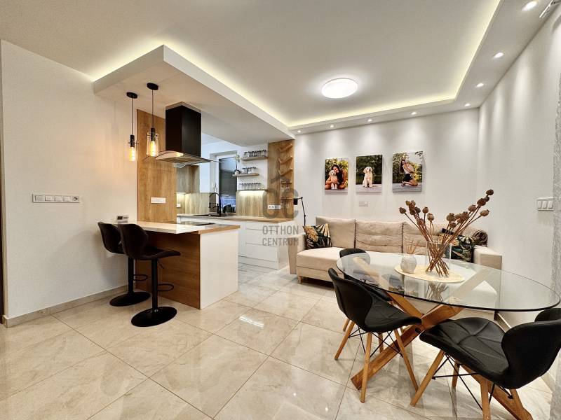 Gondolkodtál már a vonzáskörzetben való nézelődés közben, hogy nagyon nem lesz mindegy, hogy melyik irányba kell majd 15 - 20 percet utaznod hazáig? Valamint, hogy mi az ami egyáltalán elérhető ennyi idő alatt? Egyértelműen az infrastruktúra az M1-es autópálya Mosonmagyaróvár felé vezető szakaszán a legzökkenőmentesebb és leggyorsabb. Lébény pedig történetesen ezen a vonalon található. Legyen a munkahelyed Győrben, Mosonmagyaróváron vagy akár a határ túloldalán, Lébény egy tökéletes bázis lehet számodra. Az ingatlan ami most csak rád vár, minden igényedet ki fogja elégíteni, műszakilag, esztétikailag és lokációjában egyaránt.* 2021-ben épült* Energetikailag kifogástalan* Napelem rendszerrel ellátott* Gáz (cirkó) fűtéses* Víz lágyító rendszerrel működőAz ingatlan saját, körbekerített 113nm-es telekkel rendelkezik, a kerten belül egy 11nm-es térkövezett terasz, kerti csap, valamint egy kerti tároló található. Egy gépjármű számára a parkolás biztosított a társasház udvarán belül.* Az ingatlan nappali-konyha +2 hálószobával, 2 külön mellékhelyiséggel 1 fürdőszobával, tárolóval és előszobával rendelkezik* Az épület szigetelt, minden nyílászáró műanyag, redőnnyel ellátva.A fenntartási költségek minimálisak, a napelemnek köszönhetően az elektromos áram ellátás konkrétan : 0,-FtAz ingatlan üresen álló, ráfordítás mentesen, azonnal birtokba vehető! Keress a részletekkel kapcsolatban, mert leendő ingatlanod kulcsi nálam vannak! Hitelre lenne szükséged?Az Otthon Centrum, az ország egyik legnagyobb és legmegbízhatóbb hitelközvetítője díjmentes, teljes körű ügyintézéssel segít megtalálni a számodra legjobb megoldást. Kérd kollégáink személyre szabott ajánlatát!Ez az ingatlan a \"Felező csomag\" megbízási portfólióhoz tartozik. Részletek az Otthon Centrum weboldalán. |