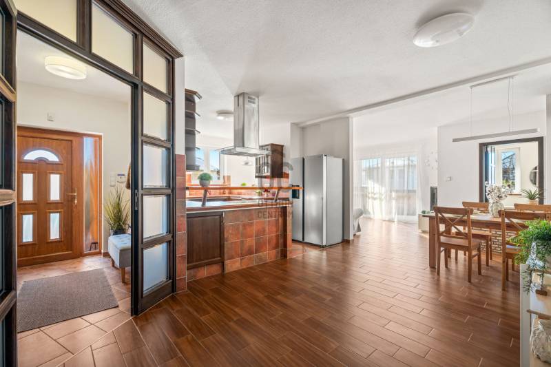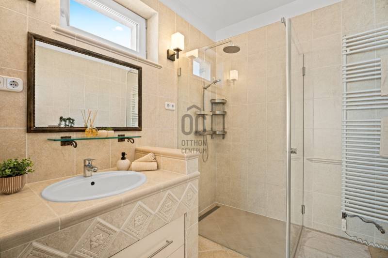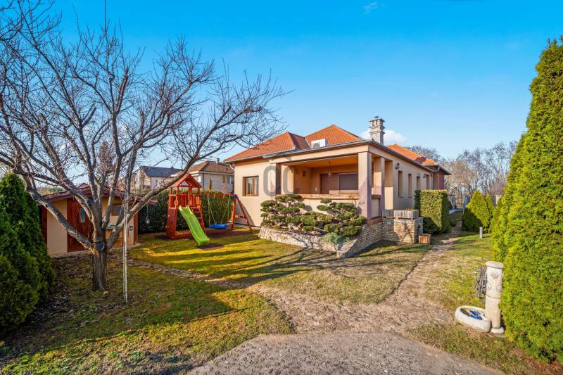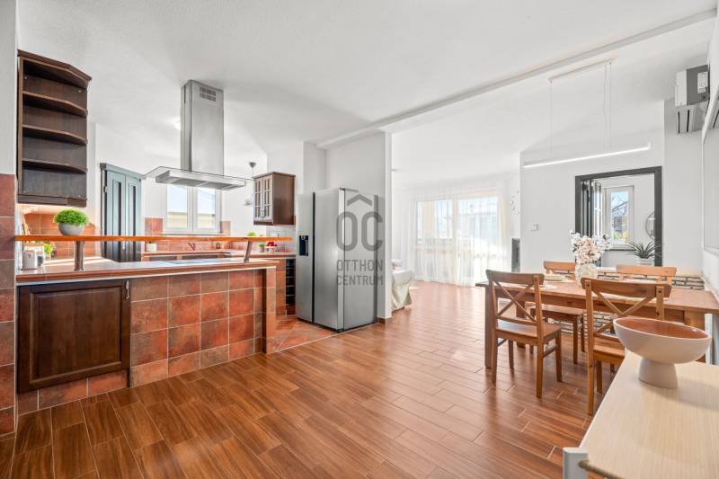 NAPFÉNYES, TÁGAS TEREKKEL RENDELKEZŐ, IGÉNYES OTTHON MAJORSZEGILIGETEN, AHOL A NYUGALOM A TÉR ÉS A MINŐSÉG HARMONIKUSAN TALÁLKOZIK!Csömör legkedveltebb részén, Majorszegiligeten, közvetlenül a XVI. kerület határán, az erdővel, mezővel határolt Árpádföldi úton ELADÓ ez a különleges hangulatú, körbenapozott, összesen 222 m2 területű, igényes családi ház, fűtött garázzsal, parkosított kerttel, 653 m2-es telken!A 2008-ban, minőségi anyagokból épült tégla szerkezetű, hőszigetelt ház jelenleg két külön lakrészre tagolt (külön bejárattal), így ideális nagyobb családoknak, többgenerációs együttéléshez, vagy otthoni vállalkozáshoz is. Igény szerint a két lakrész egybenyitható, ezáltal egy nappali + 4 vagy 5 szobás, 3 fürdős házat kapunk, emellett a tetőtér beépítésére is van lehetőség.A 196 m2 hasznos alapterületen komfortos, élhető terek, tágas szobák remek elrendezés mellett kerültek kialakításra, ideális életteret biztosítva ezzel az itt lakók számára.A nagyobb, 120 m2-es lakrész tágas, világos terei valódi otthonérzetet adnak,dél-nyugati tájolásának köszönhetően a terek egész nap fényárban úsznak. A kandallóval felszerelt nappali természetes központja a háznak, innen megközelíthető a kellemes hangulatú fedett, védett terasz, mely tökéletes helyszíne lehet a hosszú reggeleknek , csendes estéknek vagy családi összejöveteleknek.Két nagyméretű hálószoba került kialakításra, mindkettő saját, ablakos fürdőszobával (egy kádas, egy zuhanyzós), így kényelmet és intimitást biztosít.A komfortos méretű, gépesített, felszerelt konyhából egy praktikus kamra is nyílik, mely remek lehetőséget nyújt tárolásra. A konyha mellett kialakított tágas étkezőrész nagyobb családoknak is elegendő teret biztosít.Külön vendégmosdó is kialakításra került, mellette funkcionális háztartási helyiséggel, itt kapott helyet a kazán, a mosógép és szárítógép is.A kisebb, 40 m2-es lakrész külön bejárattal rendelkezik, önálló, sokoldalúan hasznosítható.Világos nappali és háló, gépesített, felszerelt konyha, ablakos, zuhanykabinnal ellátott fürdőszoba, utcára néző hangulatos erkély.Ideális lehet vendégeknek, szülőknek, felnőtt gyermeknek, otthoni vállalkozás/iroda működtetésére vagy akár bérbeadásra. Igény szerint egybenyitható a fő lakrésszel.A garázs a fő lakrészből, belső lépcsőn és kívülről automata kapun keresztül is megközelíthető. Fűtött, tágas helyiség mely 2 autó számára kényelmes parkolást biztosít, emellett tárolási kapacitással is rendelkezik.Ezen a szinten található egy saját külső bejárattal is rendelkező, ablakos, 31 m2-es helyiség mely tökéletes lehet irodának, edzőteremnek, hobbiszobának, műhelynek vagy vállakozási célra. Ebből a helyiségből nyílik még egy wc, kézmosóval.A HÁZ MŰSZAKI FELSZERELTSÉGE:Korszerű, néhány éves kombi gázkazánPadlófűtés + radiátorokInternetről vezérelhető fűtés3 klímaTöbbrétegű, hőszigetelt műanyag nyílászárókElektromos redőnyök + szúnyoghálókBiztonsági bejárati ajtóRiasztórendszerAutomata kapukA KERT szépen parkosított, virágokkal, növényekkel beültetett terület, mely tavasztól őszig csodás színekben pompázik. Erről számos fotó áll rendelkezésre, amit szívesen továbbítunk komoly érdeklődés esetén. A telek végében egy különálló faház található, mely a kerti szerszámok, és egyéb eszközöknek, tárgyaknak biztosít helyet.A bejáratnál a telken belül további parkolási lehetőség is rendelkezésre áll.LOKÁCIÓ, AMI ÖNMAGÁBAN ÉRTÉKMajorszegiliget Csömör legkeresettebb, legigényesebb, kertvárosi jellegű része.Családbarát környezet, remek közösség, igényes házak, rendezett utcák - mindez Budapest közvetlen közelében.Az ide költözők nem csak házat vásárolnak, hanem életminőséget!A közlekedés kiváló minden irányba, hiszen az M0-ás autóút pár perc alatt elérhető, ezenkívül számos lehetőség van még a város megközelítésére.XVI.kerület közvetlen közelsége miatt az ellátottság is kiemelkedő. Intézmények, szolgáltatók, üzletek, és minden egyéb pár perc alatt elérhető autóval, ami a mindennapi élethez szükséges.Az utca végében már erdő található, míg a házzal szembeni terület egy hatalmas, zöld mező, mely garantálja a nyugalmat az itt lakók számára.Ez az OTTHON ideális választás annak az új tulajdonosnak, aki számára fontos a KIVÉTELES LOKÁCIÓ, a nyugodt környezet és a minőségi élettér, mindez BUDAPEST KÖZVETLEN KÖZELÉBEN, kompromisszumok nélkül!További információkért és megtekintési szándékkal kapcsolatban várom hívását! |