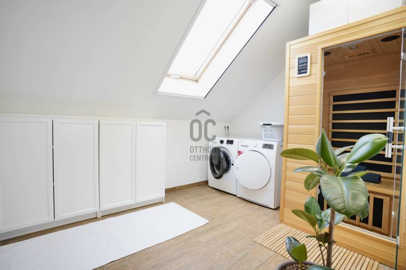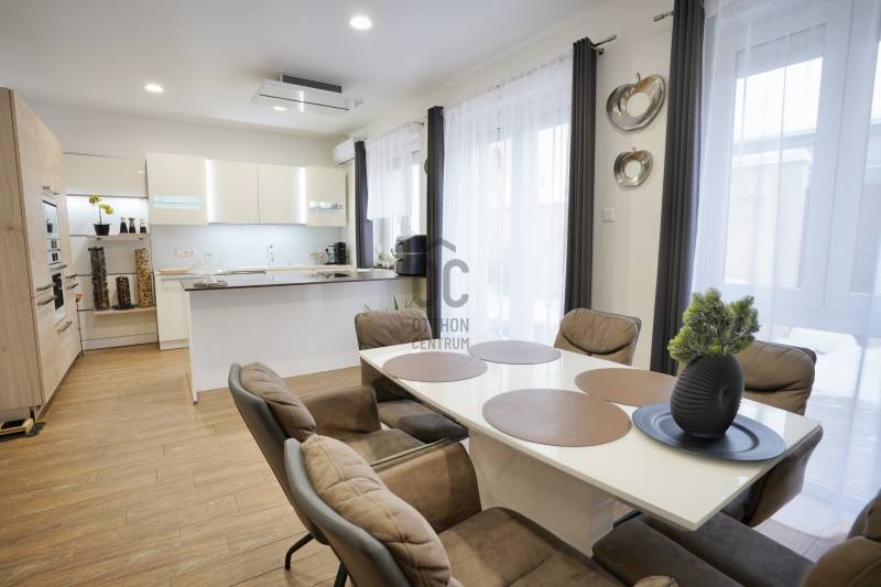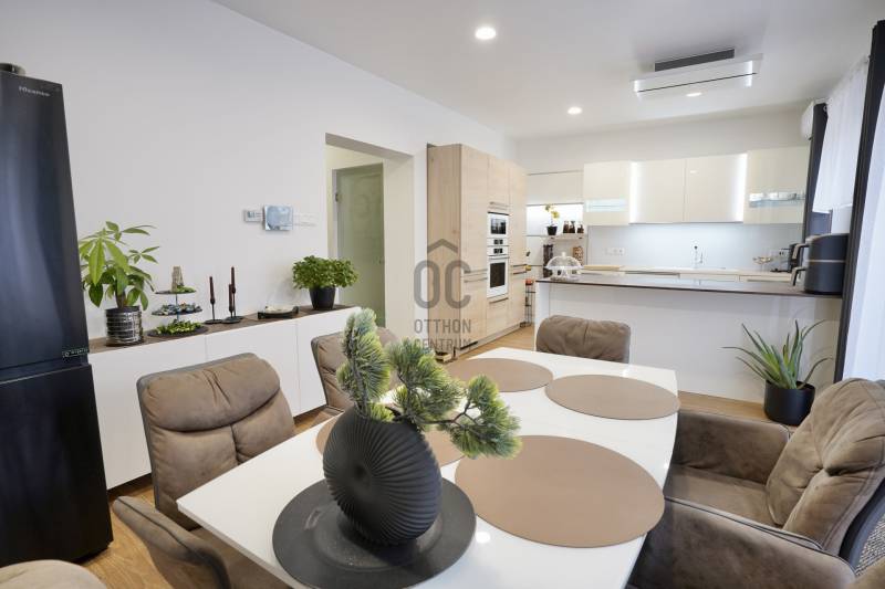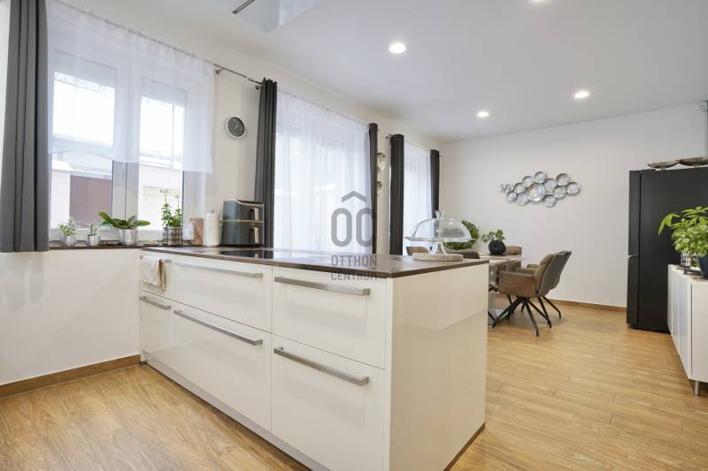 Vác kedvelt Burgundiai városrészében, a történelmi belváros közvetlen peremén kínálunk megvételre egy 2019-ben épült, modern sorházi ingatlant, amely egy nyugodt, forgalomtól mentes utcában helyezkedik el, mindössze néhány perc sétára a Duna-parttól. A környezet ideális azok számára, akik értékelik a csendet, ugyanakkor fontos számukra a városi infrastruktúra közelsége és az aktív kikapcsolódási lehetőségek sokszínűsége.Az összesen 162 négyzetméteres lakótérrel rendelkező házhoz egy 15 négyzetméteres, fűtött garázs is tartozik, valamint egy körülbelül 40 négyzetméteres padlástér, amely kiválóan alkalmas tárolásra. Az ingatlan kialakítása átgondolt és praktikus, minden szinten világos, napfényes helyiségekkel, köszönhetően a bőséges természetes fénynek.A földszinten található a kényelmes előtér beépített gardróbbal, amely ideális a cipők és kabátok elhelyezésére, innen nyílik az automata garázskapuval ellátott garázs, továbbá egy mosdó és egy kamra is helyet kapott. A tágas konyha–étkező prémium minőségű, beépített konyhagépekkel felszerelt, és közvetlen kijáratot biztosít a teraszra, amely remek helyszíne lehet baráti összejöveteleknek vagy nyugodt pihenésnek.A középső szinten egy hangulatos nappali, egy erkélykapcsolatos hálószoba, valamint egy zuhanyzós fürdőszoba található WC-vel és bidével. A felső szint további két hálószobát kínál, amelyek közül az egyik jelenleg mosókonyhaként funkcionál, itt került kialakításra az infra szauna is, de igény szerint könnyedén visszaalakítható hálószobává. Ezen a szinten egy sarokkádas fürdőszoba is helyet kapott WC-vel és bidével, valamint egy elkülönített lakrész, amely egy hálószobából és egy külön zuhanyzós fürdőszobából áll, így akár vendégek vagy nagyobb család számára is ideális megoldást nyújt.A ház magas műszaki felszereltséggel rendelkezik: háromrétegű, szúnyoghálóval, redőnnyel és árnyékolóval ellátott nyílászárók, szintenként szabályozható hűtő-fűtő klímaberendezések, helyiségenként külön vezérelhető padlófűtés, kondenzációs gázkazán melegvíz-tárolóval, valamint távfelügyeletre kötött riasztórendszer és kamerás kapucsengő szolgálja a kényelmet és a biztonságot. Az elegáns megjelenést gránit lépcsőburkolatok, robbantott üvegű korlátok, valamint beltéri és kültéri hangulatvilágítások teszik teljessé, a belső világítás fényereje pedig igény szerint szabályozható.A parkolás megoldott a zárt, fűtött garázsban, valamint a ház előtt kialakított saját, privát parkolóhelyen is. Az ingatlan per- és tehermentes, a beépített bútorok a vételár részét képezik. Fenntartási költsége rendkívül kedvező, a havi gázszámla körülbelül 12.000 forint, közös költség nincs.Az elhelyezkedés kiváló: óvoda, iskola, posta, gyógyszertár néhány perc sétával elérhető, bevásárlási lehetőségek – Aldi, Lidl, Spar, Tesco, DM – mindössze pár perc autóútra találhatók. A közelben játszótér, sportpályák, kondipark, uszoda, strand, kirándulóhelyek, kiépített kerékpárút, valamint cukrászdák és éttermek biztosítják a szabadidő kellemes eltöltését. A buszpályaudvar és a vasútállomás autóval körülbelül 5 perc, gyalogosan 15–20 perc alatt elérhető, Budapest pedig vonattal nagyjából 25 perc, az M2-es gyorsforgalmi úton pedig körülbelül 20 perc alatt megközelíthető. Ez az ingatlan ideális választás mindazok számára, akik kompromisszumok nélkül keresnek modern, kényelmes és kiváló adottságokkal rendelkező otthont.A ház megvásárlásához a megfelelő önerővel „már rendelkező”, de ezenfelül akár ***banki hitelfelvétellel, akár *** CSOK+ , akár ***lakáskassza megtakarítással és akár a ***babaváró program keretében felvehető / felhasználható pénzösszegből vásárló személyek megkeresését is szeretettel várom!Ha a leírtak és a látottak alapján felkeltettem az érdeklődését, keressen bizalommal akár hétvégén is!***Az igénylési / felhasználási feltételekkel kapcsolatban, valamint ezek ügyintézésben is, az Otthon Centrum hitelközvetítő munkatársával együtt, készséggel állok az Ön szíves rendelkezésére!!!! TULAJDONI LAPON LAKÁS ÉS GARÁZS BESOROLÁS, 4 SZOBÁS , 161 NM-ES, !!! |