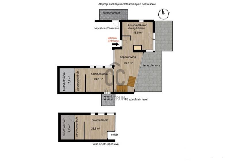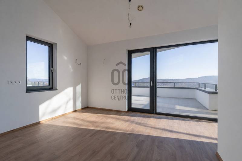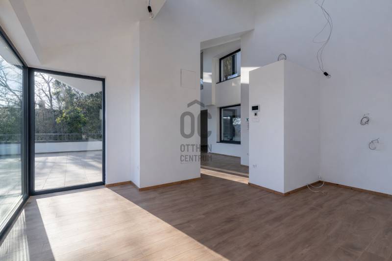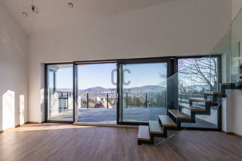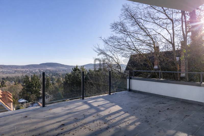 Ha olyan otthont keresel, ahol a panoráma nem alkalmi élmény, hanem a mindennapok természetes része, akkor ezt a lakást érdemes megnézned.ÜDV ITTHON!A II. kerület egyik legszebb, zöldövezeti részén, Budaligeten, egy mindössze háromlakásos, intim társasház legfelső szintjén kínálunk megvételre egy belső kétszintes, panorámás DUPLEX penthouse-t, közvetlen erdőkapcsolattal. Itt valóban megérkezik az ember: csend, zöld, fény és tér veszi körül.Üdv itthon!A lakás nettó 103 m²-es (bruttó 124 m²) belső tere nagyvonalú és átgondolt, amelyhez három terasz kapcsolódik, összesen 64 m² alapterülettel. A teraszok és az óriási üvegfelületek miatt a természet folyamatosan jelen van – reggel madárcsicsergéssel indul a nap, este a panoráma nyugtató látványával zárul.Tér, ami élményt adAz alsó szinten egy világos, tágas nappali–konyha–étkező tér kapott helyet, amely ideális mind a hétköznapokhoz, mind vendégek fogadásához. Innen több terasz is közvetlenül elérhető, így a kinti és benti terek szinte összeolvadnak.Ezen a szinten található egy hálószoba, gardrób és fürdőszoba is – tökéletes vendég- vagy dolgozószobának.A felső szint már a teljes nyugalomé: egy különálló hálószoba saját gardróbbal és fürdőszobával, ahol a tér igazi különlegessége a teljes üvegfal. Ez a megoldás vizuálisan összeköti a szinteket, miközben egészen egyedi, modern hangulatot ad – ritka, látványos és nagyon „penthouse-érzés”.Luxus, ami nem hivalkodik – csak működikA lakás műszaki tartalma valóban felső kategória, minden kompromisszum nélkül:Panasonic hőszivattyús rendszerPadlófűtés és mennyezethűtés a tökéletes hőérzetértHővisszanyerős szellőztető rendszerHáromrétegű, reflexiós üvegezésű nyílászárókElektromos ablaknyitásDigitális videós kaputelefon és riasztórendszerKözponti vízszűrő rendszerLakásonként 3×32A elektromos teljesítményElektromos autótöltéshez kiépített háromfázisú csatlakozásA házban 6 személyes hidraulikus lift szolgálja a kényelmet.A lakáshoz 2 garázsbeálló és egy 14 m²-es tároló tartozik (külön megvásárolandók).Kinek ideális ez az otthon?Annak, aki:szereti, ha a természet szó szerint karnyújtásnyira van,értékeli a csendet, a panorámát és az intimitást,nem tömegingatlant keres, hanem egyedi, ritka lehetőséget,hosszú távon gondolkodik, és tudja, hogy az ilyen adottságú ingatlan mindig érték marad.Hívj! |