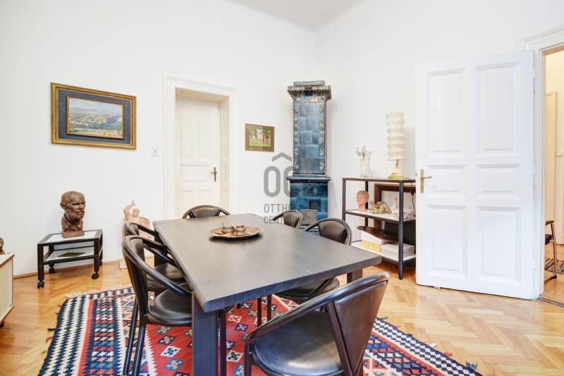 Ez a lakás kiváló választás, 132nm, 4 szoba, tágas terek, jó műszaki állapot jellemzik!Lássuk közelebbről miről is van szó:A ház közel van az Oktogonhoz, ami kiváló közlekedési csomópont. Az utca csendes, a ház jól megközelíthető.A telket már az 1700\' évek végén is jegyzik telekkönyvben. Maga a ház 1900\' évek elején épült, jó állapotú, kívül belül karbantartott.A lakás az első emeleten van, utcai nézetű nagy ablakai vannak, világos és barátságos.2010\' éveken felújították, alig lakták, így még tisztasági festés sem szükséges. A fa ablakokat felújították, kívül dupla thermo üvegezést kapott, tökéletes a hő és hangszigetelésük. Modern gázcirkó kazán adja a meleget. Elosztás ideális, külön nagy étkező is rendelkezésre áll, ha vendégeket hívunk. Formatervező tulajdonosai otthonos és nyugodt miliőt teremtettek. Funkcionális és stílusos. Ez egy \"beleszeretős\" lakás -személy szerint nekem nagyon tetszik-.Jöjjön el, nézze meg, biztosan mosolyogva lép majd ki az ajtón! : ) |