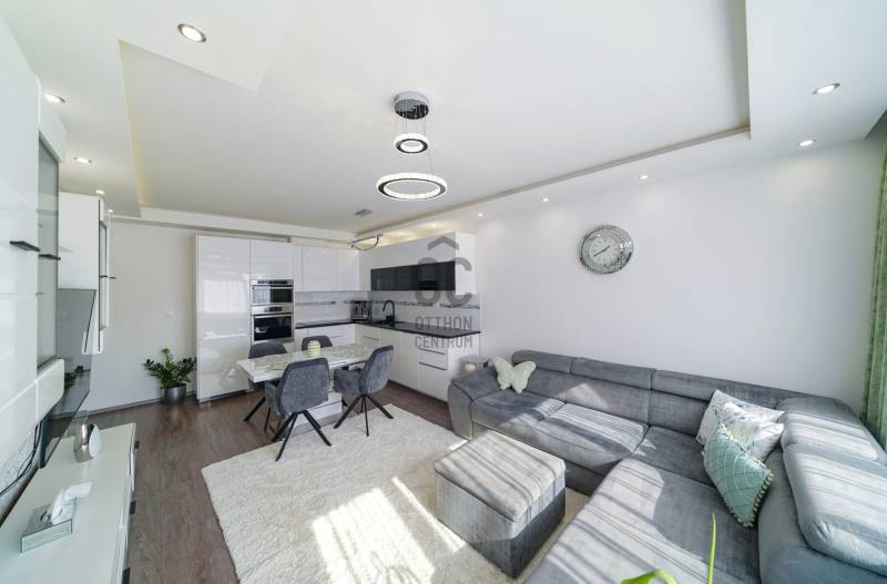 Eladó egy 2018-ban átadott, újszerű, bruttó 62 nm-es, 3 szobás, nagy erkélyes, kiváló elosztású lakás a XIII. kerület egyik legkedveltebb, nyugodt, zöld és csendes részén, egy 36 lakásos, rendezett társasházban.PRÉMIUM EXTRÁK – BERENDEZÉSSEL!- egyedileg gyártott, beépített gardróbok minden szobában – rengeteg tárolóhely- teljesen gépesített konyha: Whirlpool beépített hűtő, sütő, mikro, mosogatógép, indukciós főzőlap- Porta Doors beltéri ajtók- 9 ponton záródó, tűzvédelmi bejárati ajtó- műanyag nyílászárók, elektromos alu redőnyökkel- nagy teljesítményű Gree inverteres klíma a nappaliban és a hálóban- extra méretű radiátorok, plafonig érő törölközőszárítós radiátor a fürdőben- külön vezérelhető padlófűtés a konyhában és a fürdőben- LED világítás, spotok, elegáns csillárok- riasztórendszerKÖTELEZŐEN CSOMAGBAN:Autóbeálló (6M) + tároló 5+nm (4M) = 10 M Ft – biztonság, kényelem, értékállóság egyben.Elhelyezkedés:Zöld, csendes környezet, mégis kiváló infrastruktúra – ideális választás családoknak, pároknak vagy befektetésnek is.Ez nem csak egy lakás – ez egy életérzés.Ne maradj le róla, ritka lehetőség a XIII. kerületben! |