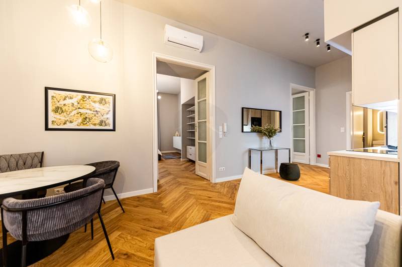 Üzleti vállalkozások és igényes magánvásárlók számára egy valóban páratlan lehetőséget kínálunk: egy exkluzív, prémium kivitelezésű lakás megvásárlását Budapest szívében, a Belváros egyik legkeresettebb környékén, a Hercegprímás utcában. Ez a 80 négyzetméteres, modern otthon nemcsak eleganciájával és minőségi kialakításával tűnik ki, hanem kivételes elhelyezkedésével és számos előnyével is.Az ingatlan tágas, világos terekkel rendelkezik, melyek között két nagy szoba és két luxus minőségű fürdőszoba található, így tökéletes választás lehet mind családok, mind pedig bérbeadási célú befektetők számára. Az egyedi tervezés és a prémium kivitelezés garantálja, hogy az otthon minden részlete a legmagasabb szintű kényelmet és esztétikai élményt nyújtja. A tágas, amerikai konyhával egybenyitott nappali ideális helyszíne a baráti összejöveteleknek, míg a lakás gondosan beépített bútorai és modern gépesítése azonnali beköltözést tesz lehetővé. A fűtésről gáz cirkó rendszer gondoskodik egyedi méréssel, míg a légkondicionáló berendezés a nyári hónapokban is kellemes hőmérsékletet biztosít, így minden évszakban maximális komfortot élvezhet.A Hercegprímás utca környéke különleges vonzerőt biztosít: a kiváló közlekedési lehetőségek révén a város bármely pontja gyorsan és könnyedén elérhető, legyen szó tömegközlekedésről vagy autós közlekedésről. Ezen túlmenően a környék páratlan ellátottsága – éttermek, kávézók, boltok és különféle szolgáltatások közvetlen közelében – biztosítja, hogy minden szükséges kényelem kéznél legyen.A lakás elhelyezkedése és kialakítása révén a városi élet minden előnyét kínálja, miközben csendes és biztonságos környezetet nyújt lakói számára. Ez az ingatlan nemcsak egy különleges otthont jelent, hanem kiváló befektetési lehetőséget is, amely hosszú távon is értéket képvisel.Amennyiben szeretné megtudni, hogyan válhat az Öné ez a kivételes ingatlan, kérem, keressen bizalommal! Örömmel osztom meg Önnel a részleteket, és segítek abban, hogy megtalálja álmai otthonát vagy befektetését. |
