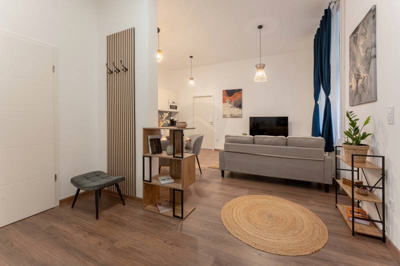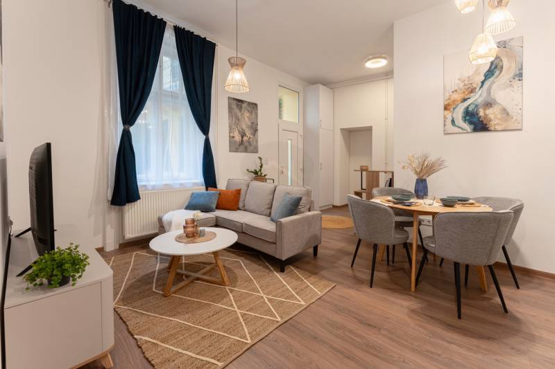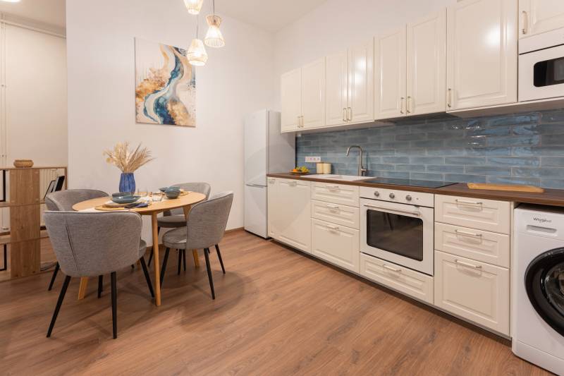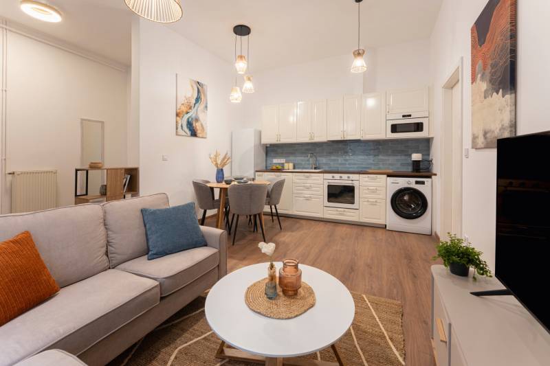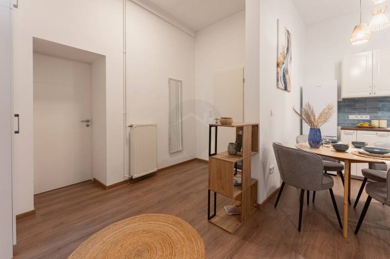 Budapest szívében, a közkedvelt Corvin sétány közvetlen közelében kínálunk eladásra egy világos, jól kialakított, 63 m²-es, amerikai konyhás nappalival és 2 hálószobával rendelkező lakást, amelyhez 9 m²-es privát terasz is tartozik.Főbb jellemzők:Duplakomfort: 2 fürdőszoba, 2 WC – ideális több személy vagy vendégek számára isPrivát lakosztály hangulat: az egyik hálószobához saját fürdőszoba és közvetlen teraszkapcsolat tartozikAmerikai konyhás nappali – világos, nyitott tér a közös pillanatoknakGépesített konyha, teljes berendezésselAz ár tartalmazza a bútorokat – de kérésre cserélhetőkBeépített gardrób szekrények igény szerint elkészítve, az árban benne vanBelső udvarra néző terasz – csendes, nyugodt, mégis központi elhelyezkedésAz ingatlan az első emeleten helyezkedik el – így könnyen megközelíthető, de kellő magasságban van a városi nyüzsgéstől.Miért különleges ez a lakás?Többfunkciós kialakítás: alkalmas otthonnak, irodának vagy befektetésnek – akár két külön lakrészként is kiadhatóTökéletes választás pároknak, kis családnak vagy hosszú távú kiadásra isAzonnal költözhető vagy kiadható állapotLokáció – minden kéznél:A Corvin-negyed az egyik legélhetőbb városrész Budapesten: éttermek, kávézók, mozi, fitneszterem, boltok, patika, Corvin Plaza – minden 1-2 perc sétára.A közlekedés is kiváló: M3 metró, 4-6 villamos, számos buszjárat elérhető néhány lépésre. |