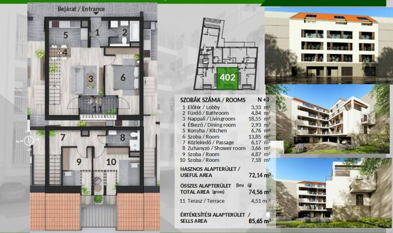 Az új lakásod keresése izgalmas kaland, és most egy olyan lehetőséget kínálunk, amely tökéletesen megfelel az első lakásvásárlók igényeinek. Budapest 04. kerületében, a felkapott Újpest központban található , új építésű lakóingatlan, amely minden elképzelésedet felülmúlja. Az ingatlan alapterülete 84nm, amely négy tágas szobát rejt,a belső 2 szinten elosztva, így bőséges teret biztosít a mindennapi élethez. Az alsó, és felső szinten is található fürdőszoba egyedi tervezésű, és a világos amerikai konyhás nappali tökéletes helyszín a családi összejövetelekhez vagy baráti találkozókhoz.Az ingatlanhoz tartozik egy 5 nm-es erkély, ahol élvezheted a friss levegőt és a csendes környék nyugalmát. A lakás prémium kivitelezésű, és a legmodernebb technológiával készült, beleértve a motoros redőnyöket és az elektromos autó töltési lehetőséget, ami különösen vonzó a környezettudatos vásárlóknak. A házközponti fűtés egyedi mérésének köszönhetően pedig mindig a legjobb komfortérzetet élvezheted.A környék ellátottsága kiváló, hiszen a közelben található boltok, éttermek és szolgáltatások mind hozzájárulnak a kényelmes mindennapokhoz.Ne habozz, bizalommal állunk rendelkezésedre, hogy segítsünk megtalálni álmaid otthonát! |
