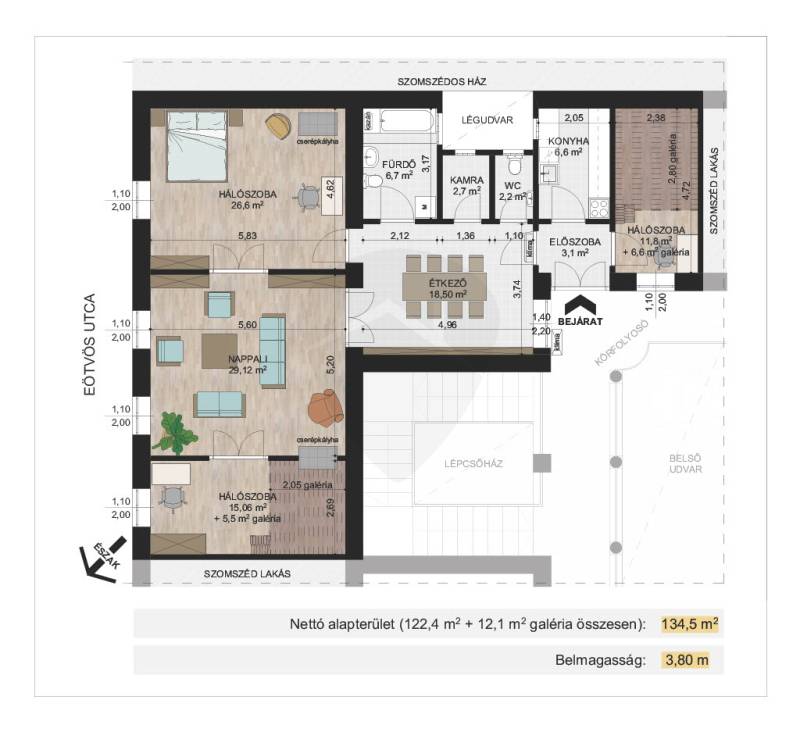 Eladó napfényes, tágas lakás az Oktogon közelében – akár két lakás is kialakítható!Lokáció: Budapest VI. kerület, Oktogon közvetlen közelébenAlapterület: 122,4 m² + 12,1 m² galériaSzobák száma: 3 hálószoba + nappali + étkezőEmelet: 3. (legfelső szint)Lift: nincsÁllapot: jó műszaki állapotúTípus: téglaépítésű társas házi lakásFőbb jellemzők:Napfényes, tágas terek, 3,8 m belmagassággalGalériázott szobák – ideális gyerekeknek vagy extra tárolásraKiváló elosztás, akár két önálló lakóegység is kialakíthatóUdvari gépkocsibeállás (5.000 Ft/hó)Alacsony közös költség: 18.300 Ft/hóCirkófűtés + 2 db gázüzemű cserépkályhaHő- és hangszigetelt 3 rétegű nyílászárókCsendes, rendezett ház – komoly felújítás nem várhatóKiváló közlekedés: metró, villamos, busz, troli pár perc sétára |