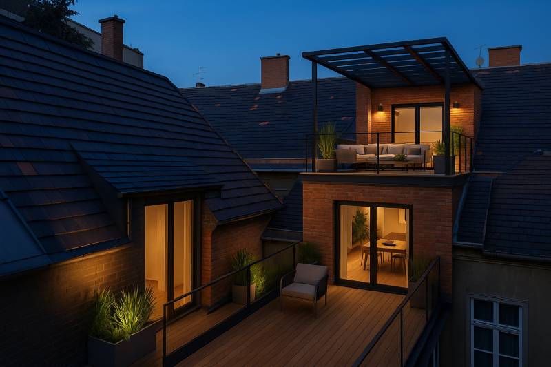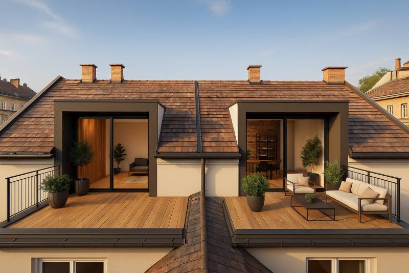 Eladásra kínáljuk Budapest II. kerületében, a Frankel Leó úton található, engedéllyel rendelkező tetőtéri lakásprojektet, amely fejlesztők és befektetők számára kivételes lehetőség.A projekt egy 117 m²-es tetőszinti ingatlan, amelyre a rendeltetésmódosítás lakásra már jogerősen engedélyezett. Az engedély tartalmazza a nyílászárók, a hőszivattyús, gázmentes gépészeti rendszer, valamint a belső elrendezés részletes terveit. A dokumentációhoz mellékelve elérhető a lift kialakításának terve is, amely a társasházi hozzáférést korszerűsíti.A tetőszerkezet adottságai alapján egy külső és két belső tetőterasz is kialakítható, amelyek exkluzív, napfényes kültéri életteret biztosítanak.A lakás 5,5 méteres belmagassága lenyűgöző térérzetet és különleges építészeti karaktert kölcsönöz a jövőbeli otthonnak.Főbb jellemzők:jogerős engedély a rendeltetésmódosításra és az építési munkák megkezdésére5,5 méteres belmagasságkorszerű, energiahatékony hőszivattyús fűtési rendszer, földgáz nélküllift kialakítására vonatkozó terv mellékelve1 külső és 2 belső tetőterasz kialakíthatóa kivitelezés azonnal megkezdhetőkiemelt lokáció: Frankel Leó út – Rózsadomb – Margit híd – Duna-part – Lukács FürdőAlapterület: 117 m²Tervezett nettó lakótér: kb. 113 m²Belmagasság: 5,5 mRendeltetés: lakás (engedéllyel)Teraszlehetőség: 1 külső + 2 belső tetőteraszParkolás: megváltással biztosítottLift: engedélyezett tervek rendelkezésre állnakEz a projekt ritka fejlesztési lehetőség: a térérzet, a teraszok és az energetikai modernitás kombinációja egyedülálló a II. kerületben. Ideális választás értéknövelő beruházásra, prémium lakásfejlesztésre vagy továbbértékesítésre.A látványtervek AI által generált képek. |