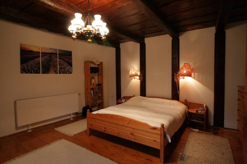 A ház eredeti hangulatát megörző felújításon átesett, 80 m2-es, 2 szobás, teljesen berendezett parasztház, 30 m2-es, déli tájolású, részben fedett terasszal és 110 m2 melléképülettel keresi szerető új gazdáját.A fő épület egy 30 m2-es utcára és udvarra néző szobából, egy 17 m2-es udvarra néző étkező-konyhából, egy 6 m2-es szomszéd telekre néző zuhanyzó-wc, mosóhelyiségből és egy udvarra néző 27 m2-es szobából áll. A telek 3208 m2-es, összközműves. Az épület körüli telekrészt helyi kertész gondozza. A telekre 3-4 gépkocsival is kényelmesen be lehet állni, plusz 2-3 gépkocsival a melléképületbe.A vastag vályog és kő falazatú épület 10 cm dryvit homlokzati hőszigetelést kapott. A lakóépület fafödémes. Belmagassága 2,5 és 2,7 m. A 110 m2-es melléképület áll egy 21 m2-es tárolóból mely borozónak is ideális, belmagassága 2,2 m. Egy 44 m2-es, poroszsüveg-boltozatú csűrből és egy 45 m2-es, külön bejáratú, egy légterű tárolóból mely több állásos garázsnak is alkalmas. Tető héjalása zsindely.A radiátoros fűtést és meleg víz ellátást 24 KW-os kombi gázcirkó biztosítja. Hő- és hangszigetelt fa ablakok, díszes spalettákkal. Fa kültéri, beltéri ajtók. Hajópadló. Fa bútorok, hangulatos dísztárgyak, lámpák, háztartási gépek, televíziók. Biztonsági szolgálatra bekötött riasztó.Az ingatlant csak irodánk kínálatában találja. Amennyiben felkeltettem érdeklődését, hívjon bizalommal! |