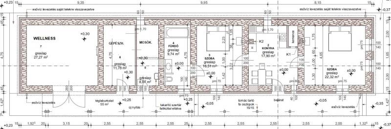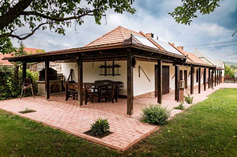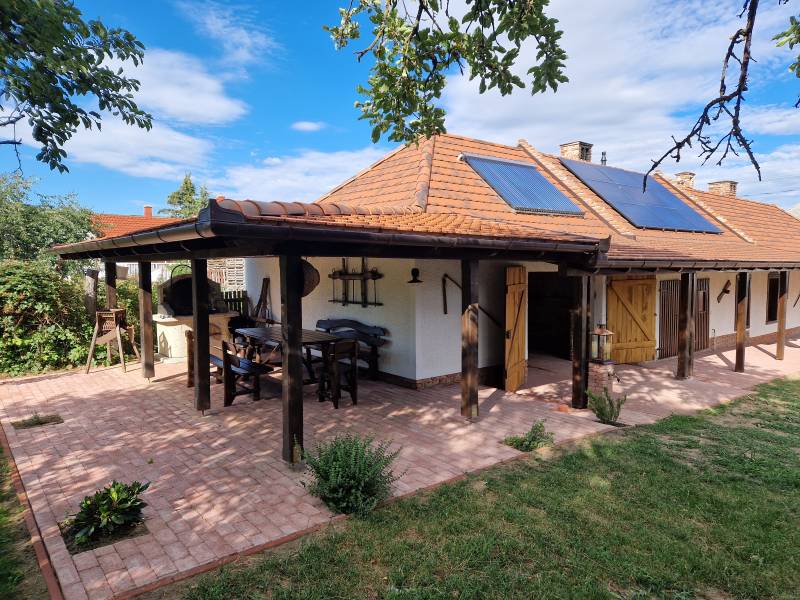 A Dunántúl legmagasabban fekvő településén, a Bakony szívében luxus szinten felújított, 114 m2-es, tornácos parasztház 768 m2-es, rendezett, szép telken keresi új, szerető gazdáját. Kiváló levegő, csend, nyugalom, harmónia.A kő falak kivétel, teljes felújításon esett át az ingatlan. 10 cm kőzetgyapot hőszigetelés a homlokzati falakon, 15 cm fújt hőszigetelés a födémen, egy része osb borítást is kapott. 10 cm. lépésálló polisztirol alapú hőszigetelés az aljzatban. Új tetőszerkezet cseréphéjalással. Radiátoros fűtés, a visszamenő fűtéscsövek a padlóban kerültek elvezetésre, ezáltal a kerámia padlóburkolat hőérzete is kellemes a fűtési szezonban. Egyedi kőrisfa ablakok 4 rétegű hő- és hangszigetelt üvegezéssel. Antikolt fa gerendák és födém. Egyedi, kőrisfa bútorok, belső ajtók, ajtó tokok. Egymással harmonizáló bútorok, nyílászárók. Új víz, csatorna, villany és gáz vezetékek, gépészet. Immergas 12 KW-os hőszivattyú + 300 literes meleg víz tartály. Kiegészítésként 24 KW-os Immergas gázkazán. 1-1 db. hűtő-fűtő klíma a wellness részen és a lakás közepén elhelyezkedő konyha-étkezőben. Agyagkandalló. Egyedileg színterezett ereszcsatorna rendszer. Napkollektor, napelem. Infra szauna, elektromos és fafűtésű akril dézsa, esőztető zuhany, külön wc a wellness részlegben. Fedett terasz épített grillel, egyedi tölgy étkezővel. Füstölő. Réz csapok, mosogató. Beépített, teljesen gépesített konyha. Kültéri, beltéri hangulatvilágítások, lámpák. Kültéri, beltéri dísztárgyak. Elektromos nagy kapu. 3 gépkocsi részére térkövezett parkoló. Kerti csap. Száraz, hűvös pince. Rendezett kert dísznövényekkel, gyümölcsfákkal. Riasztó, kamerarendszer. 3x32 Amper áramerősség.Az ingatlant csak irodánk kínálatában találja. Hívjon bizalommal! |